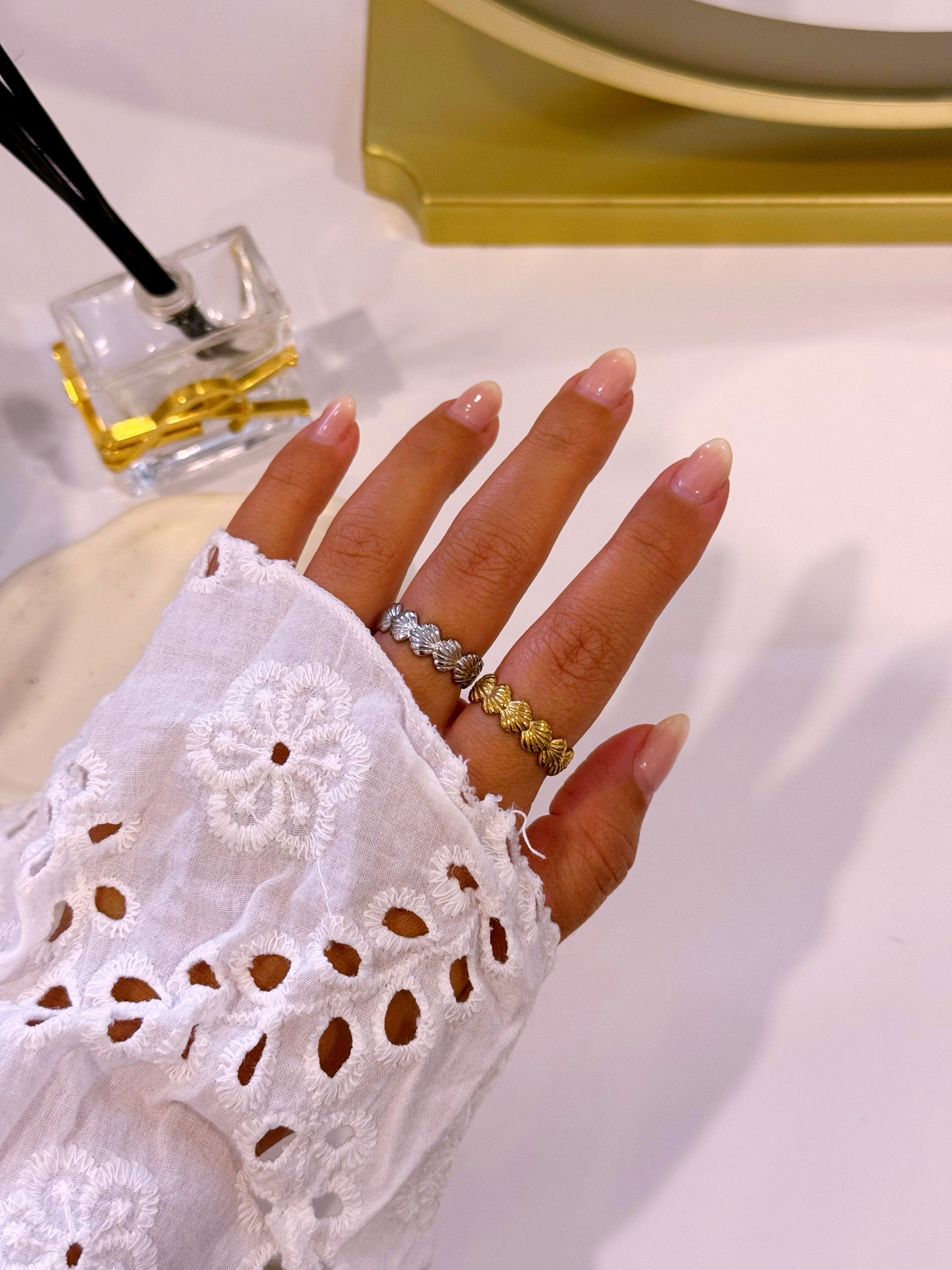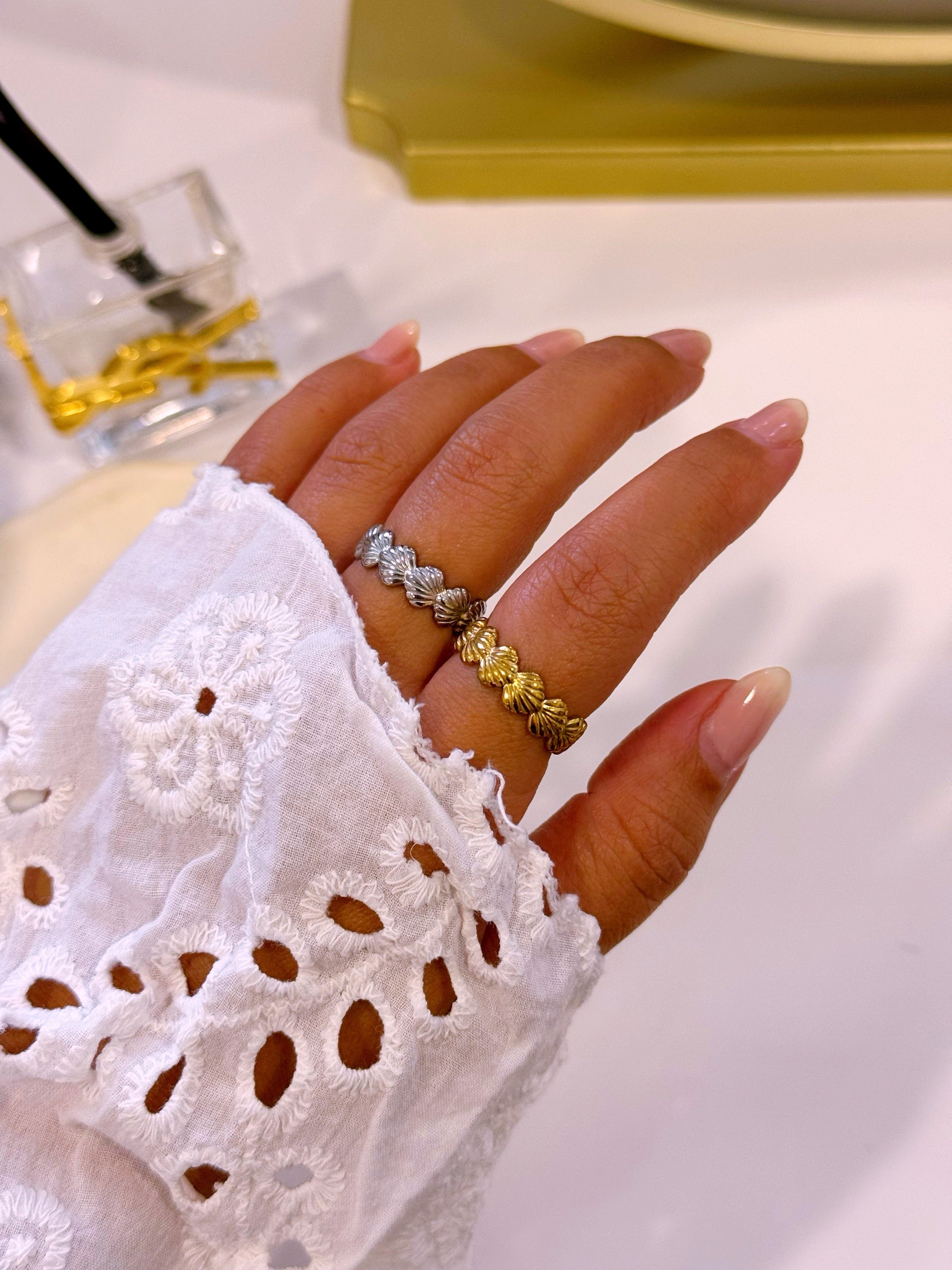 Anel ajustável com conchinhas em relevo | 2 Cores
