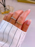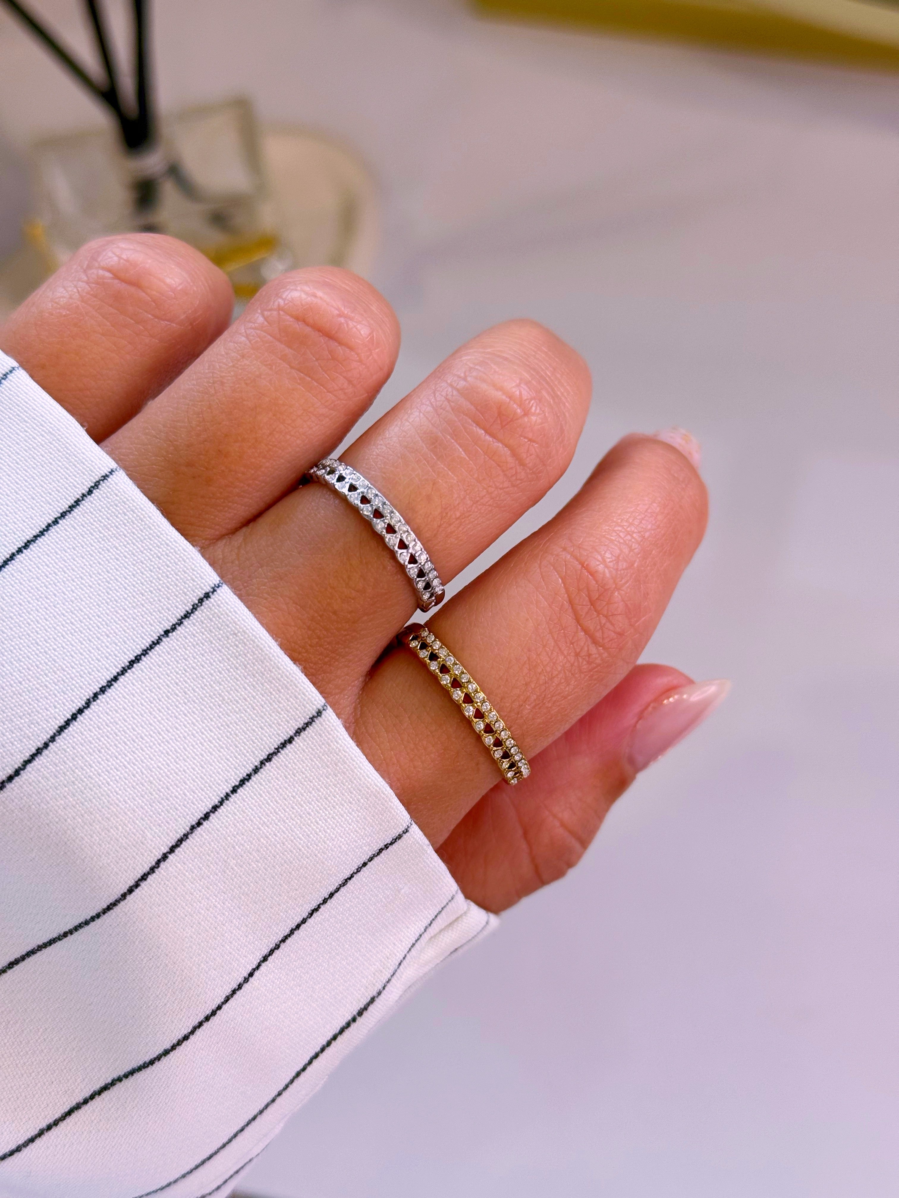 Anel ajustável efeito duplo com brilhantes nas duas filas.