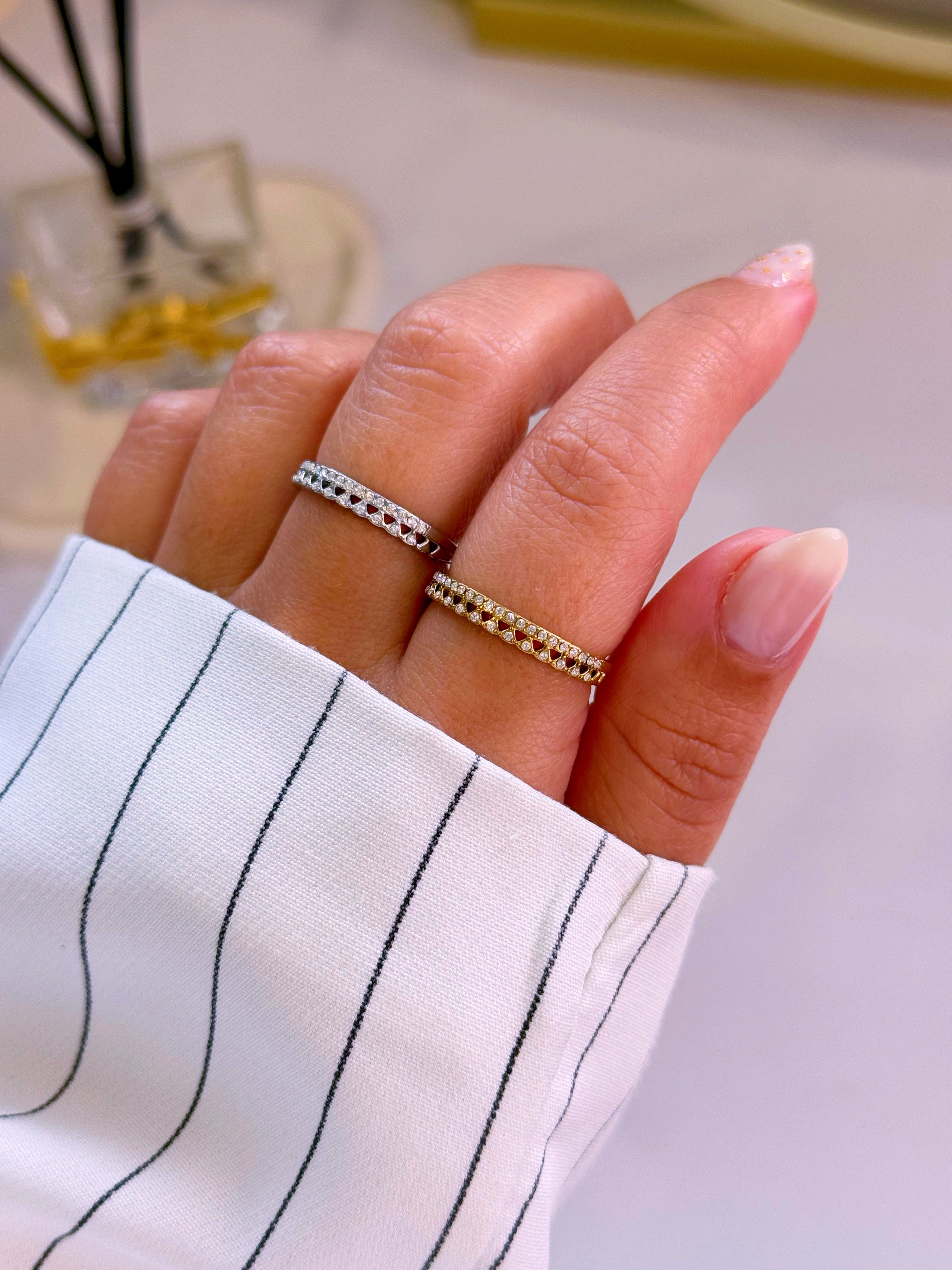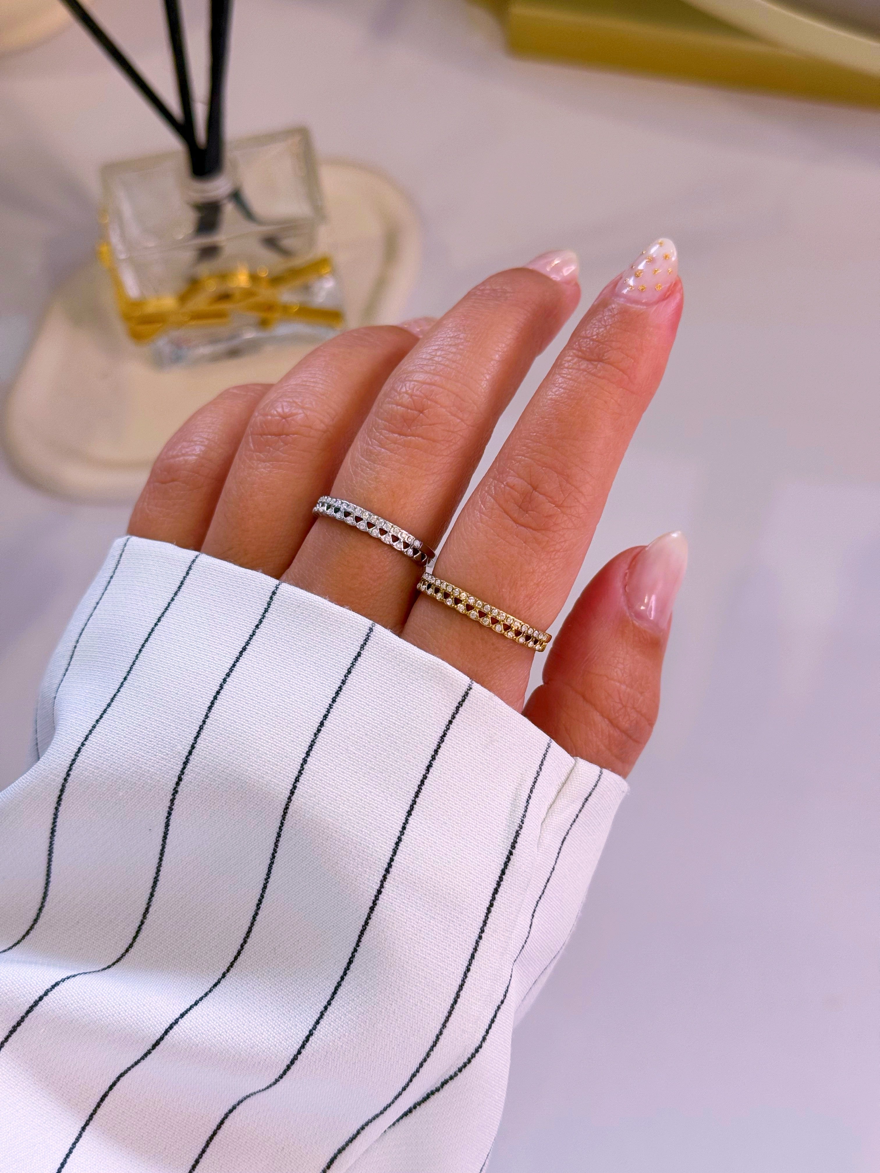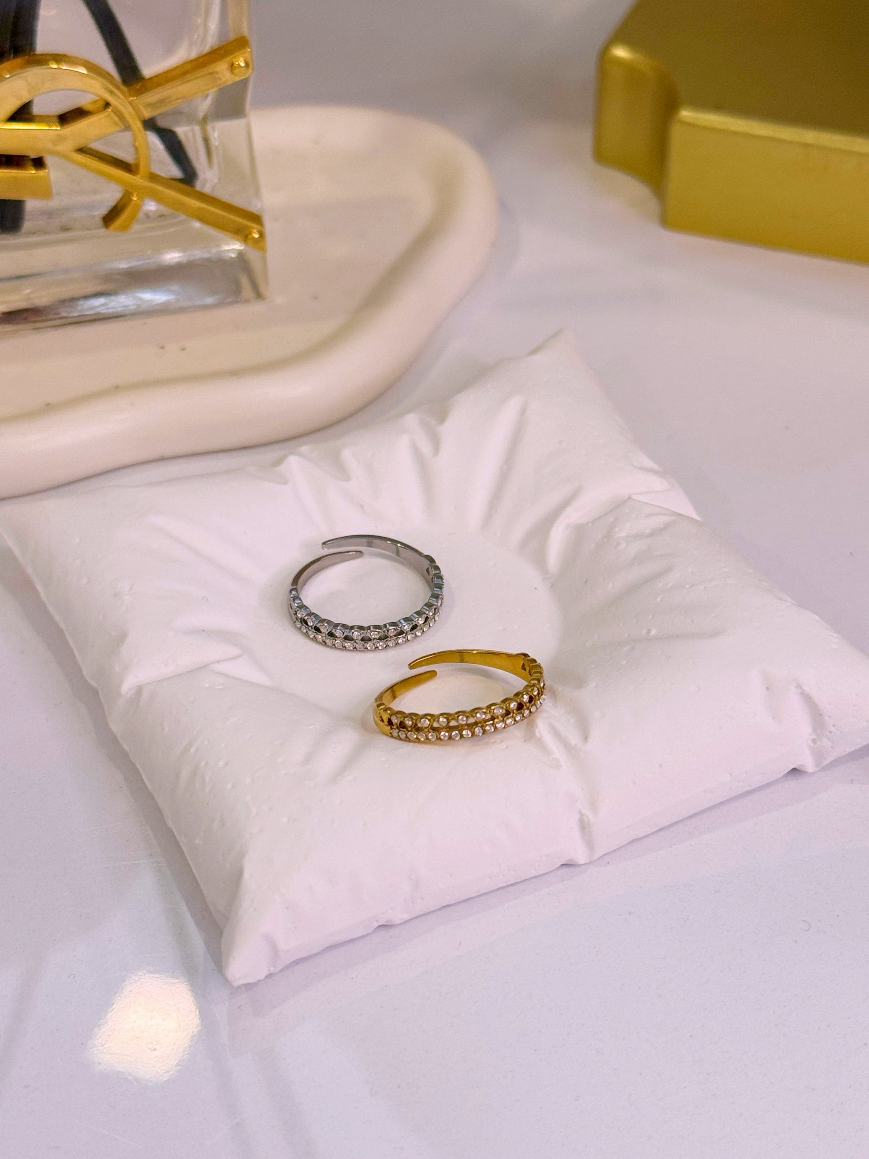 Anel ajustável dupla fila de brilhantes | 2 Cores