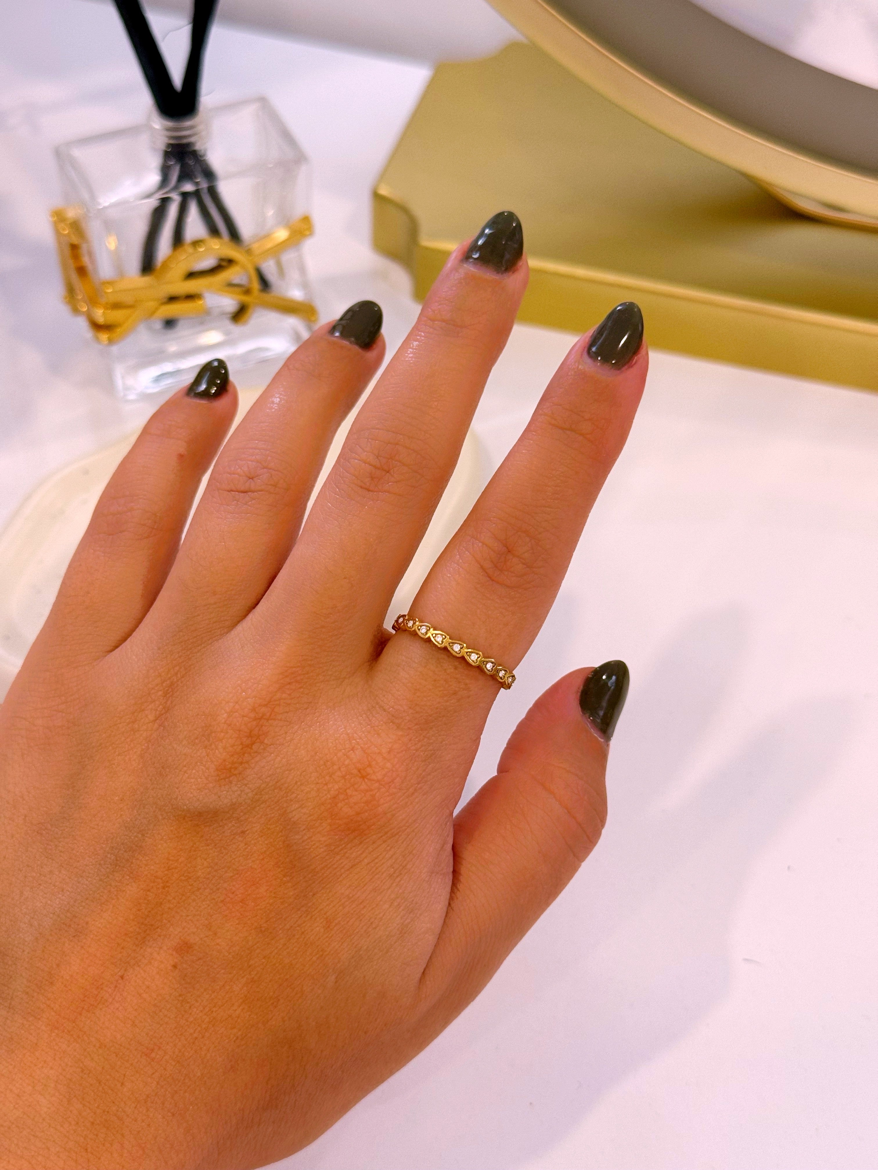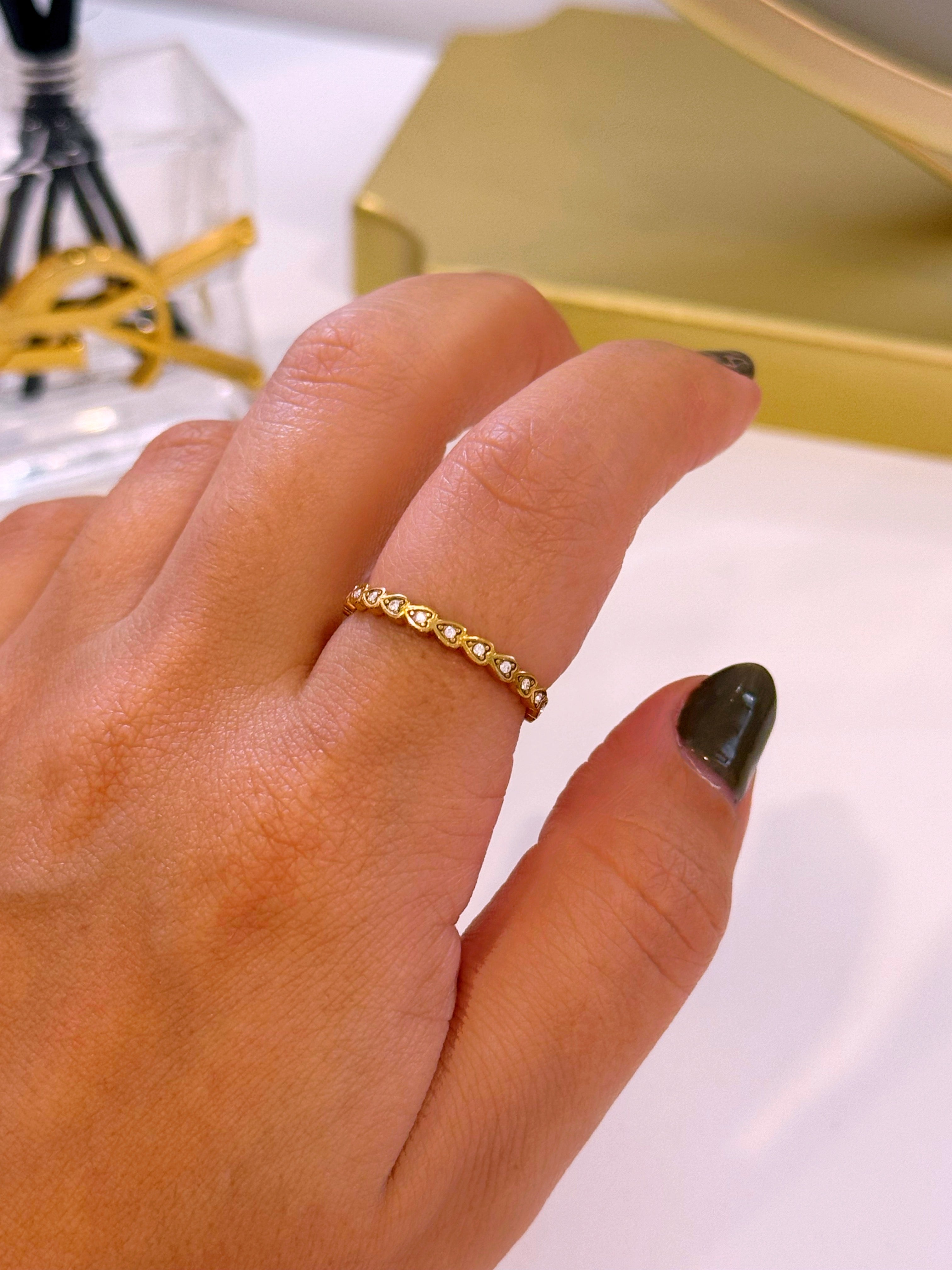 Anel ajustável em aço inoxidável corações e brilhantes | Dourado