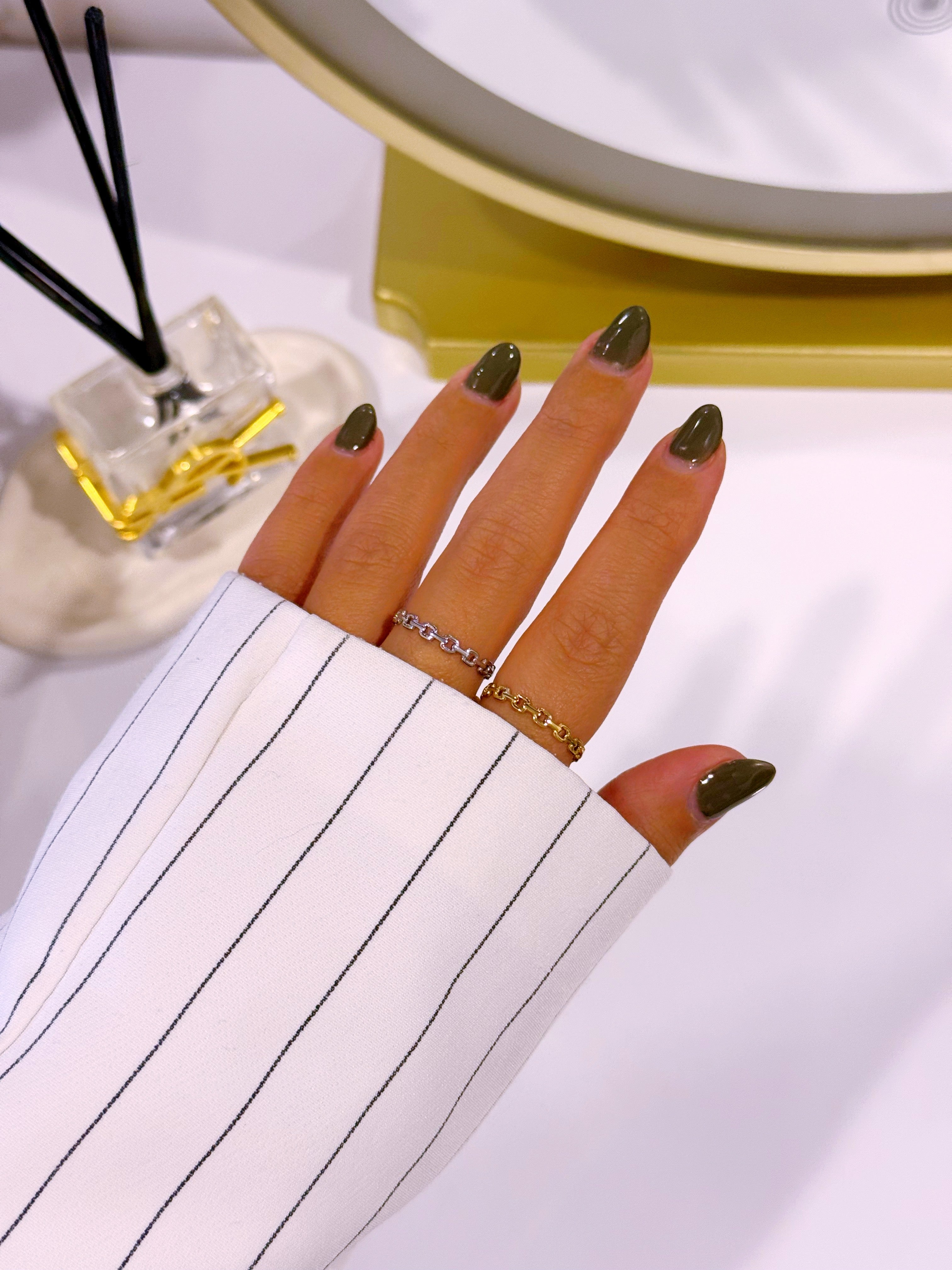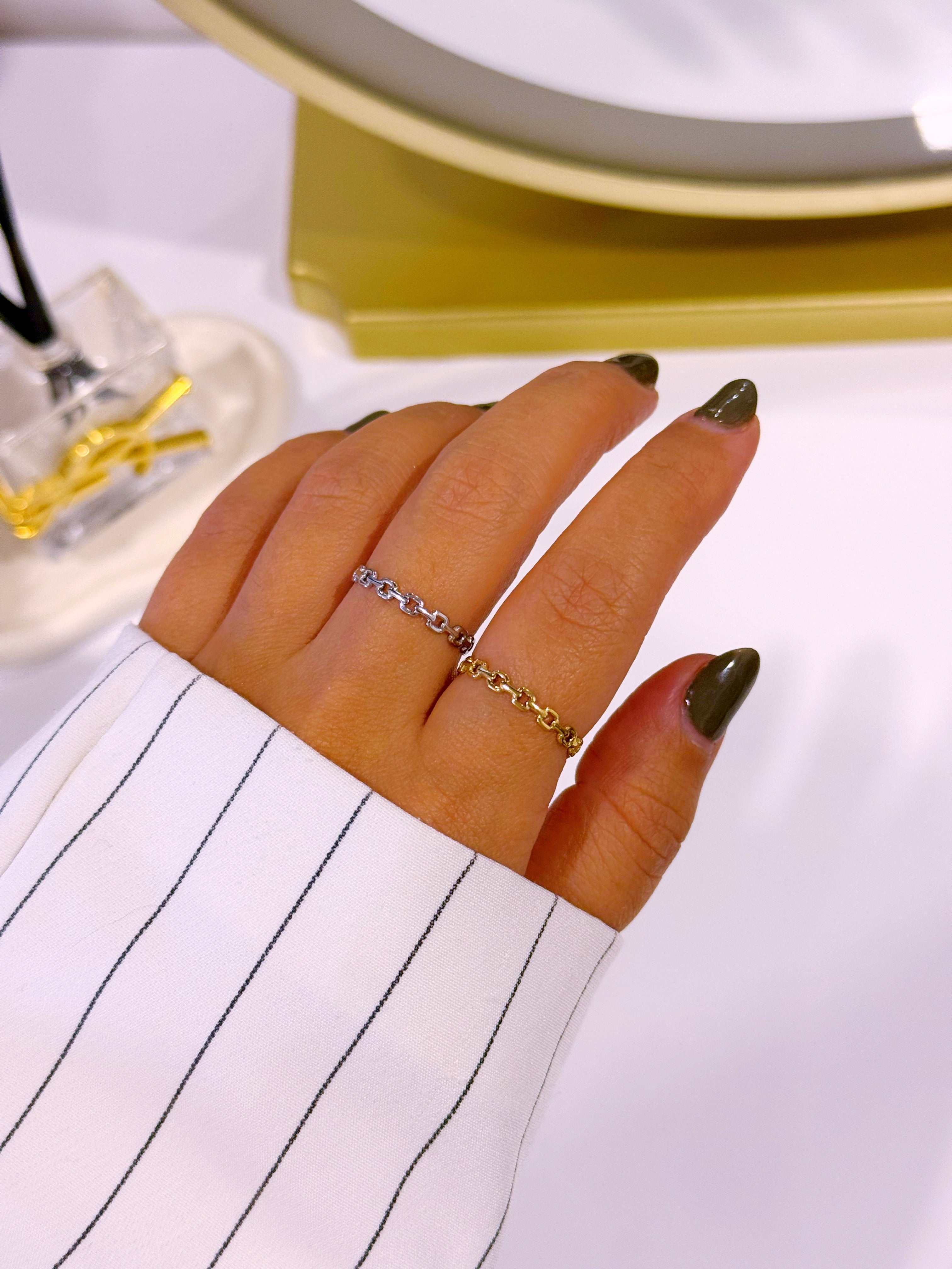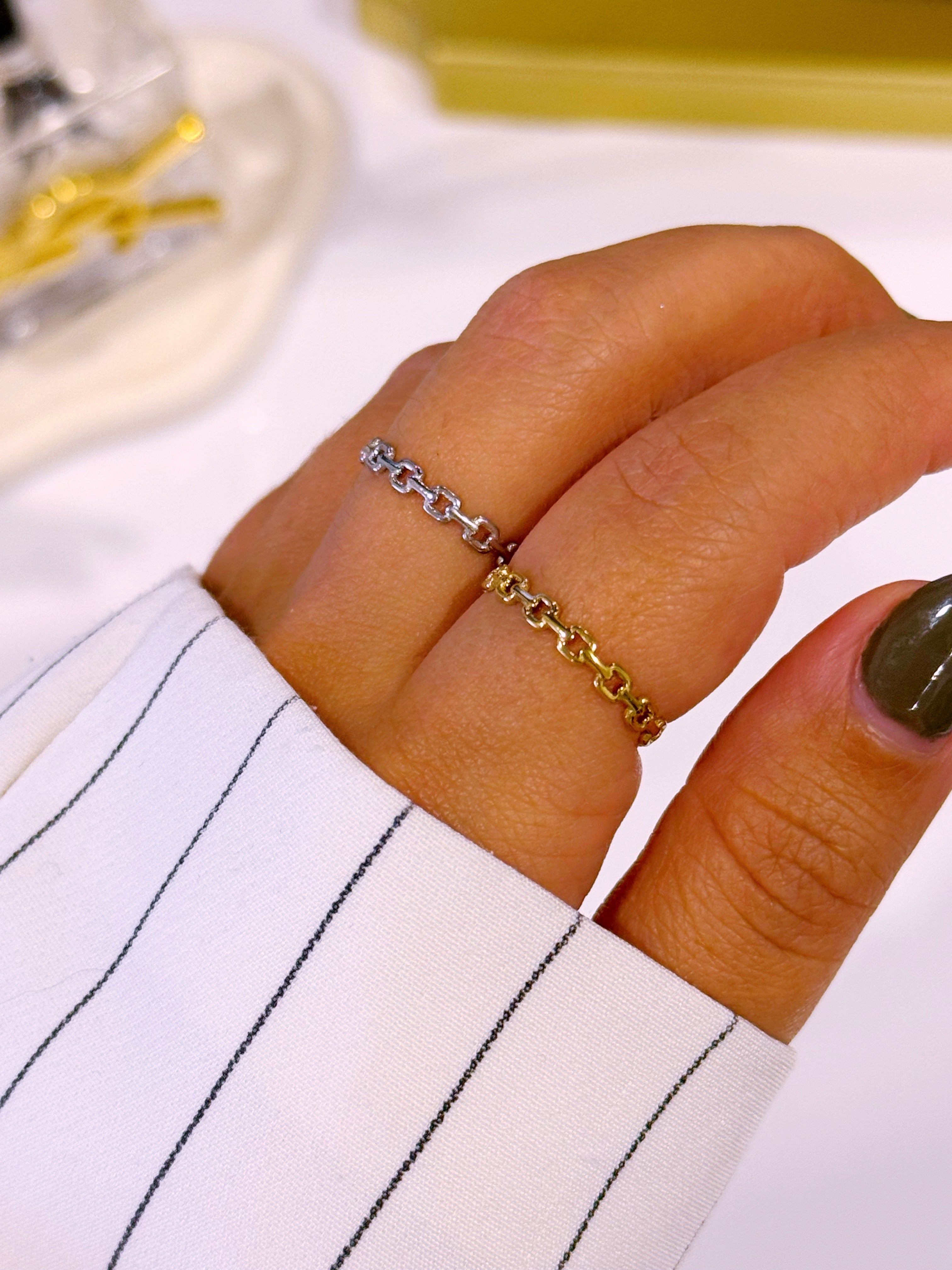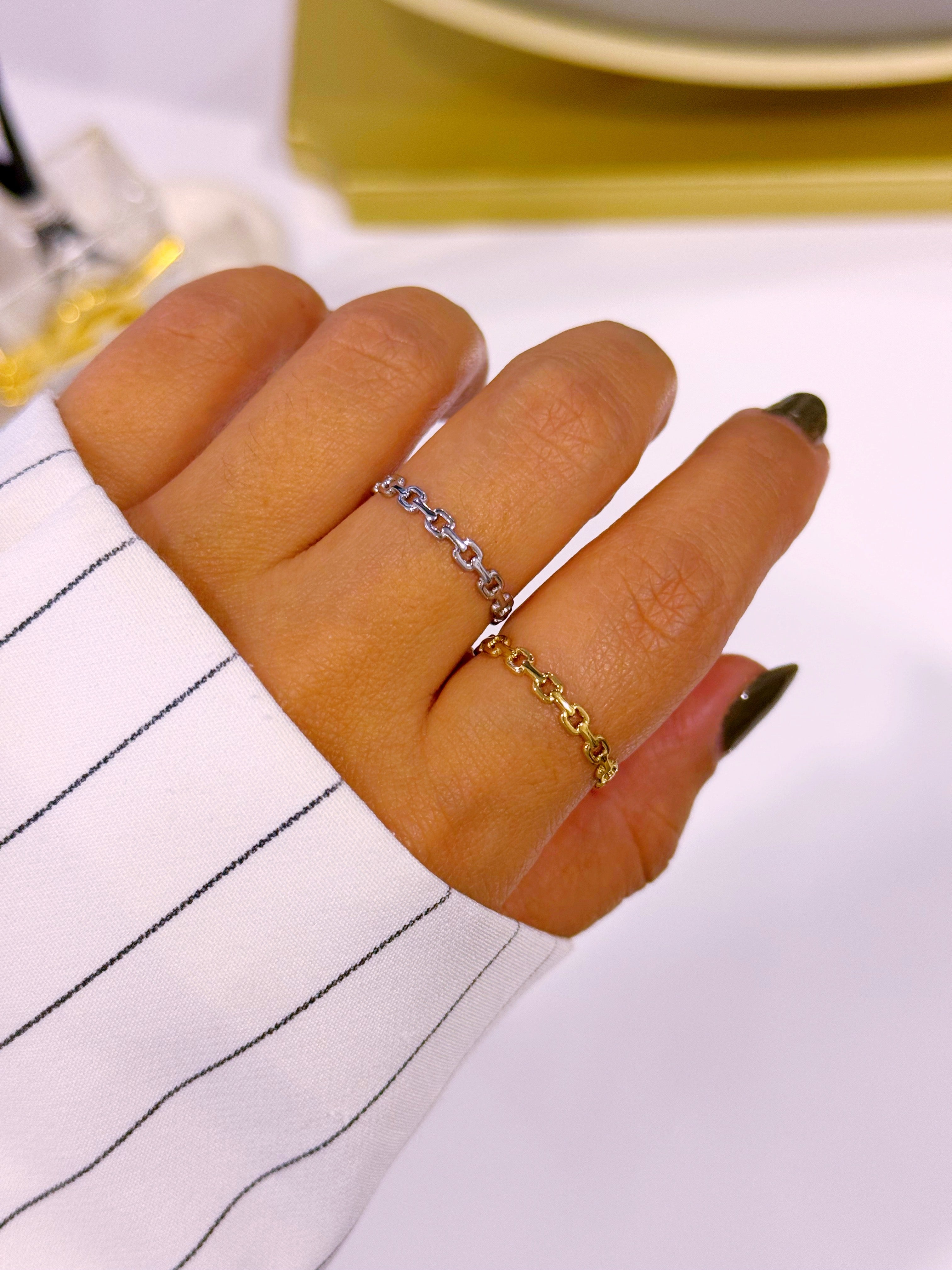 Anel ajustável fino em corrente de quadradinhos | 2 cores