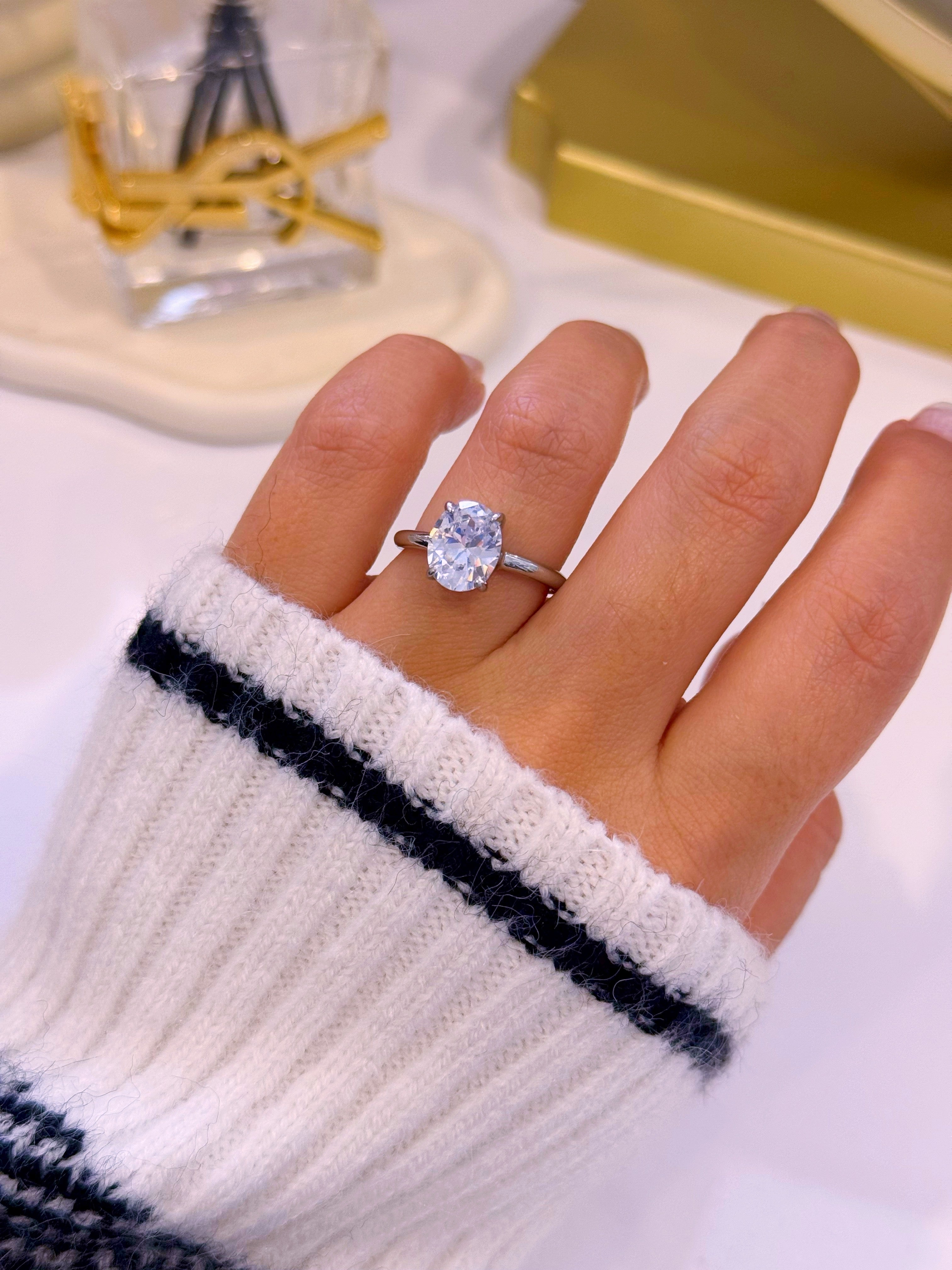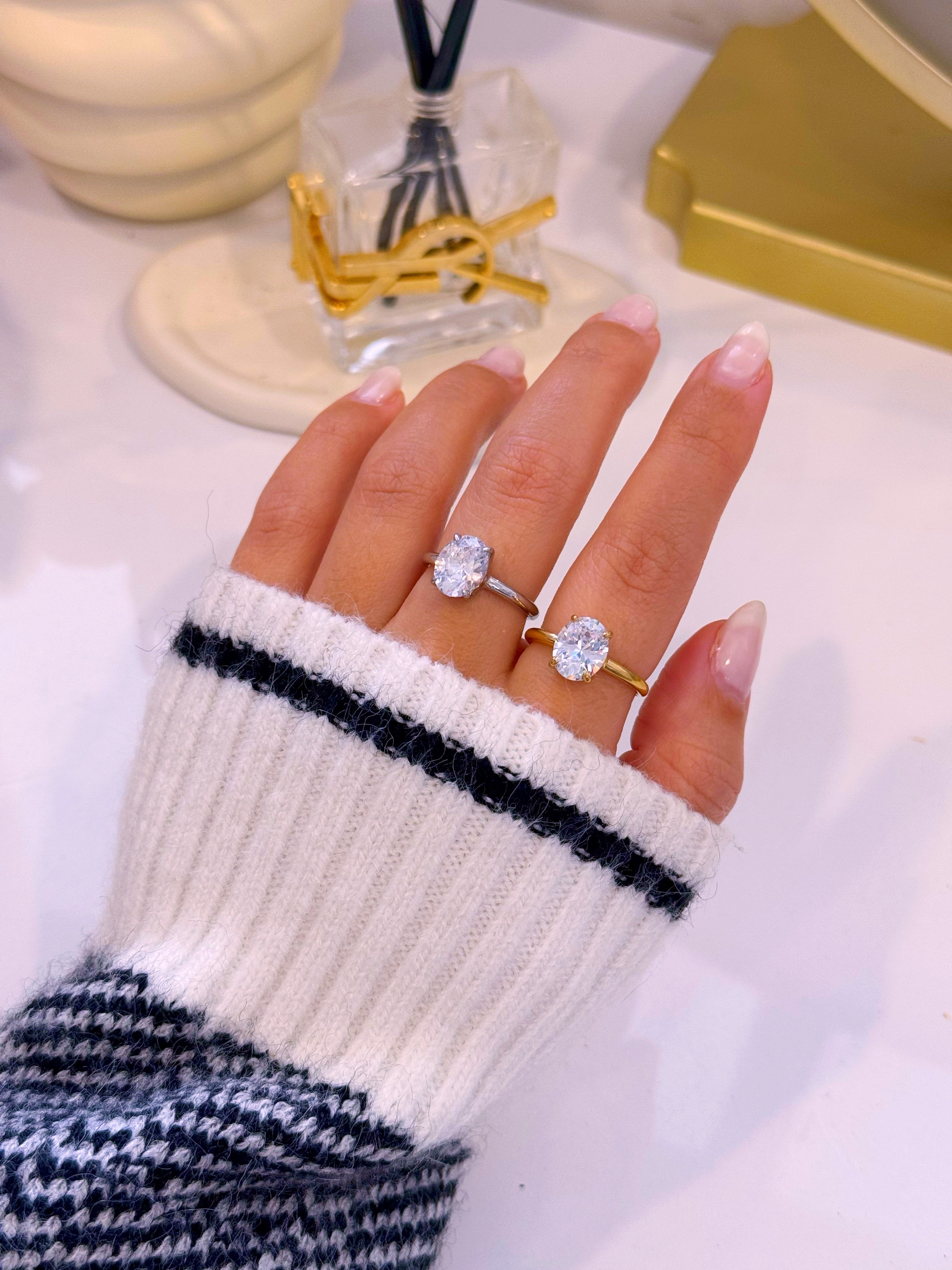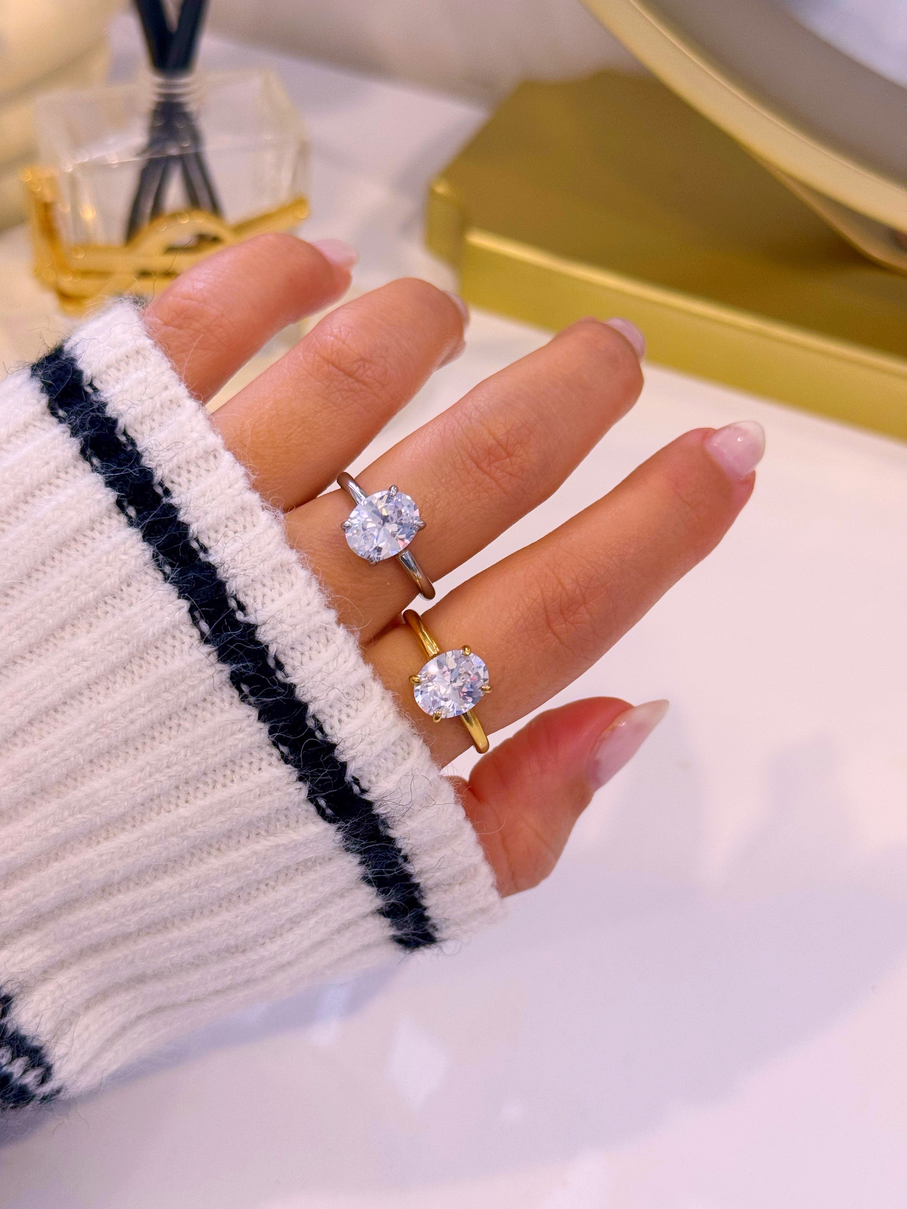 Anel ajustável liso solitário • pedra oval | 2 Cores