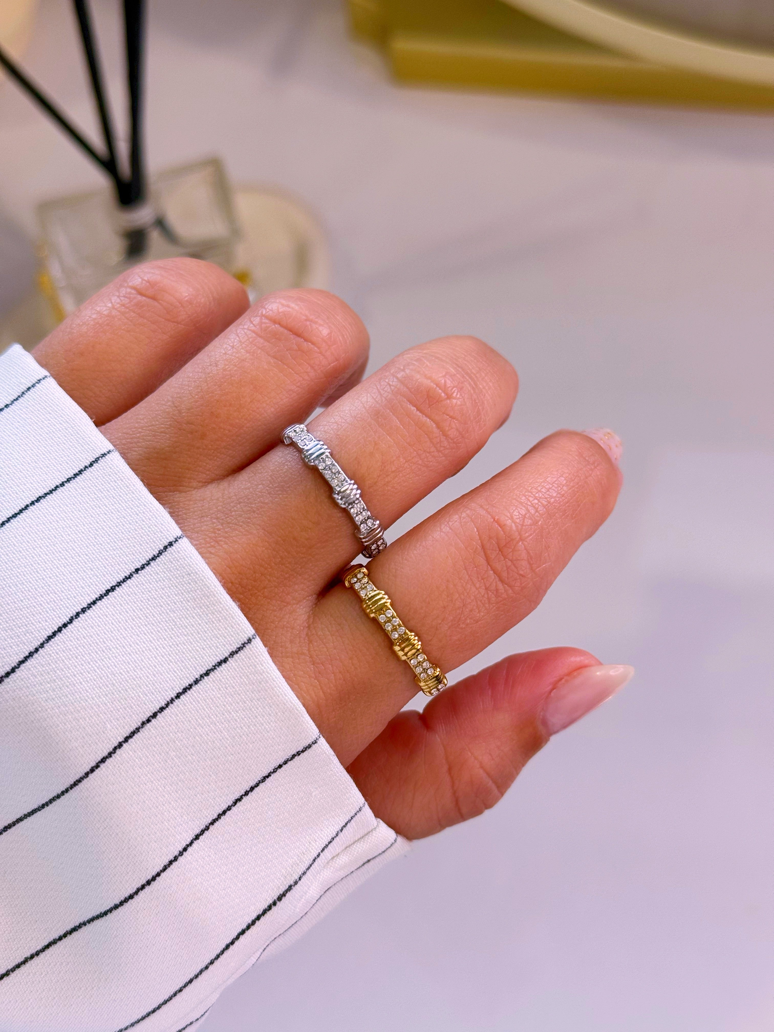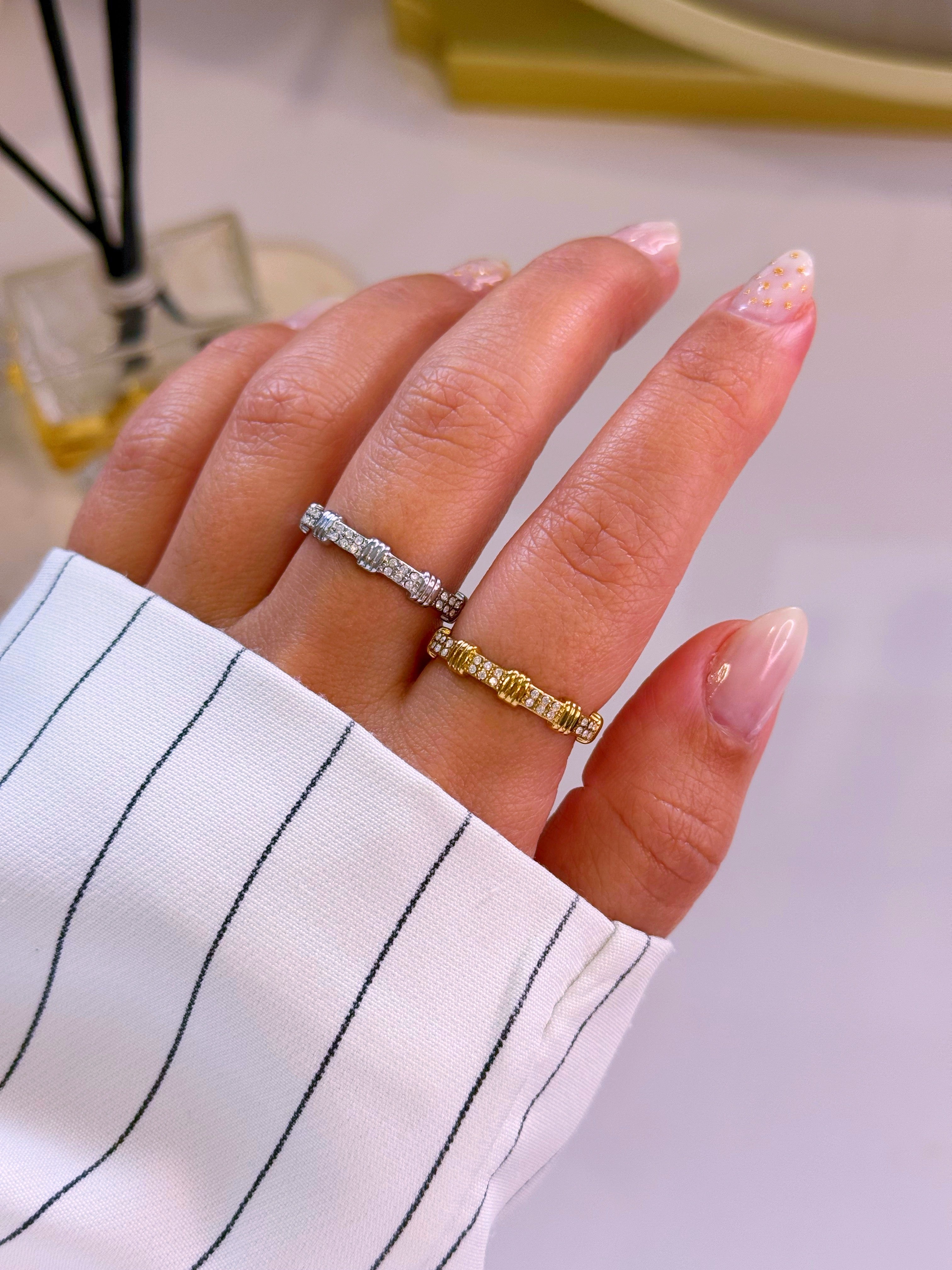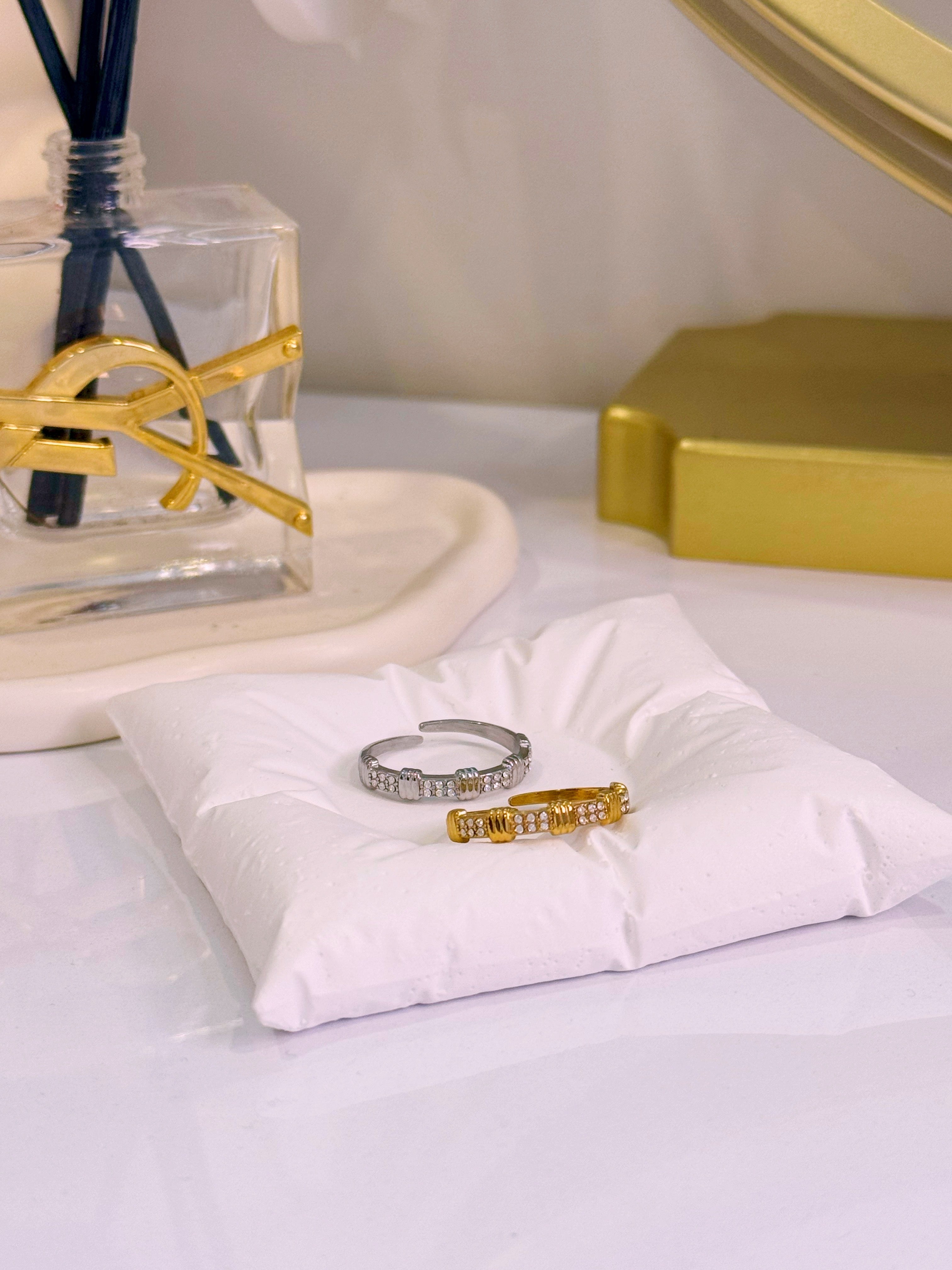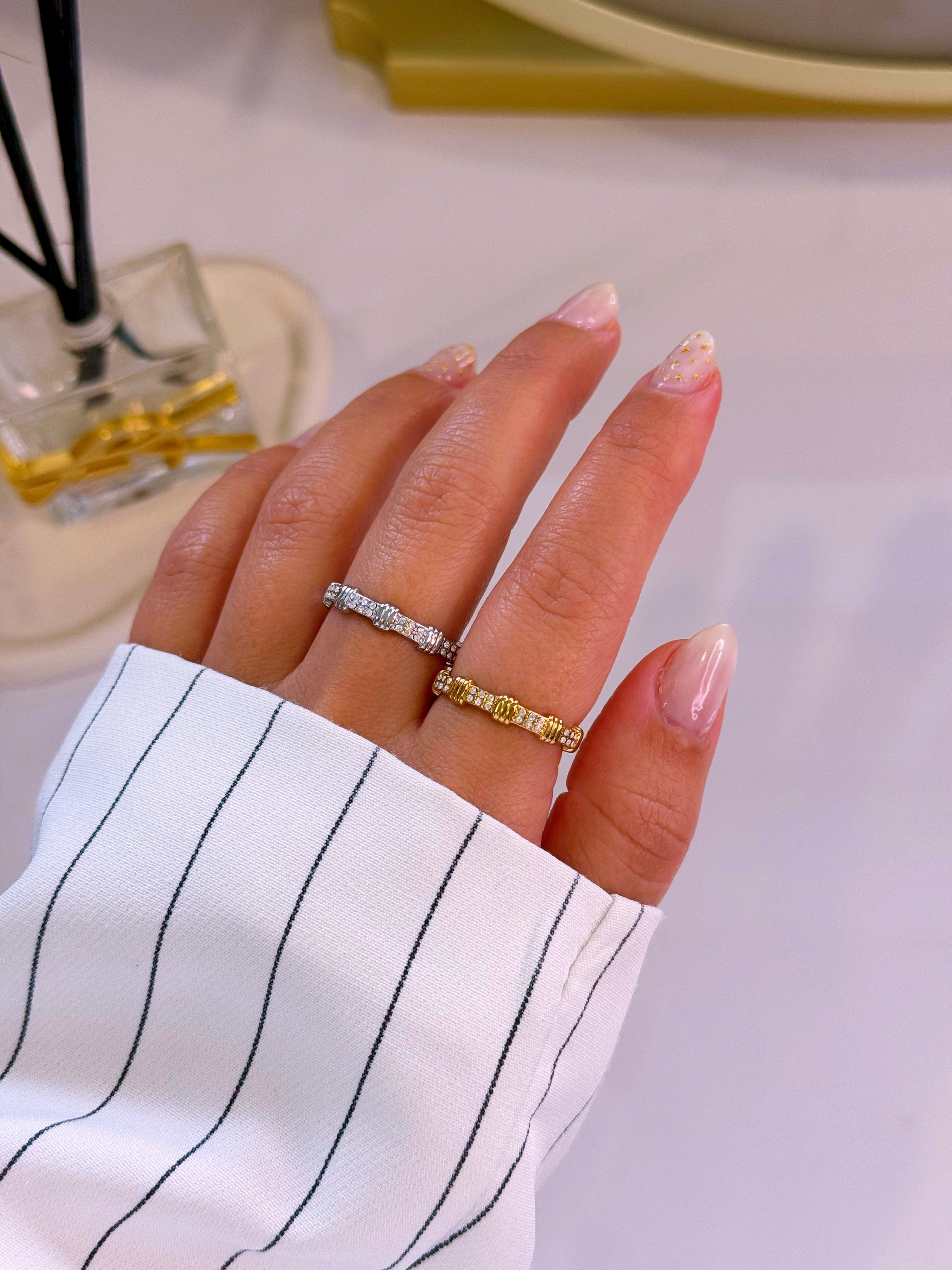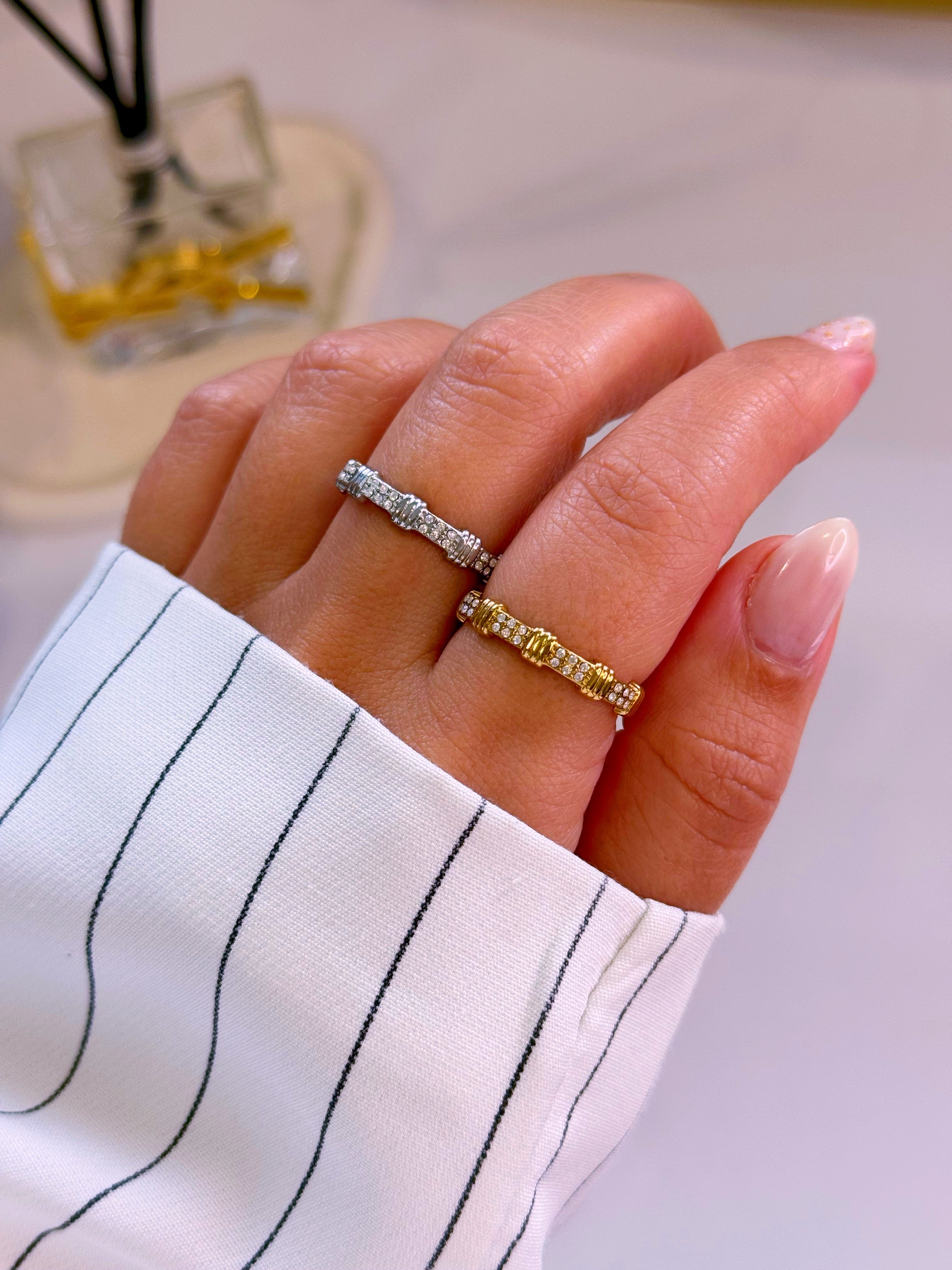 Anel ajustável pormenores relevos e brilhantes | 2 Cores
