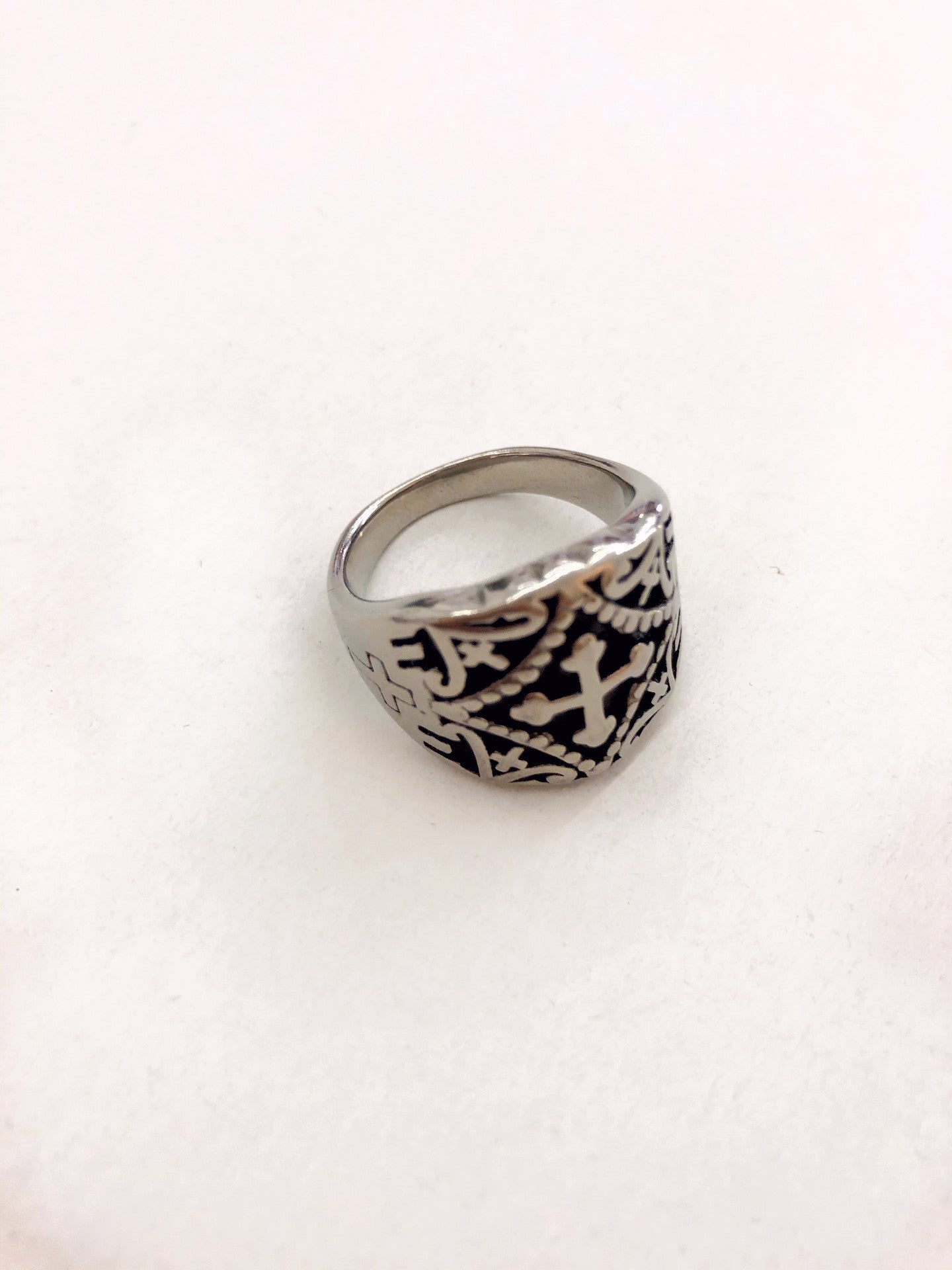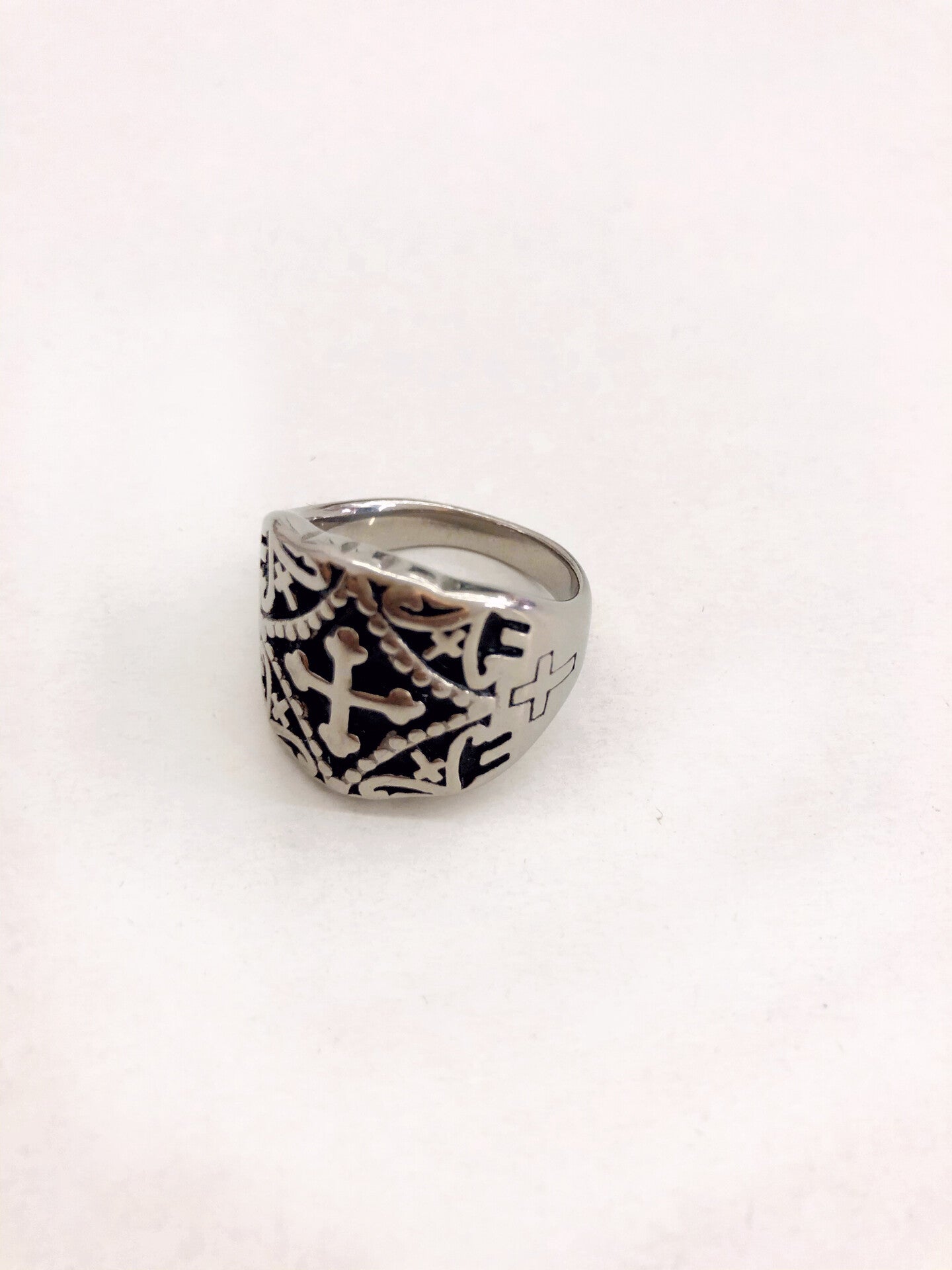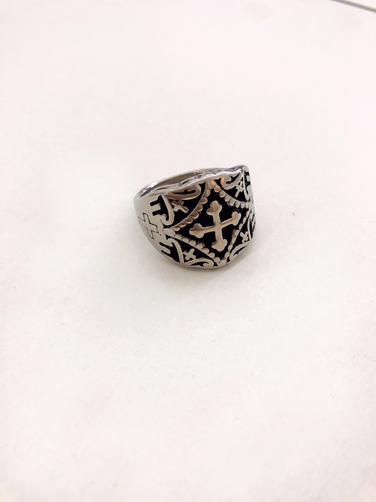 Anel trabalhado com símbolo da cruz trabalhado com textura.
