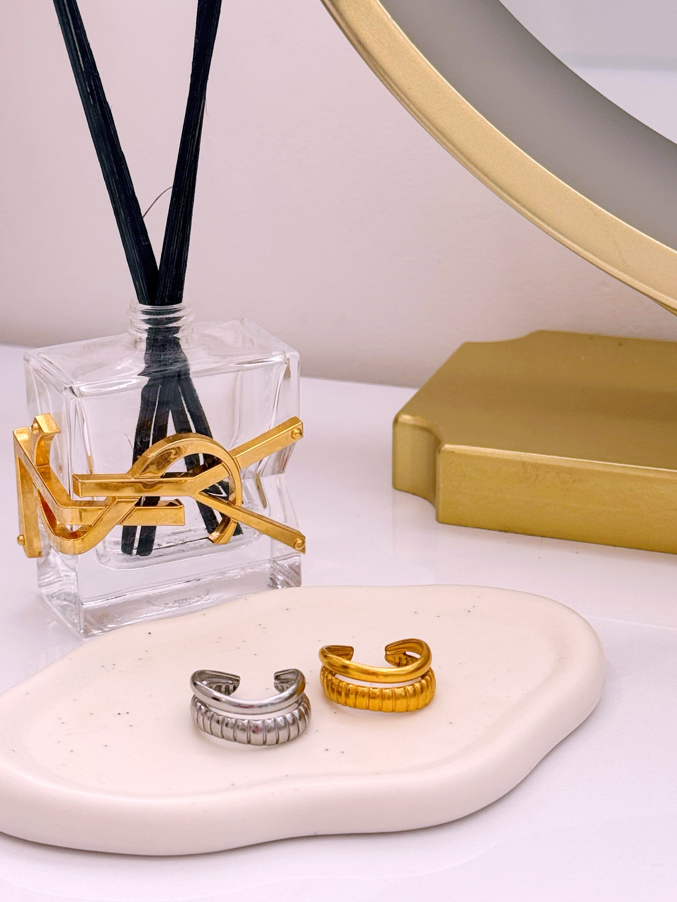 Anel efeito duplo ondulado irregular com relevos | 2 Cores