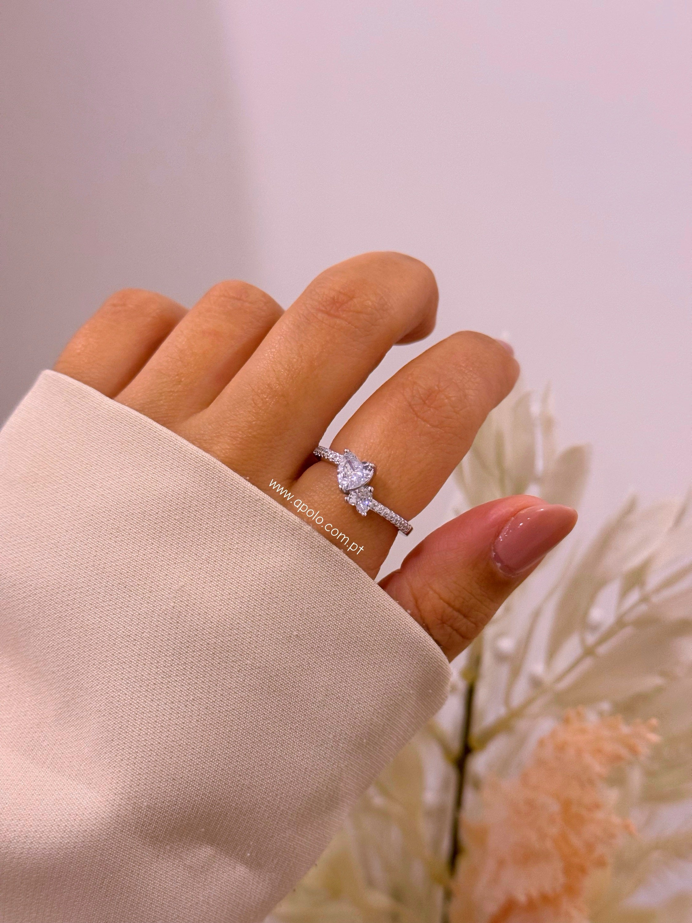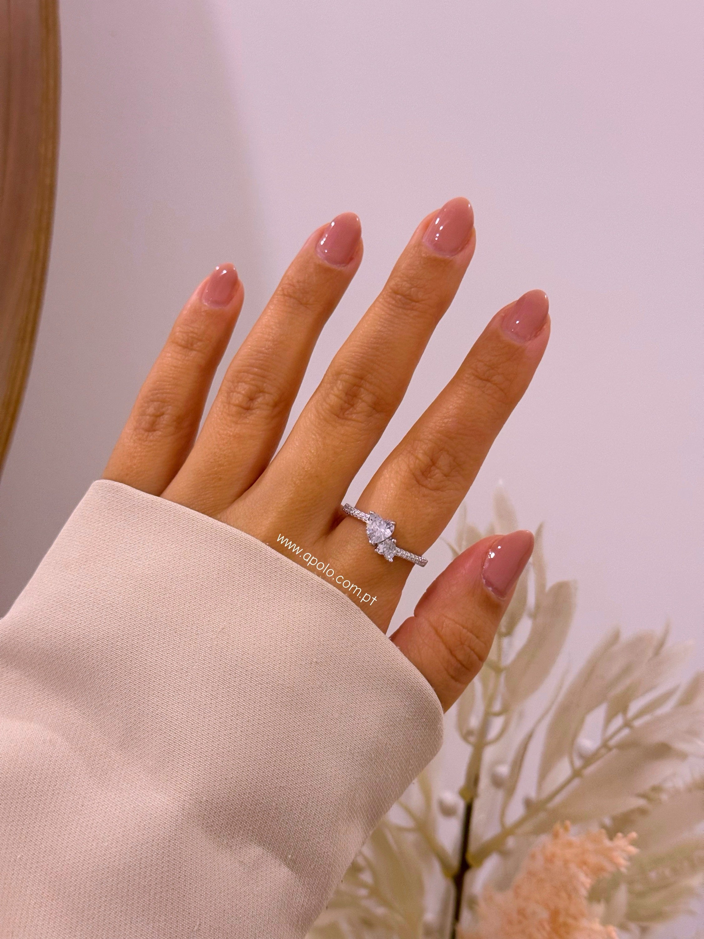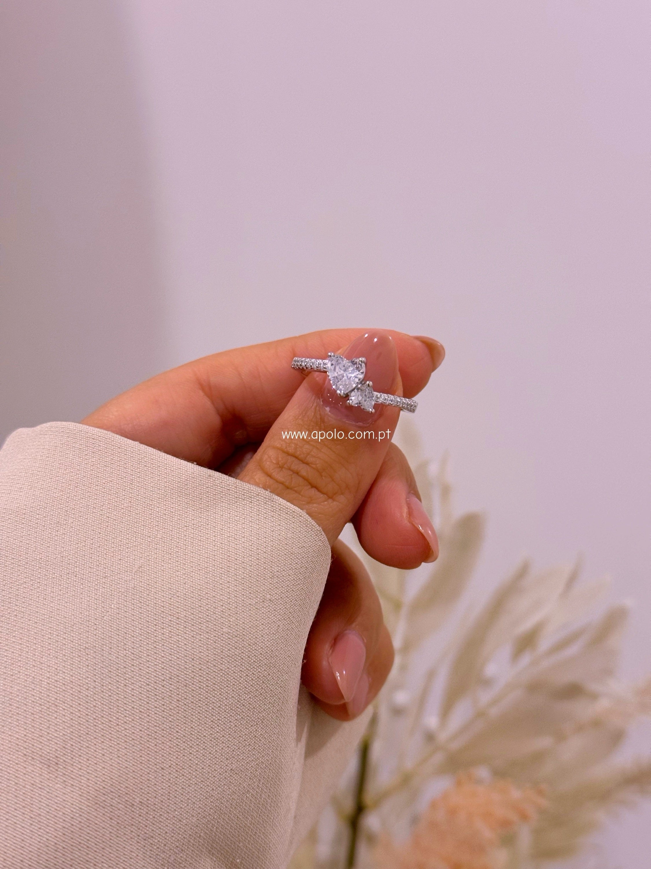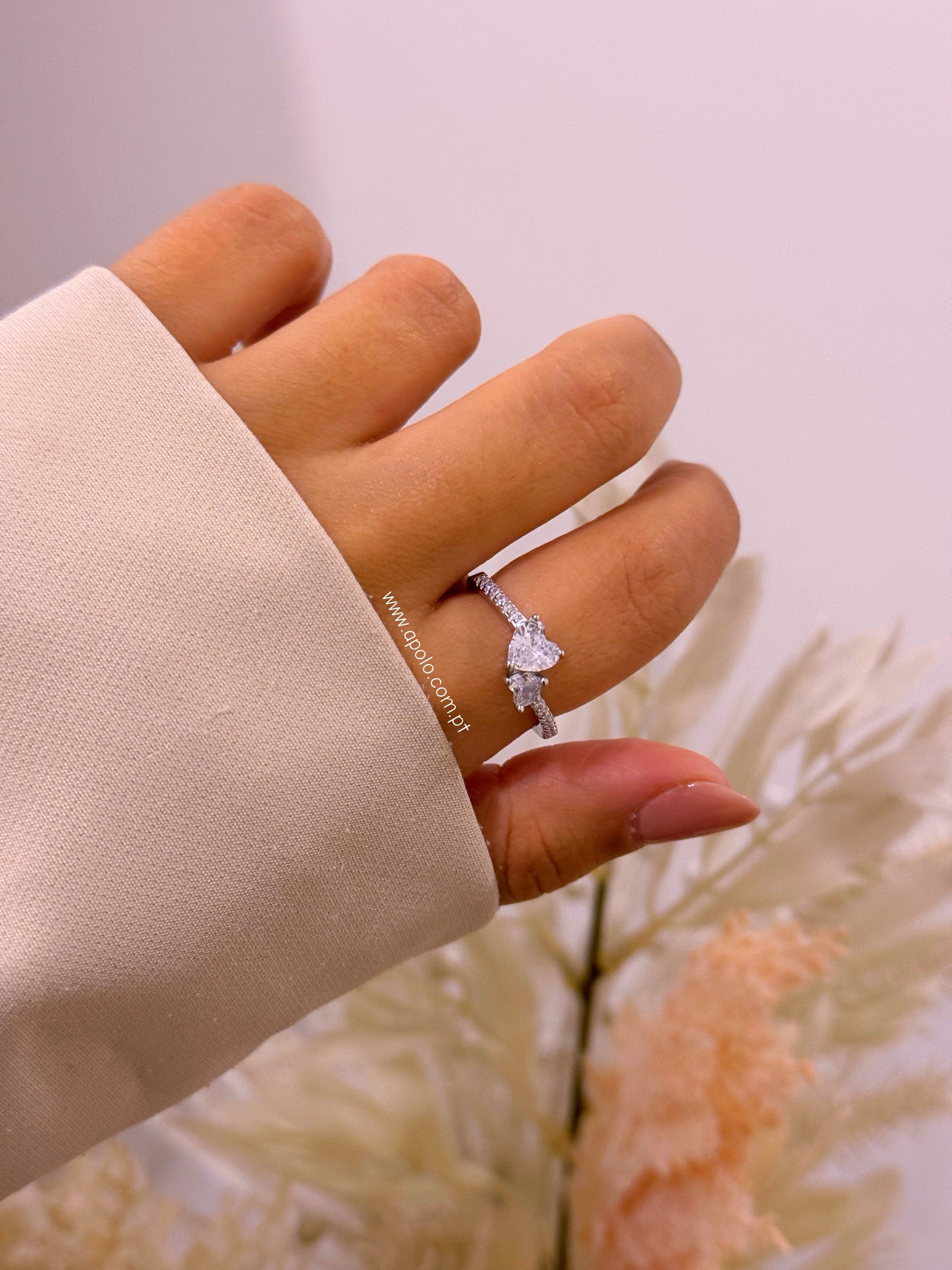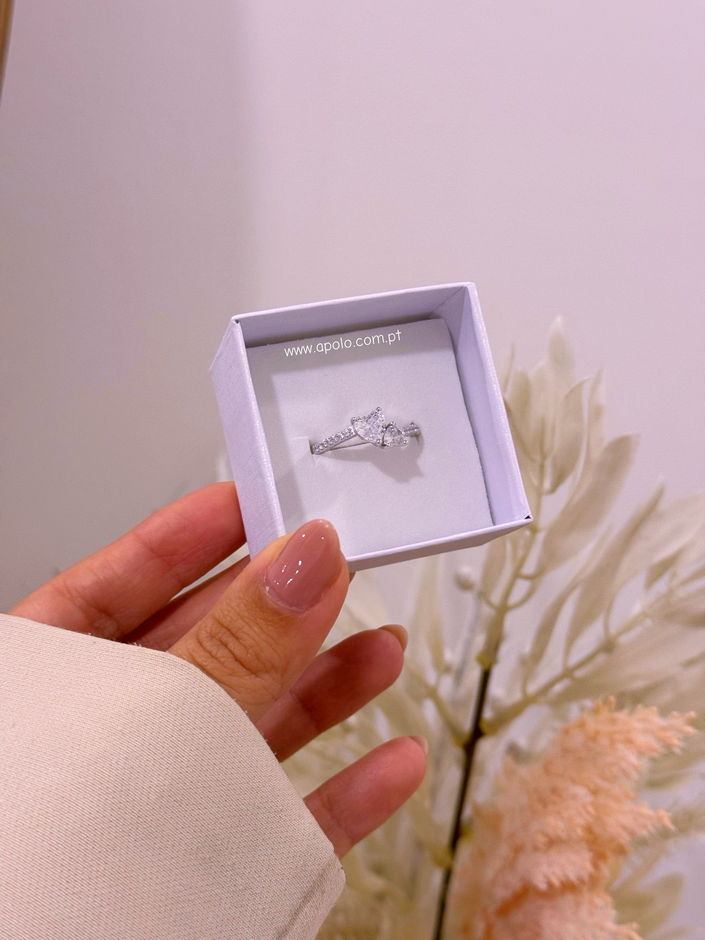 Anel delicado • coração duplo com brilhantes | Linha Premium