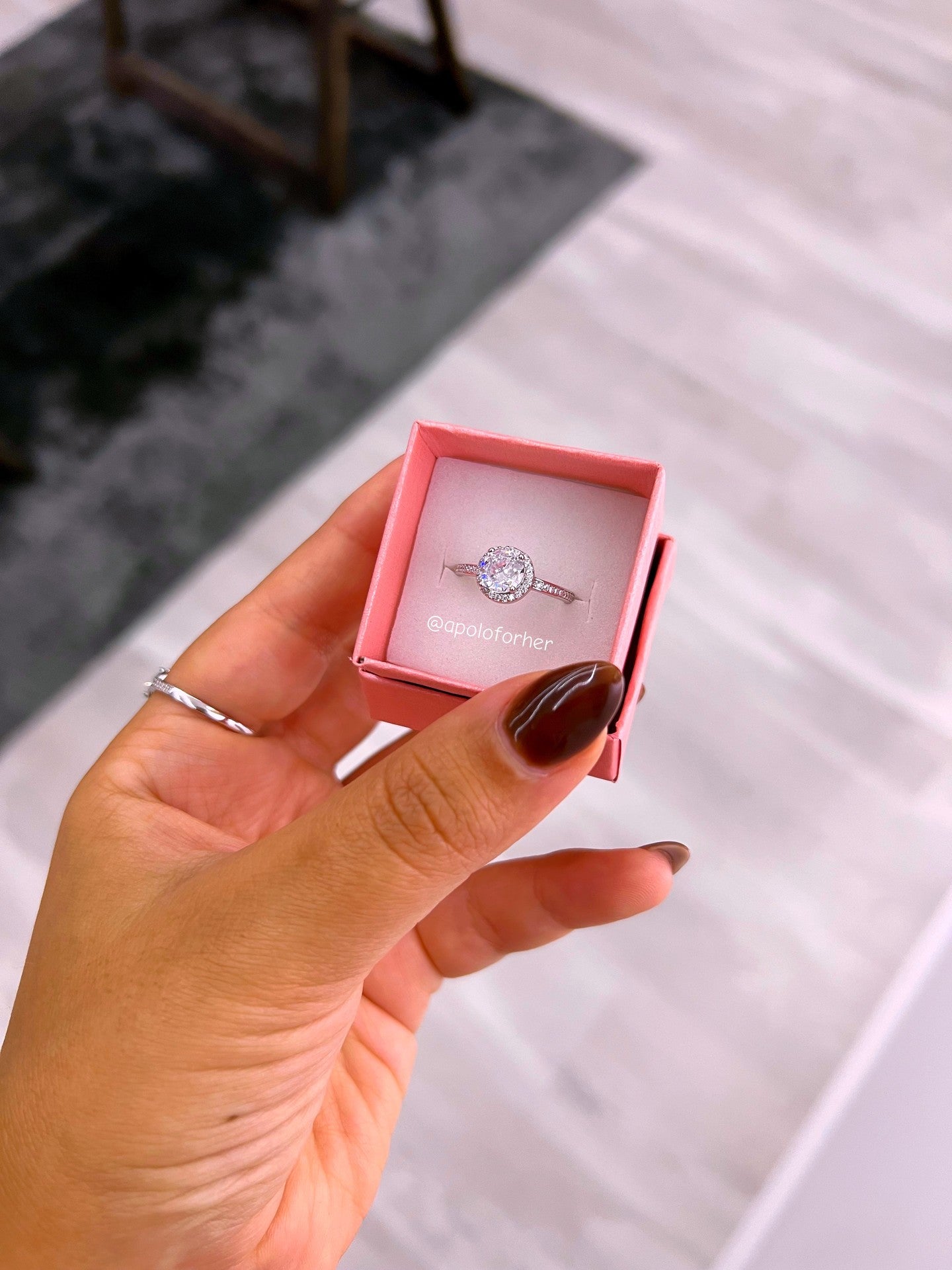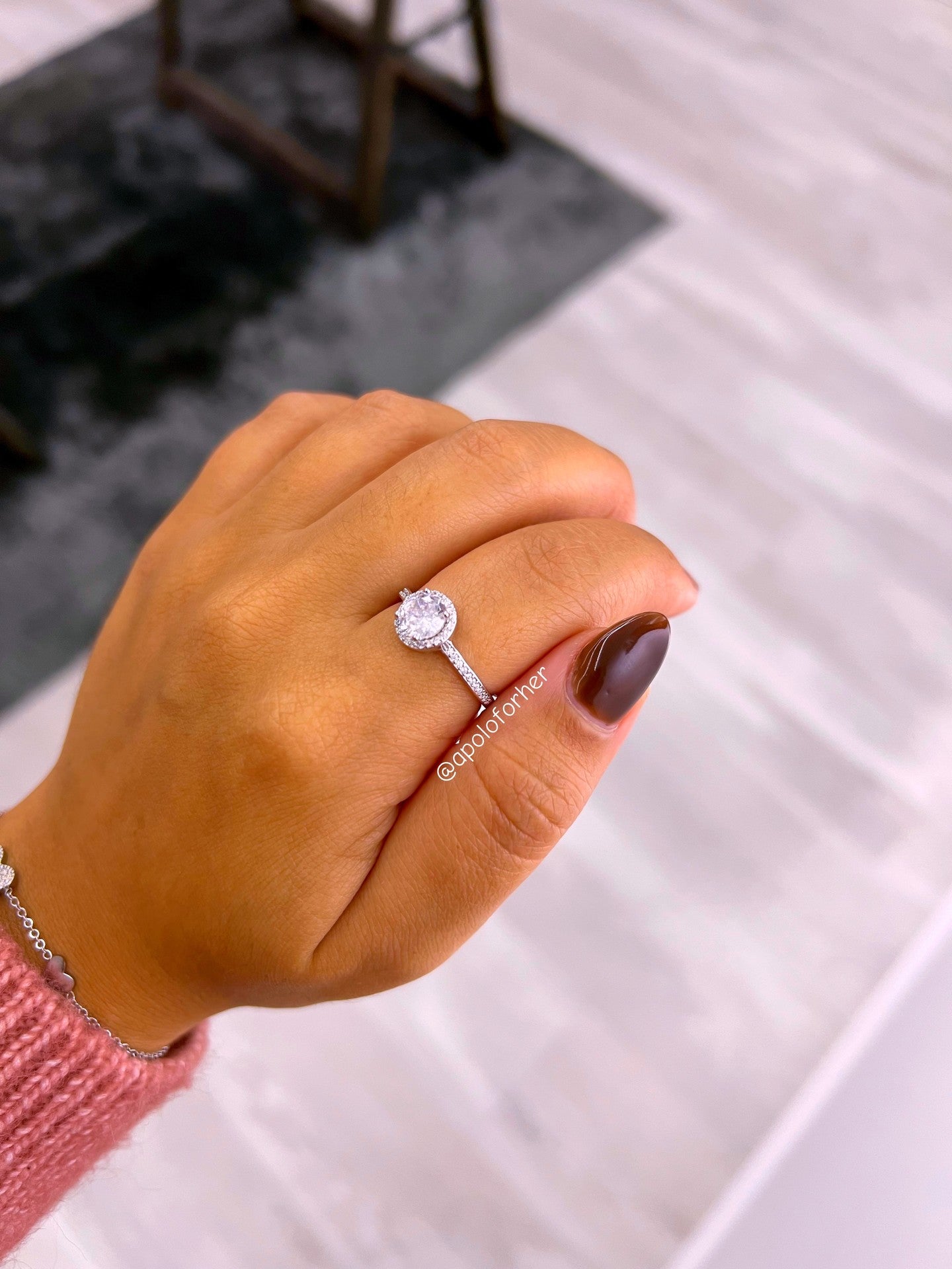 Anel delicado • solitário redondo com brilhantes | Linha Premium