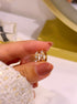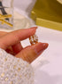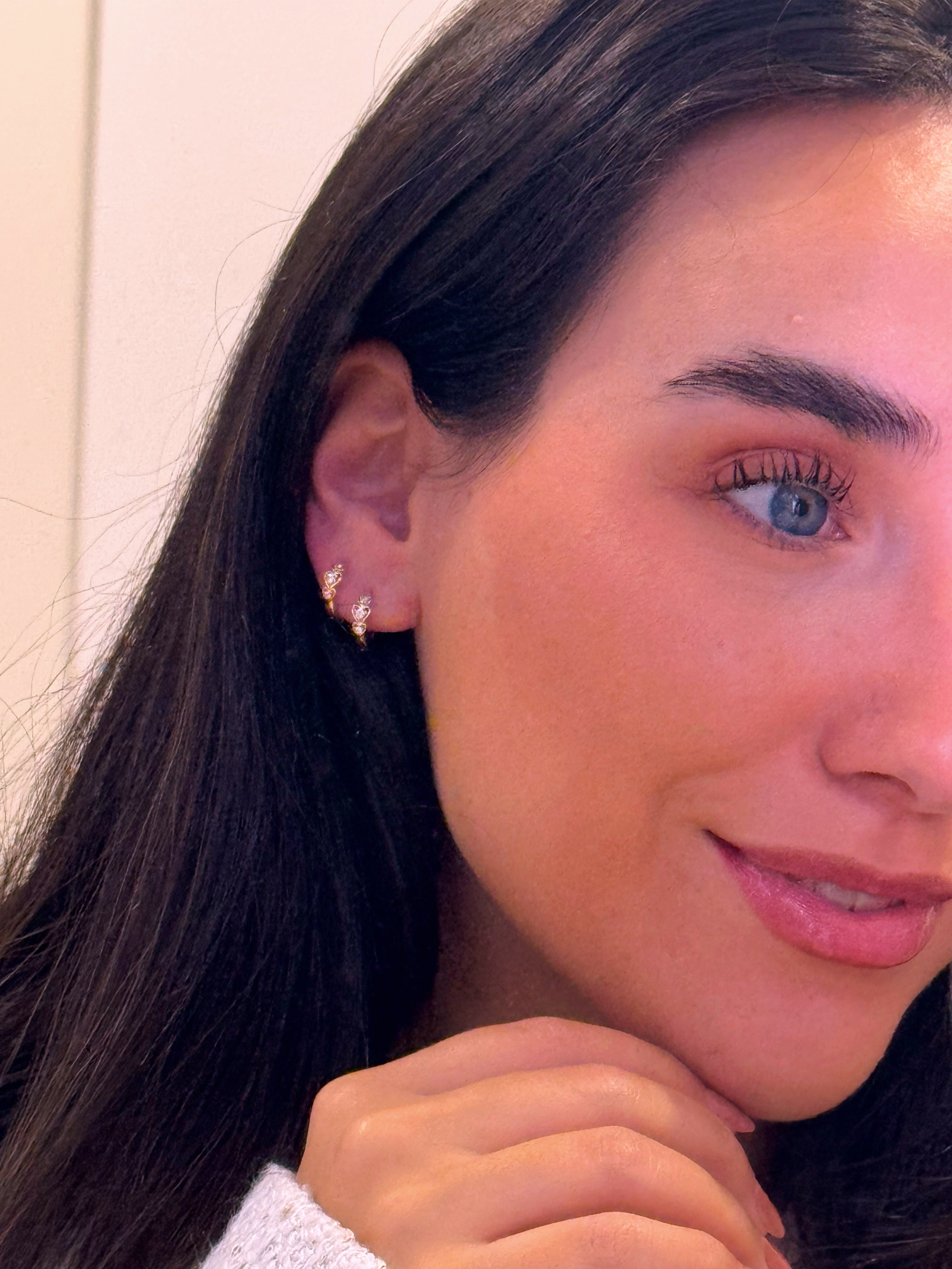 Argolinhas Rose gold com 3 corações e brilhantes ao centro de cada um.