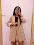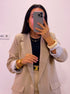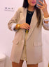Blazer super elegante, num estilo mais fluído, com um corte reto. Na cor bege, totalmente forrado com um tecido de estilo risca diplomática, que lhe confere muita elegância e sofisticação.
