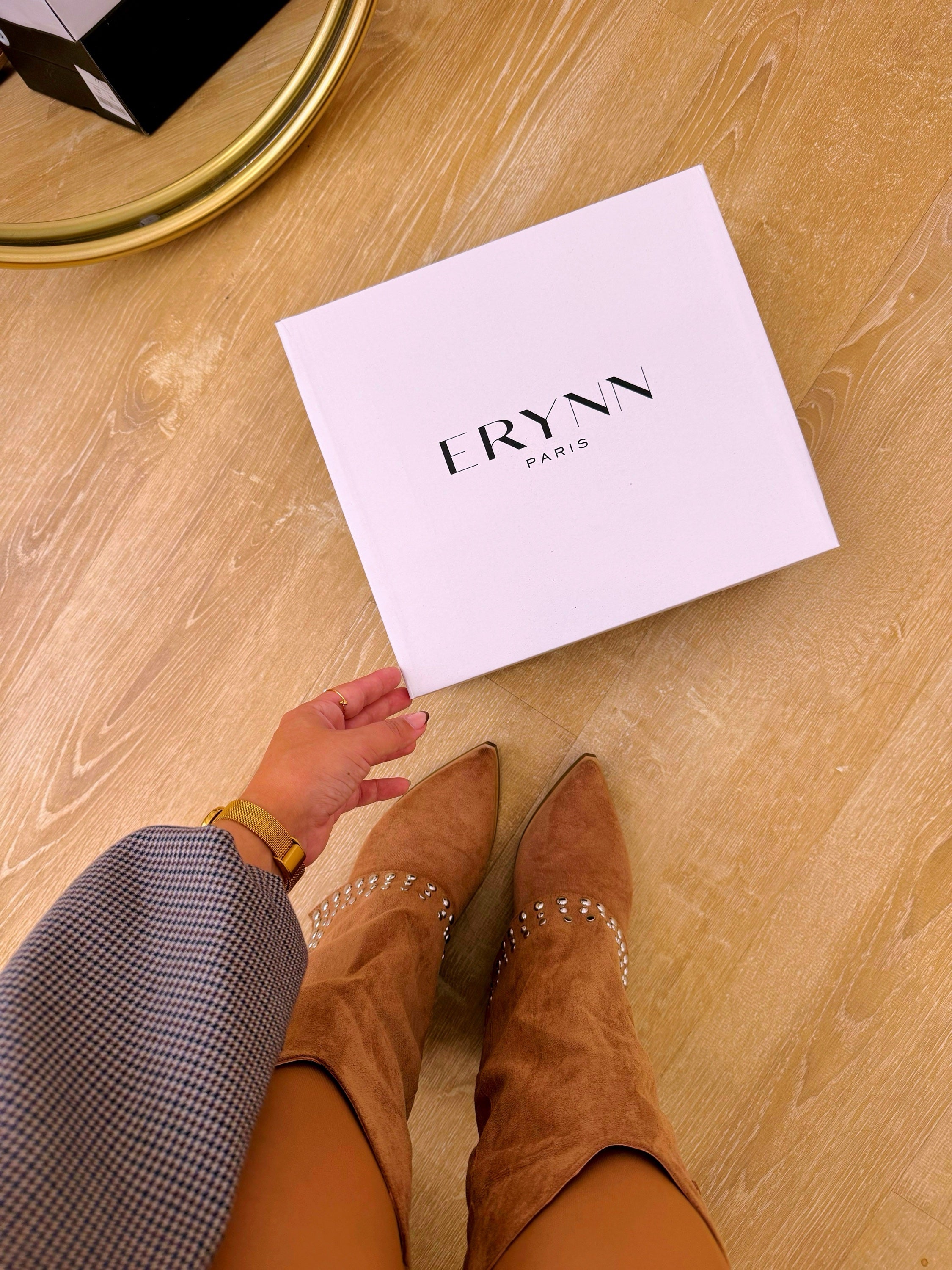 Botas estilo texana, com aba, super tendência e muito confortáveis, todas em efeito camurça, com tachas e pormenor de fivela. De alta qualidade.