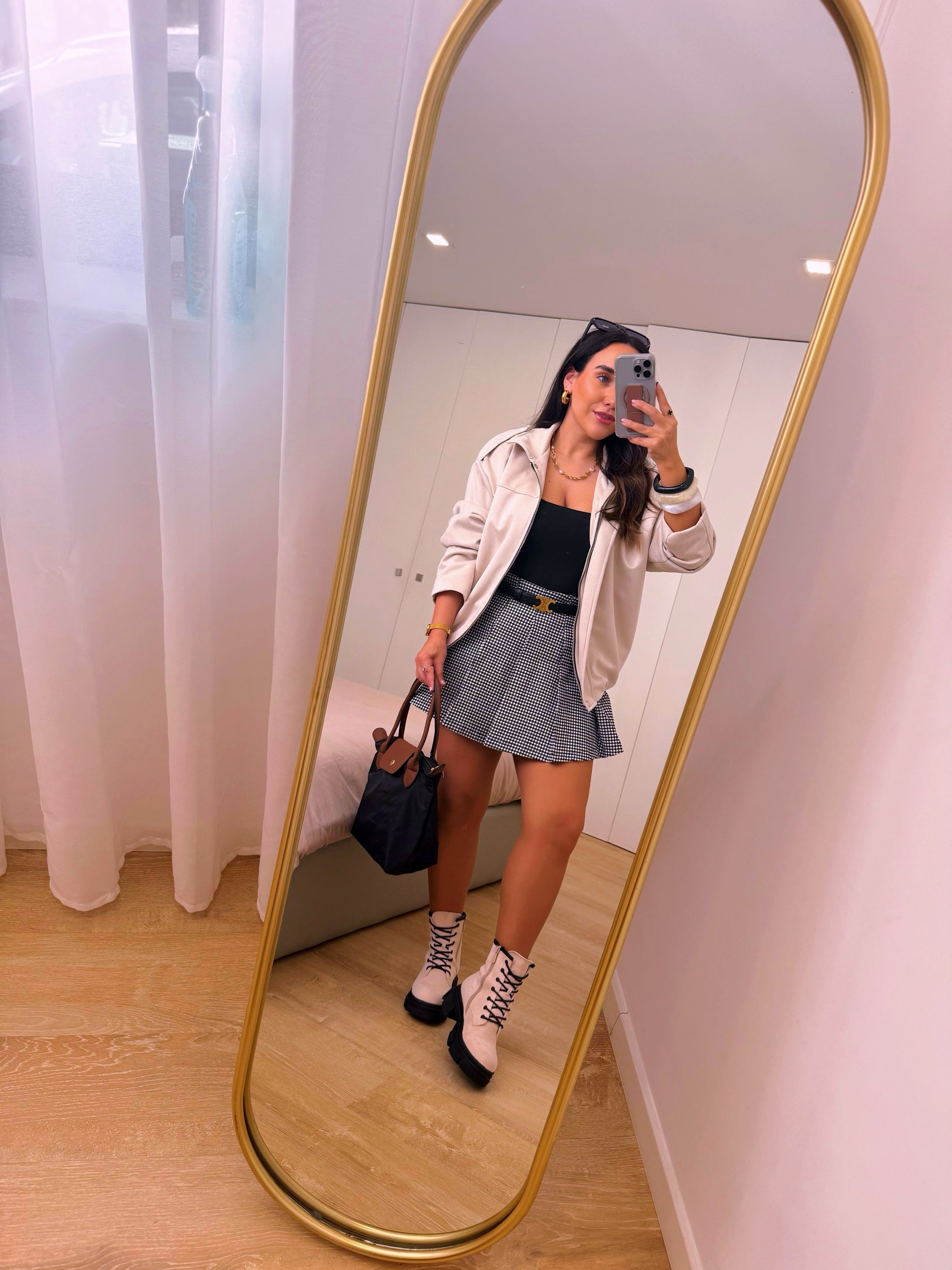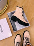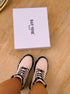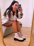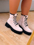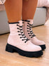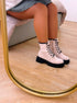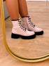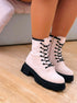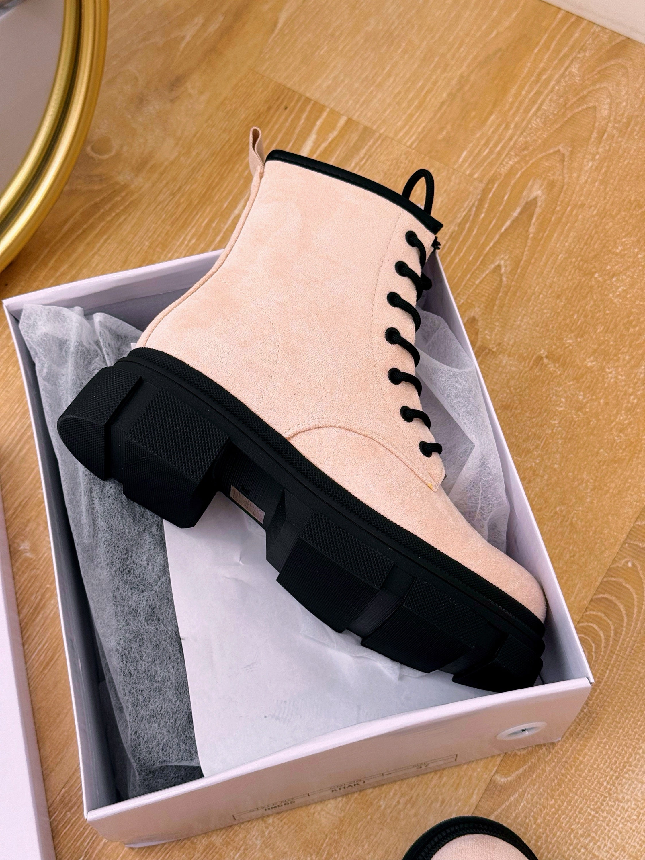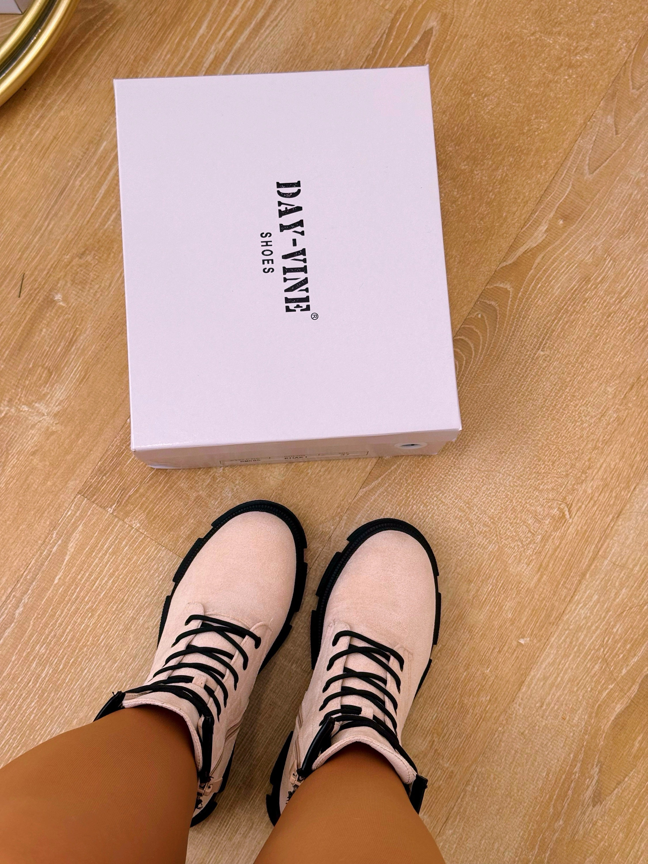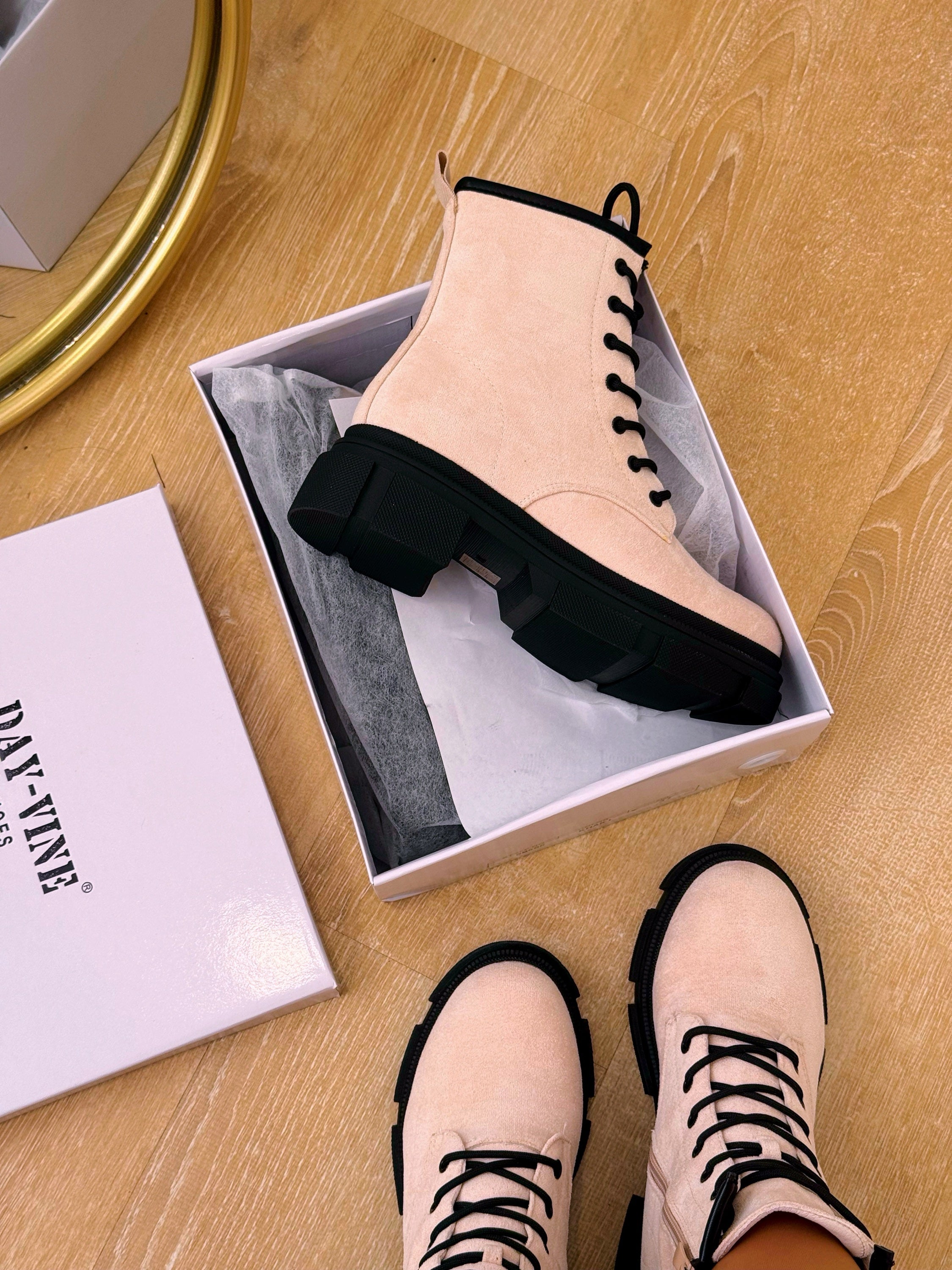 Bota militar com plataforma • efeito camurça bege com pormenores pretos