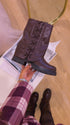 Botas em estilo militar, super tendência e muito confortáveis. De cor castanho chocolate, com efeito de atacadores elásticos que lhes conferem um toque moderno e irreverente.