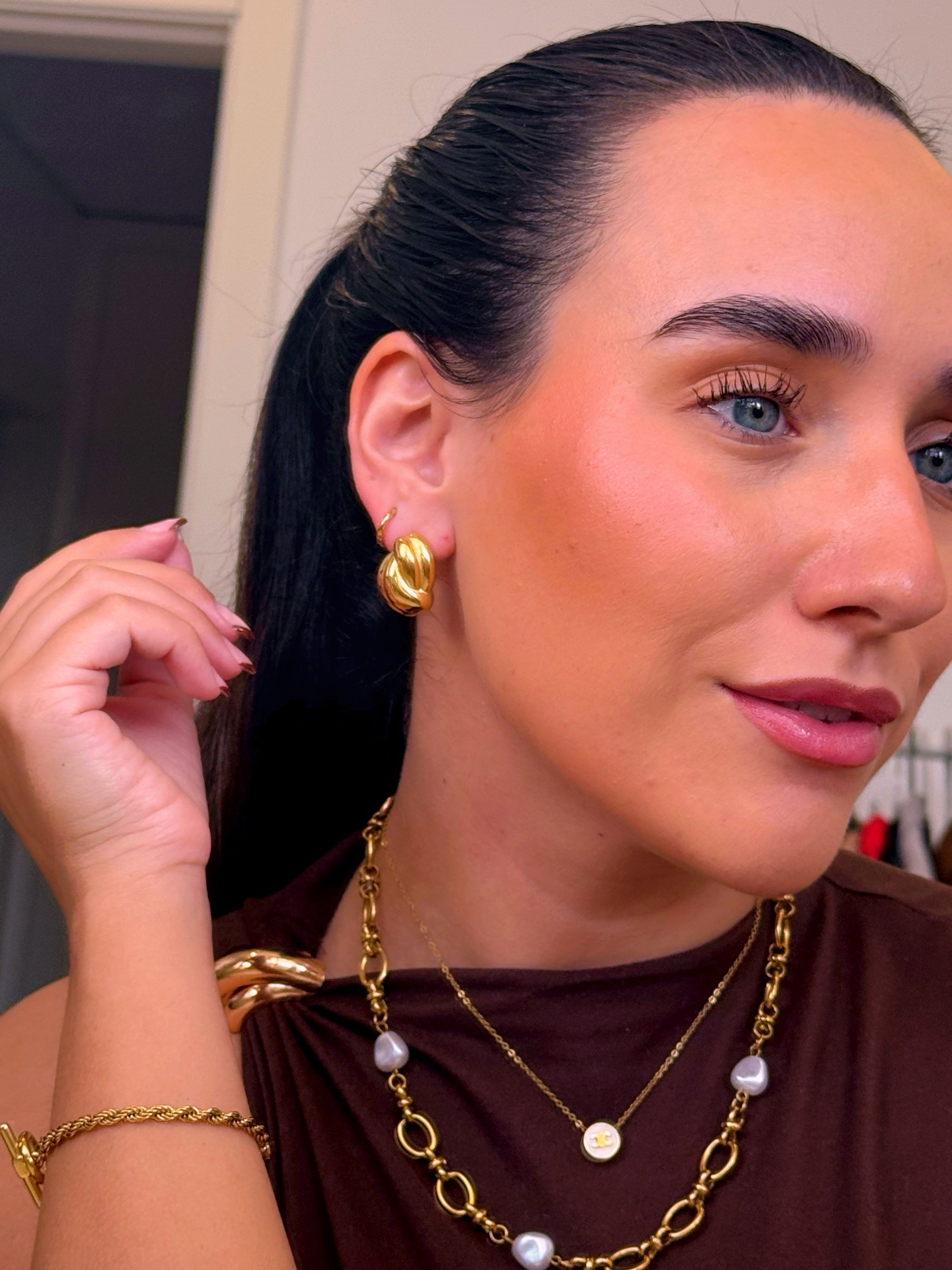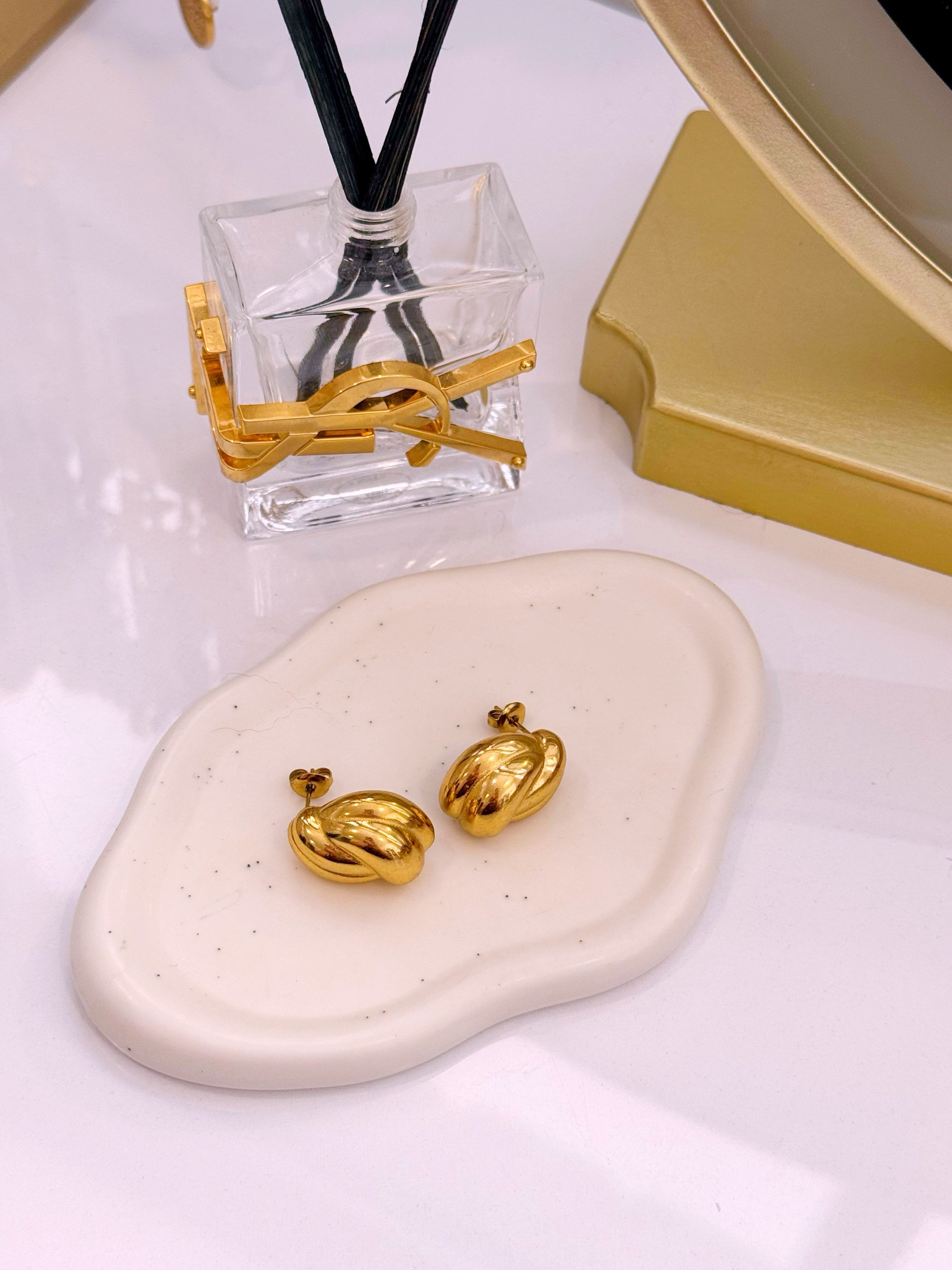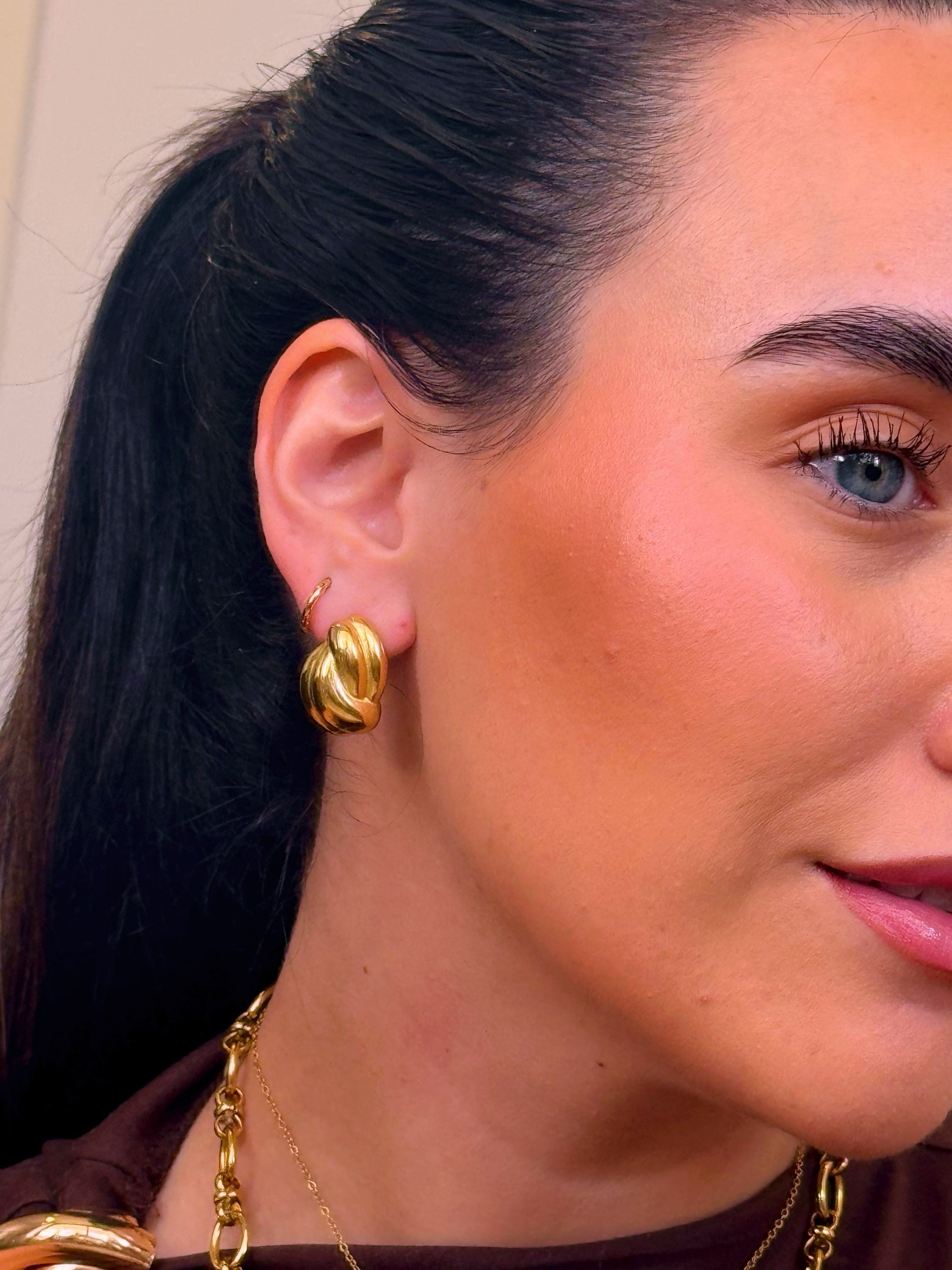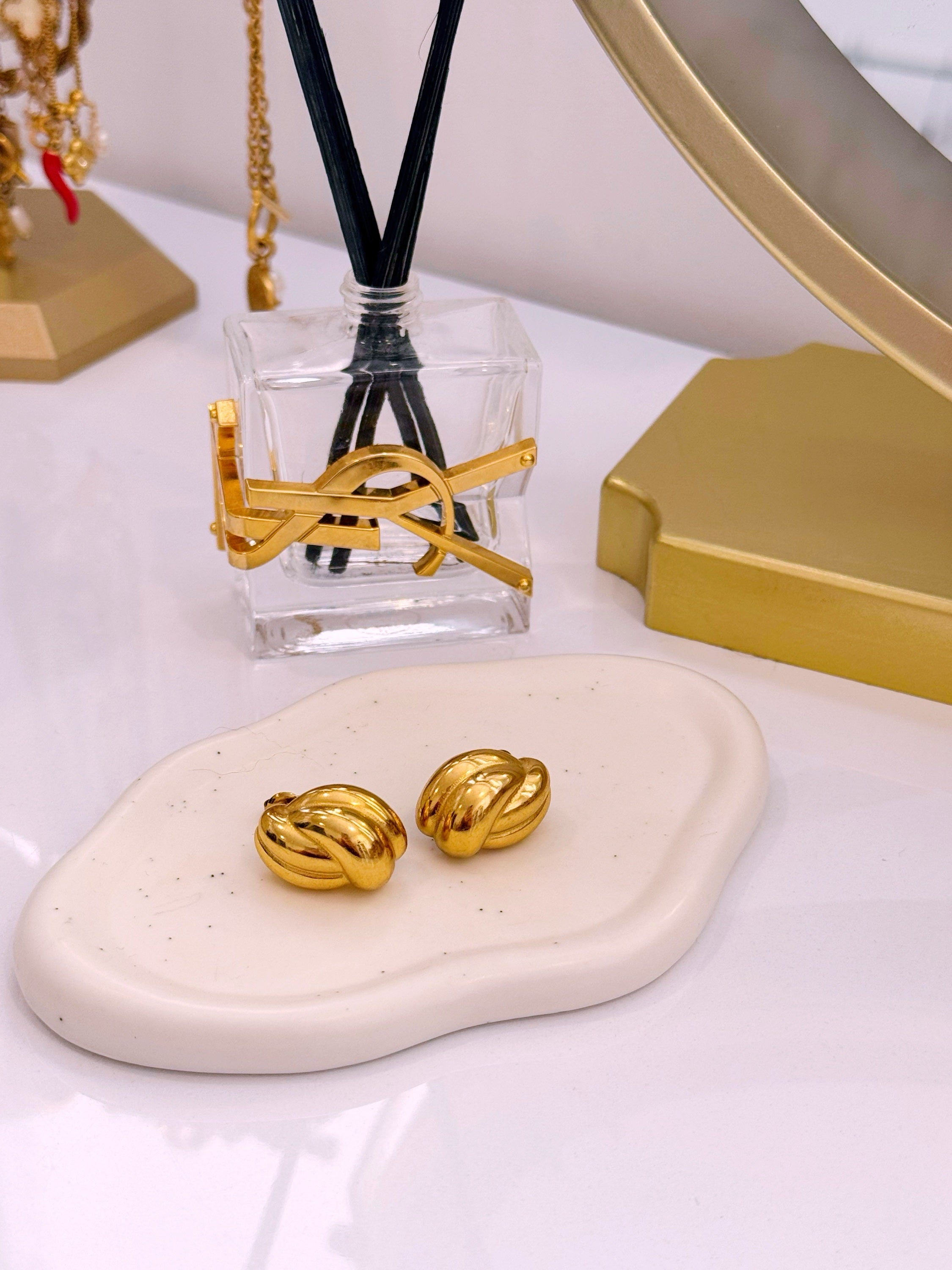Brincos clássicos elegantes com efeito entrançado e relevos.