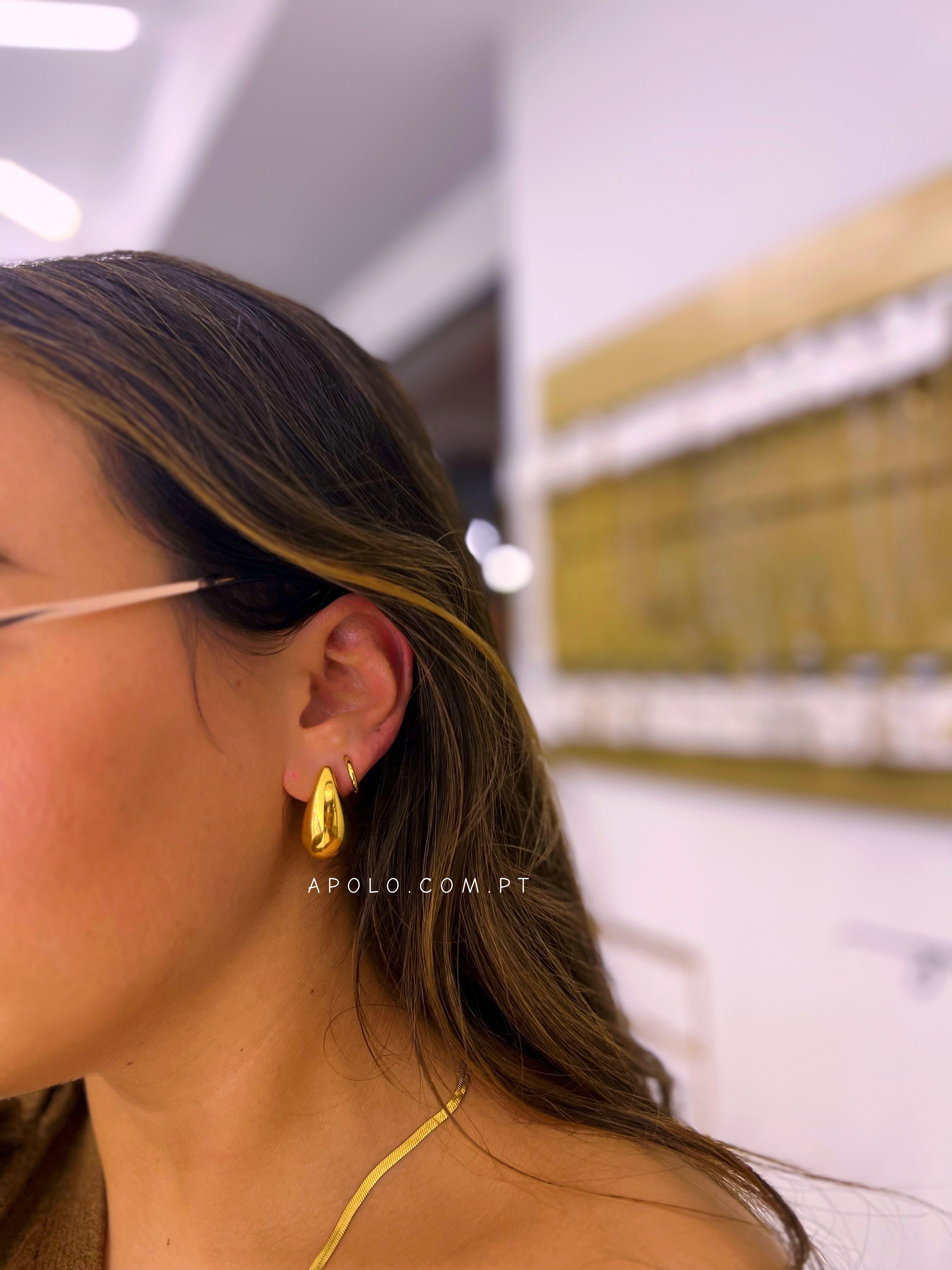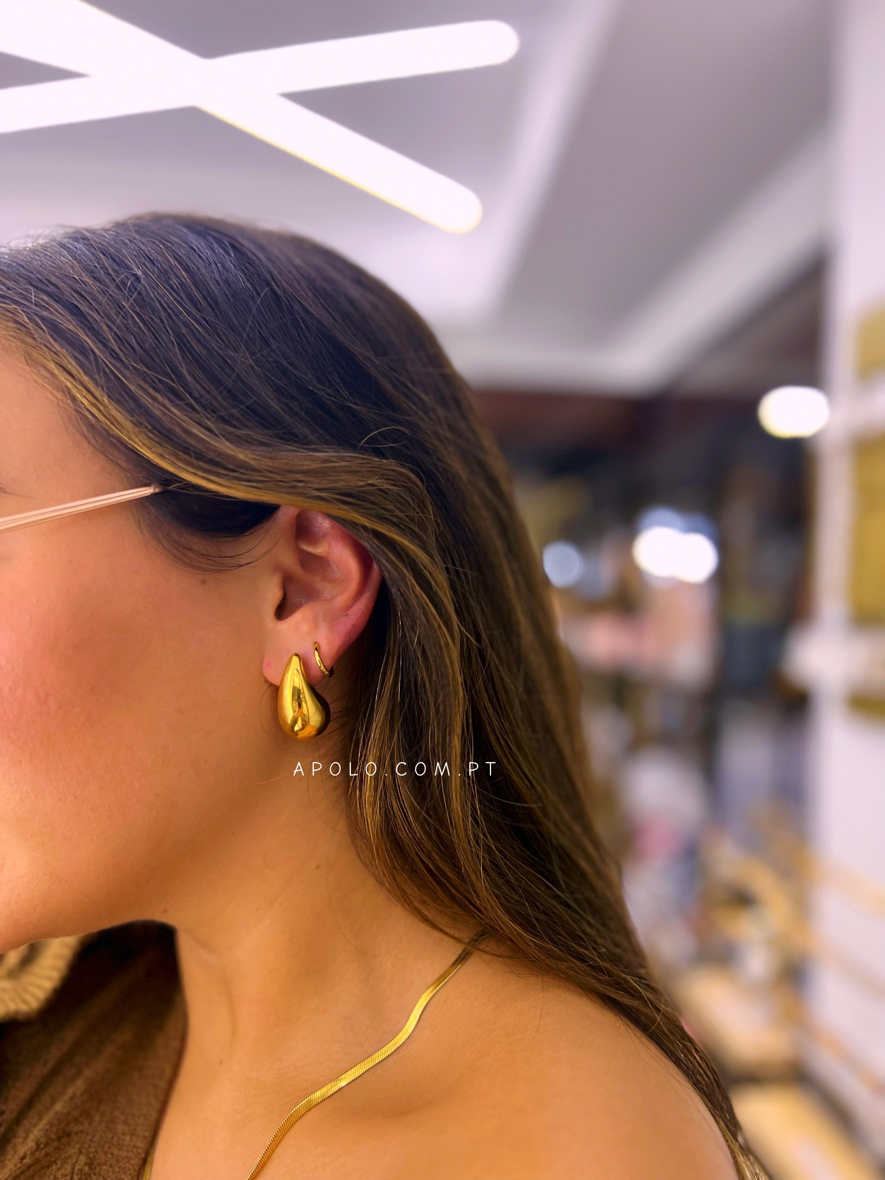 Brincos maciços com formato de gota - modelo leve e confortável.