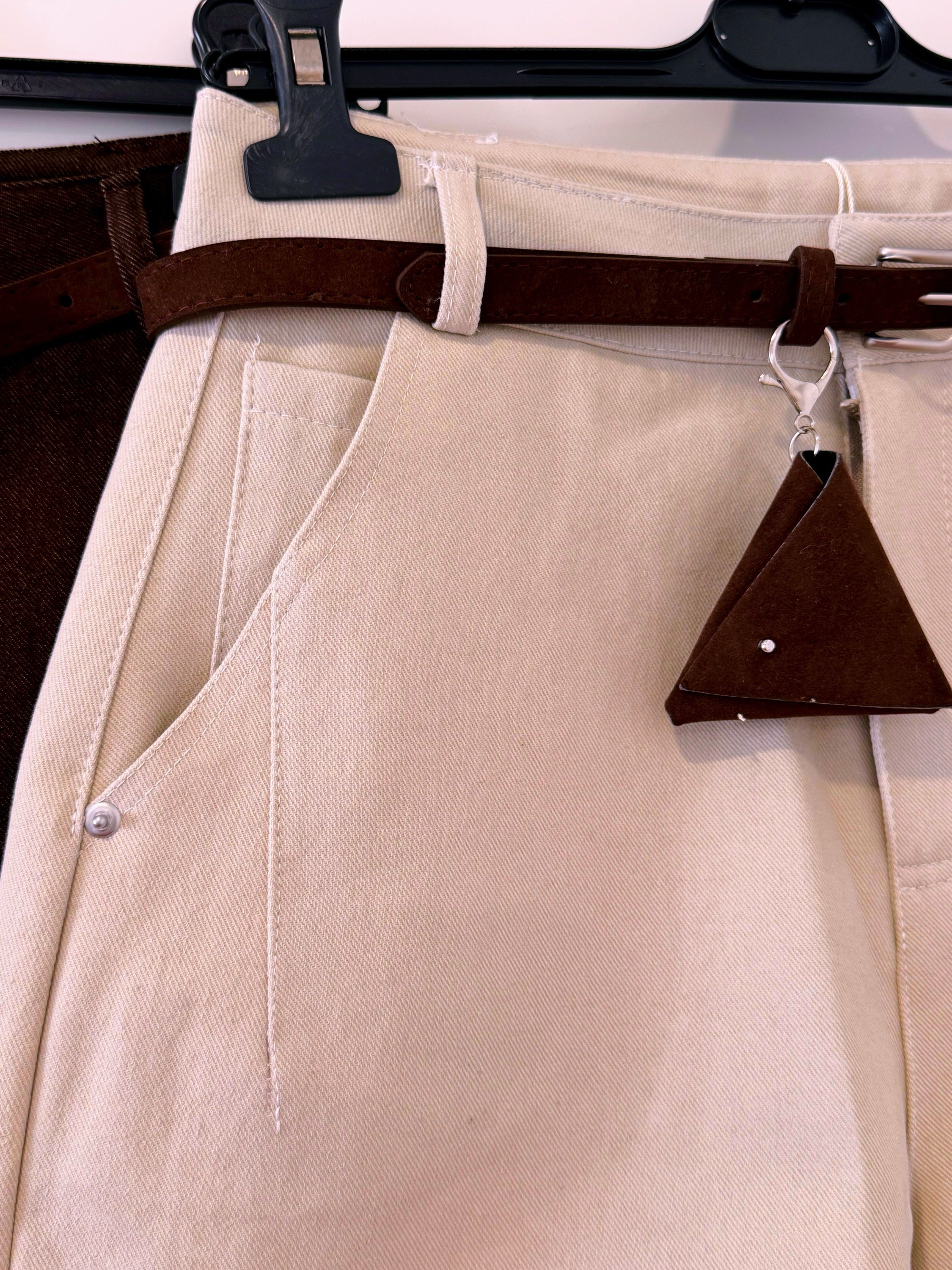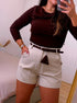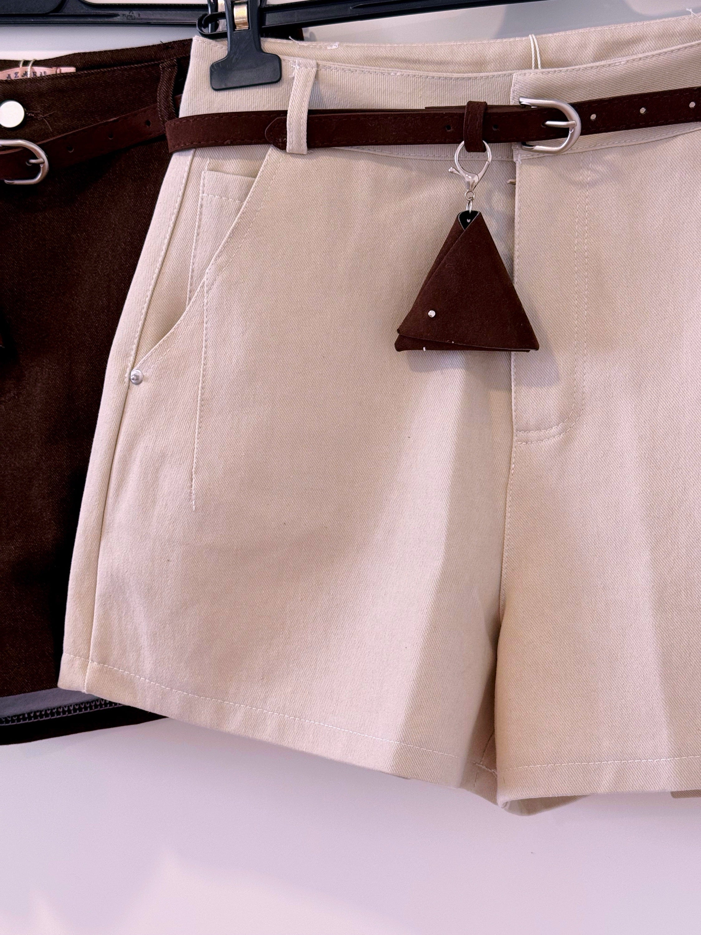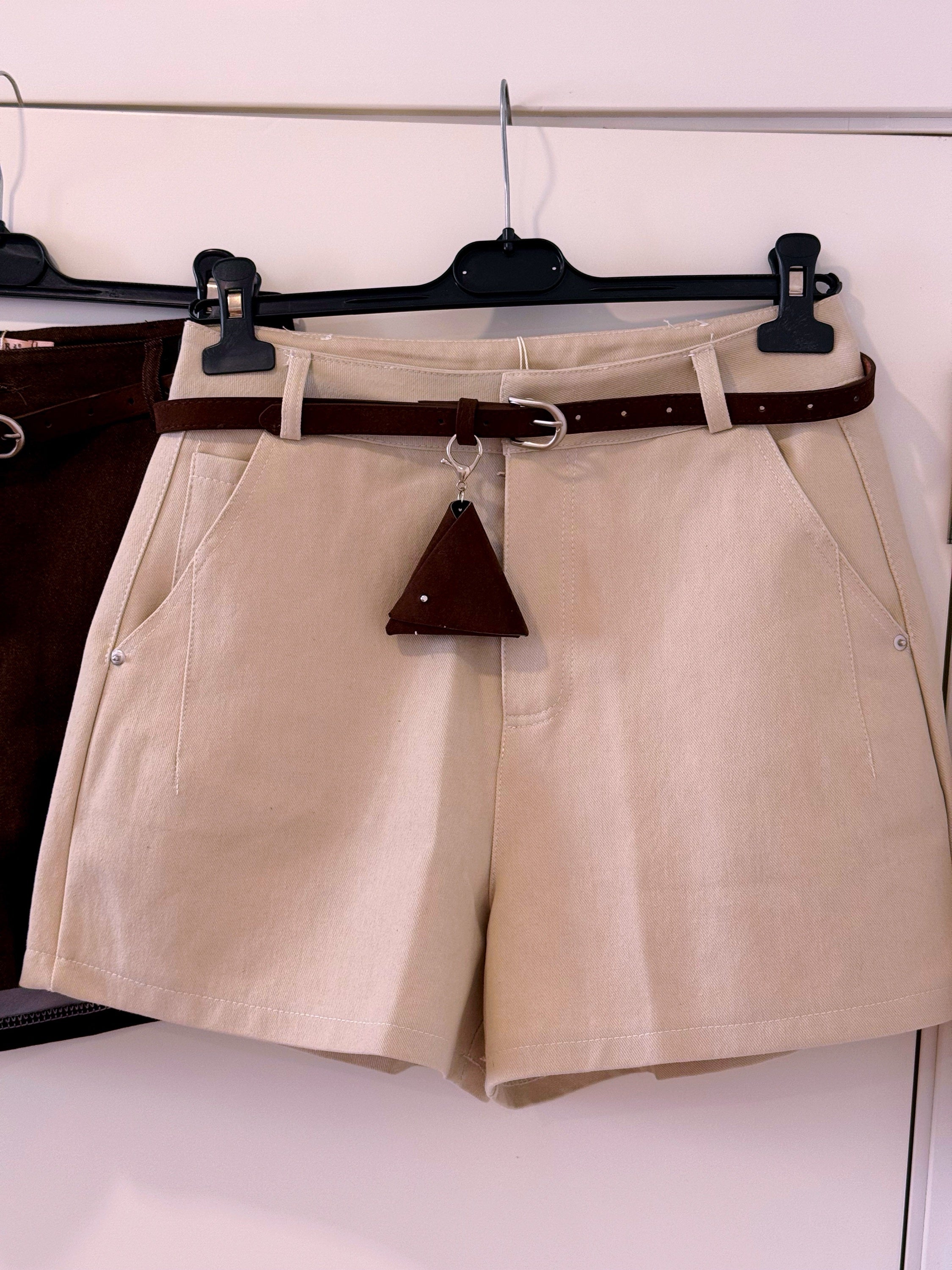 Calção Bege com cinto de efeito camurça incluído | 3 Tamanhos