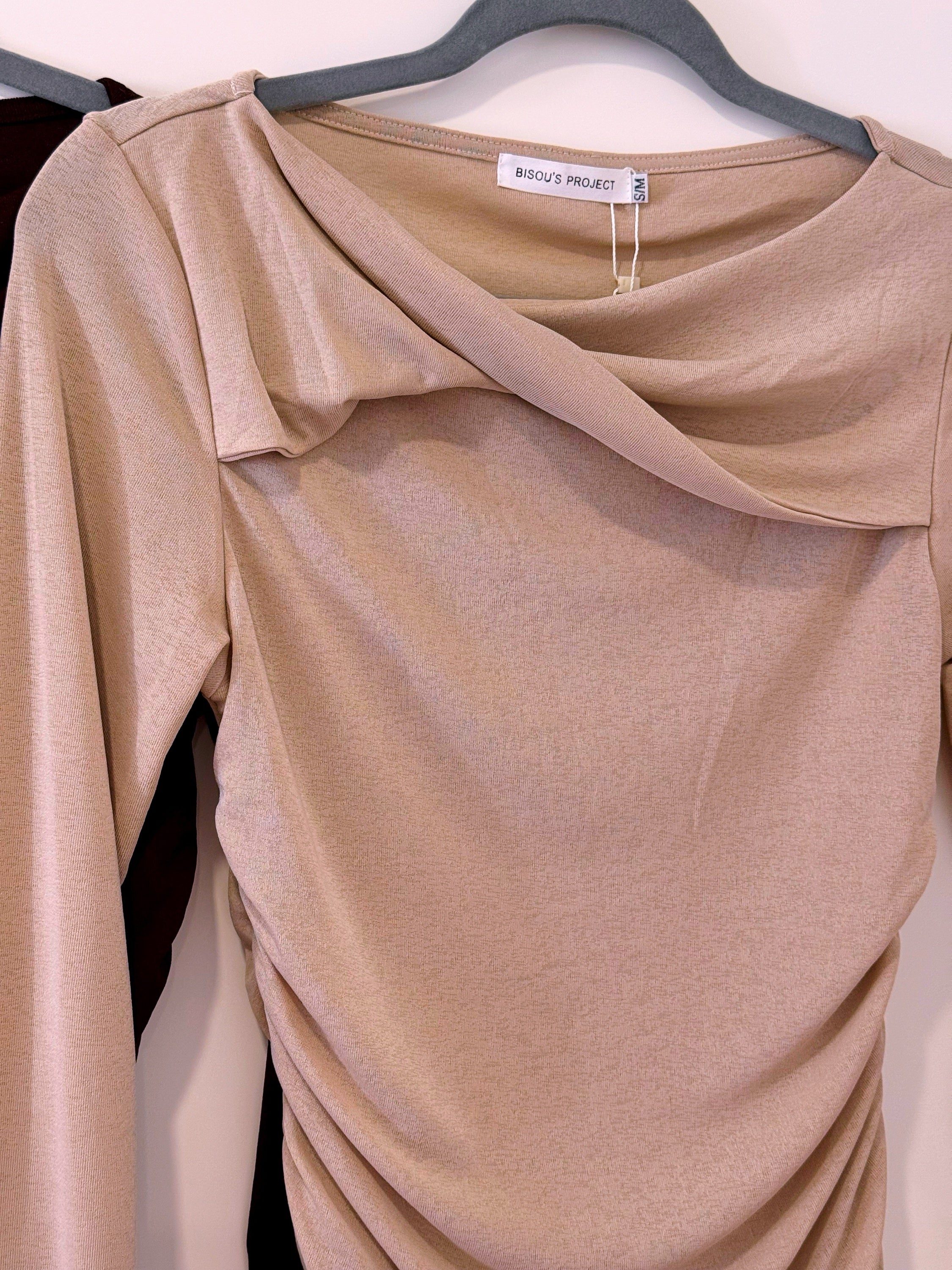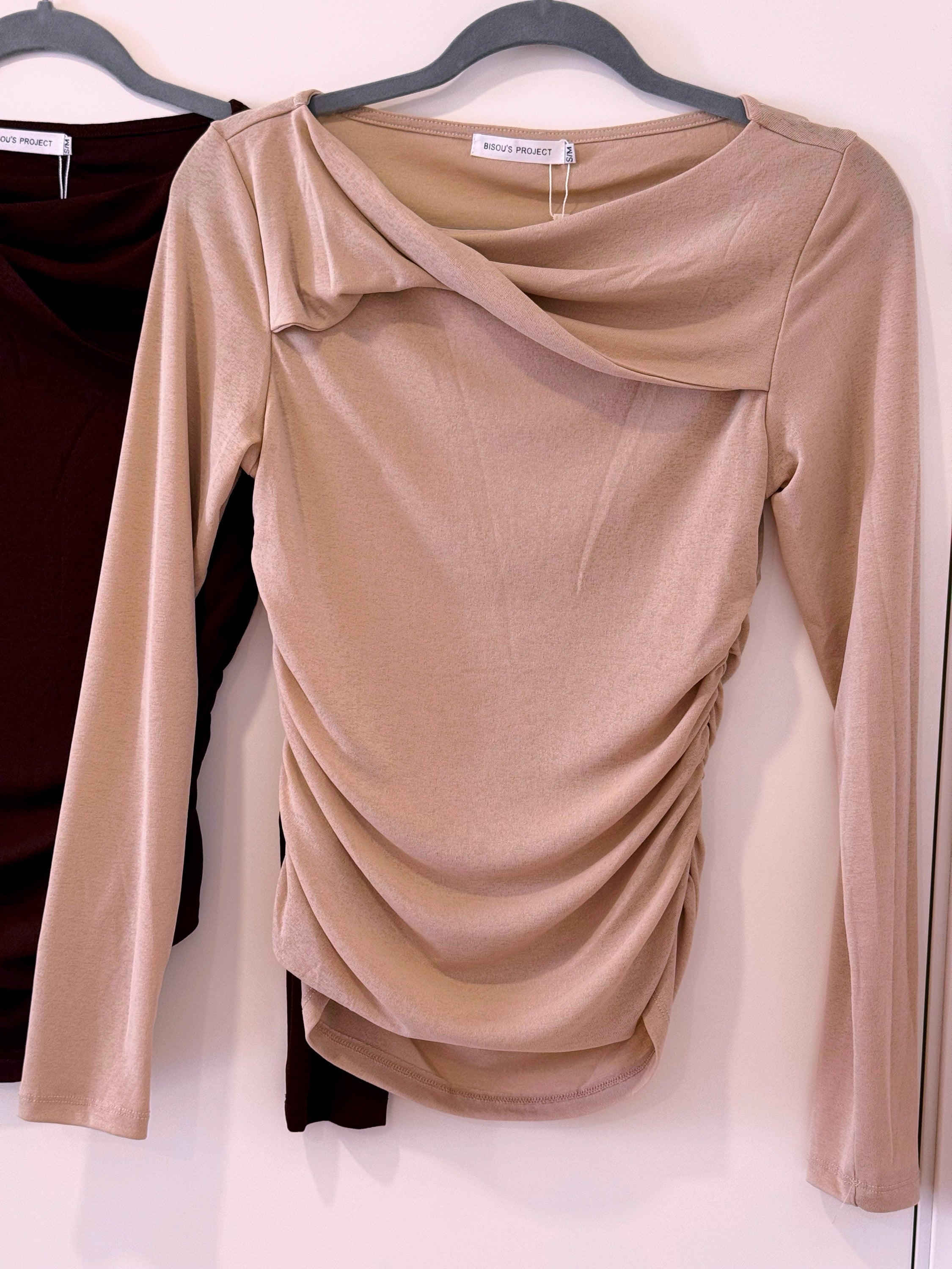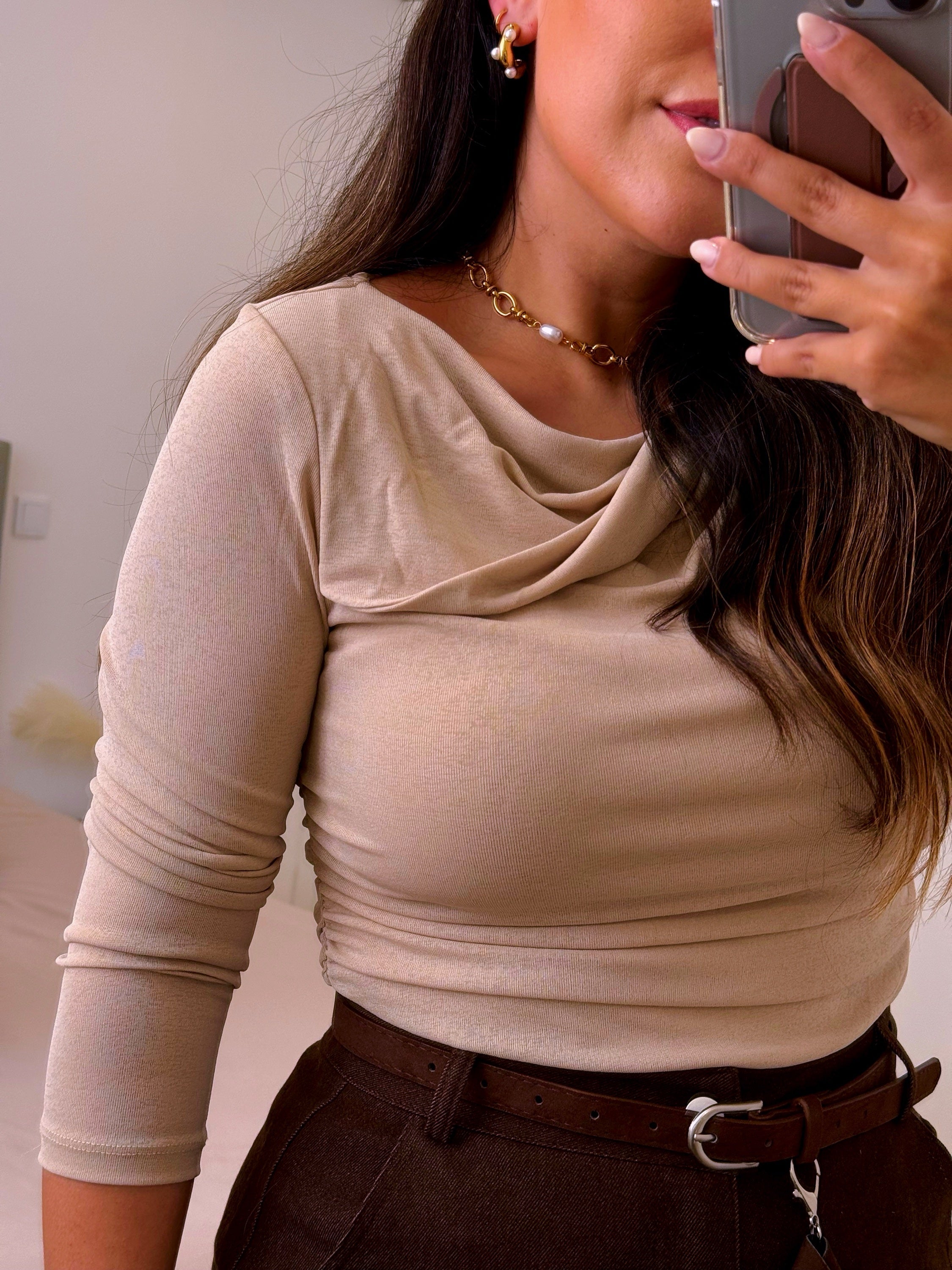 Camisola Bege com decote redondo torcido | 2 Tamanhos