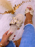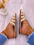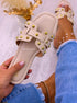 Chinelo com pormenores metálicos em toda a parte da frente.