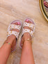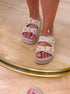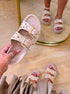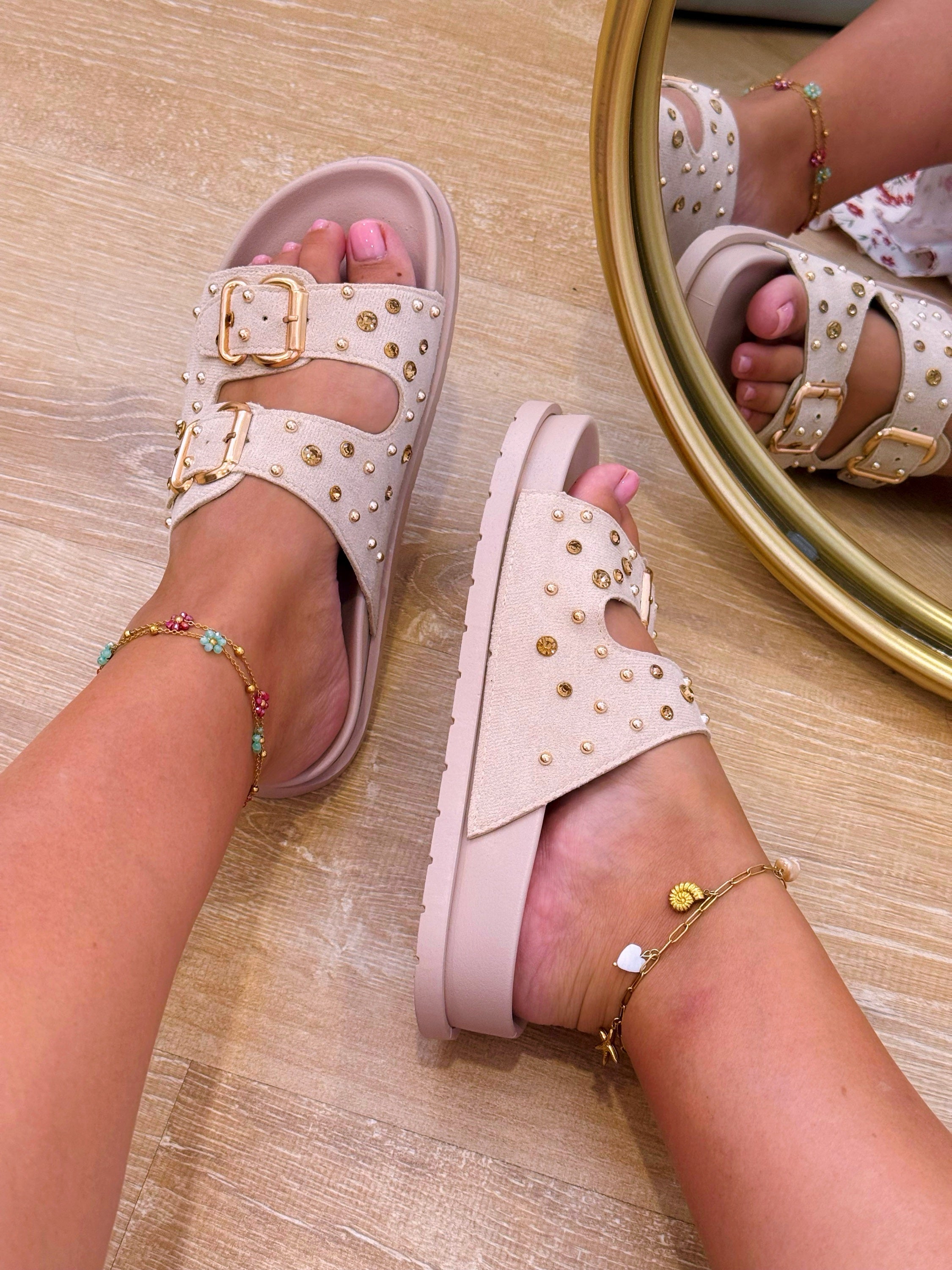 Chinelo de fivelas com pormenores dourados e brilhantes | Bege