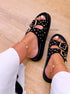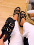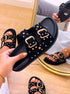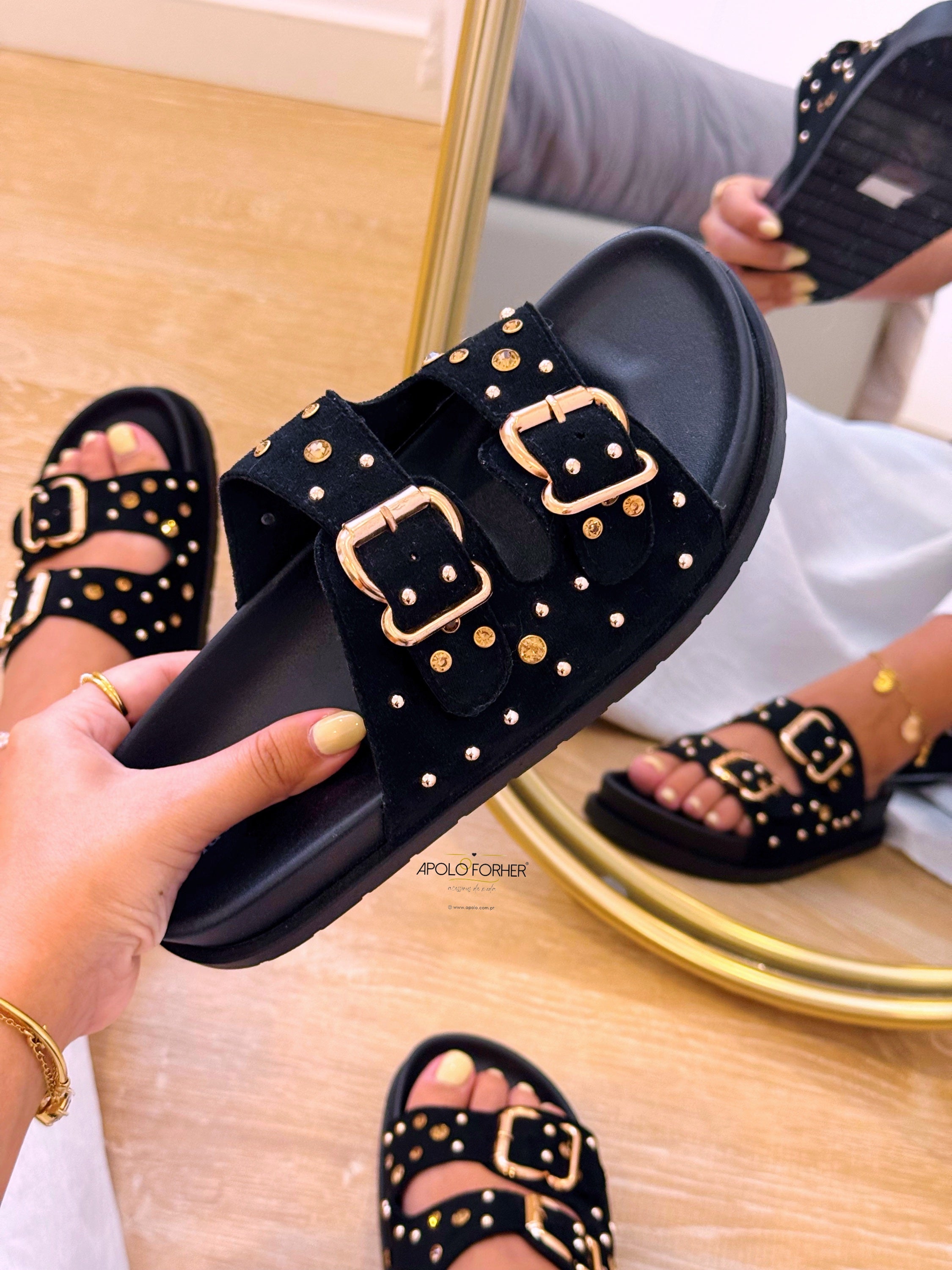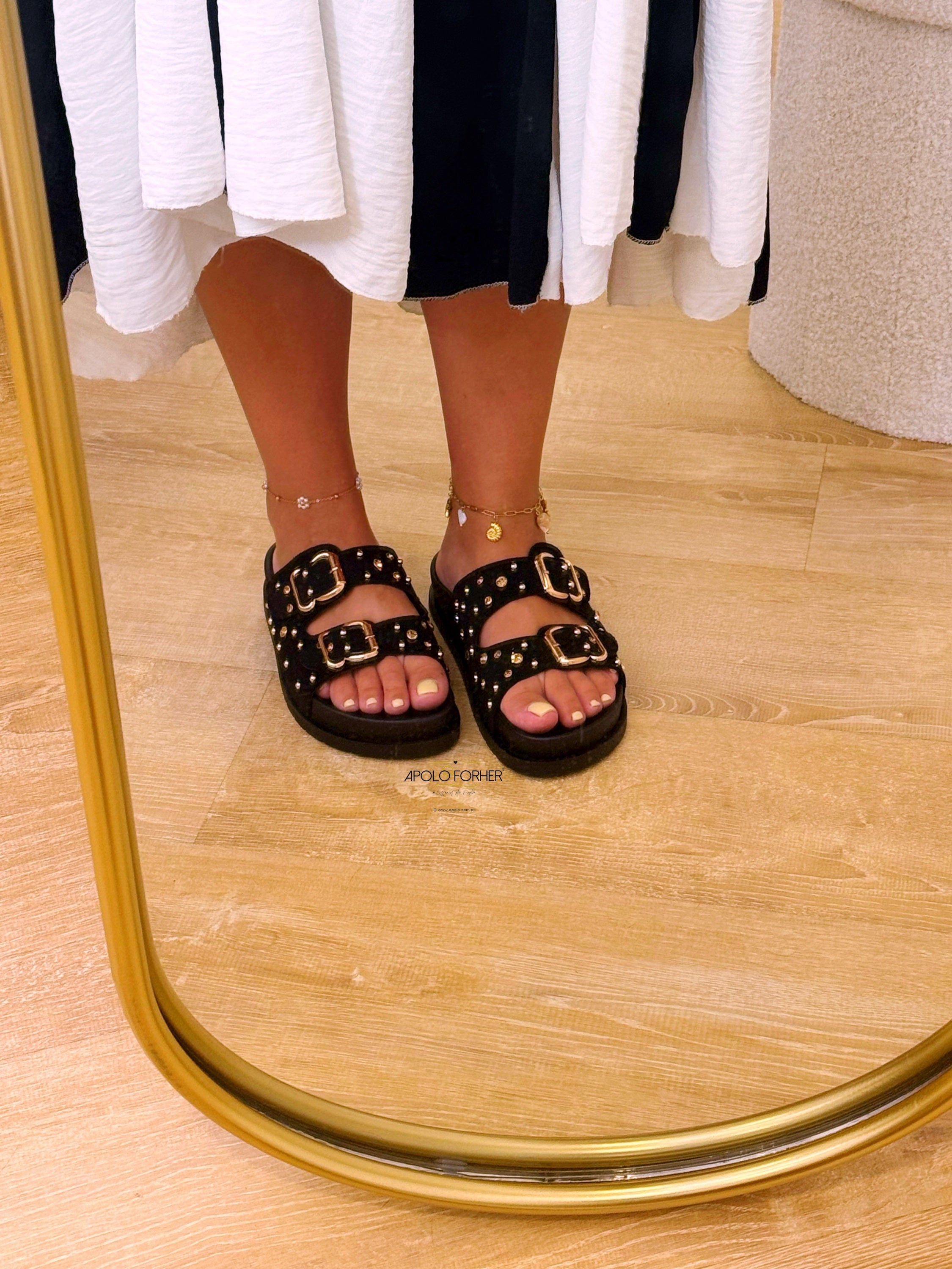 Chinelo de fivelas com pormenores dourados e brilhantes | Preto