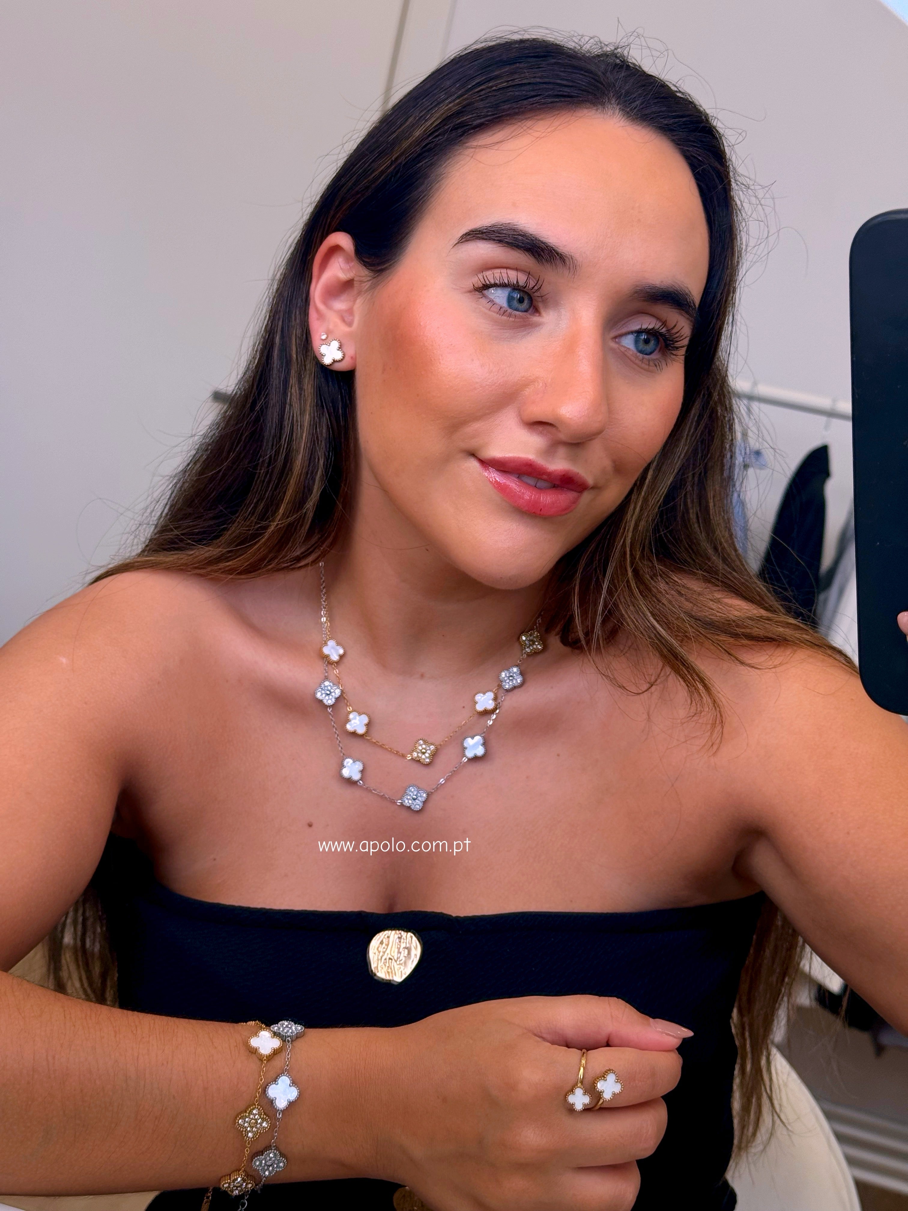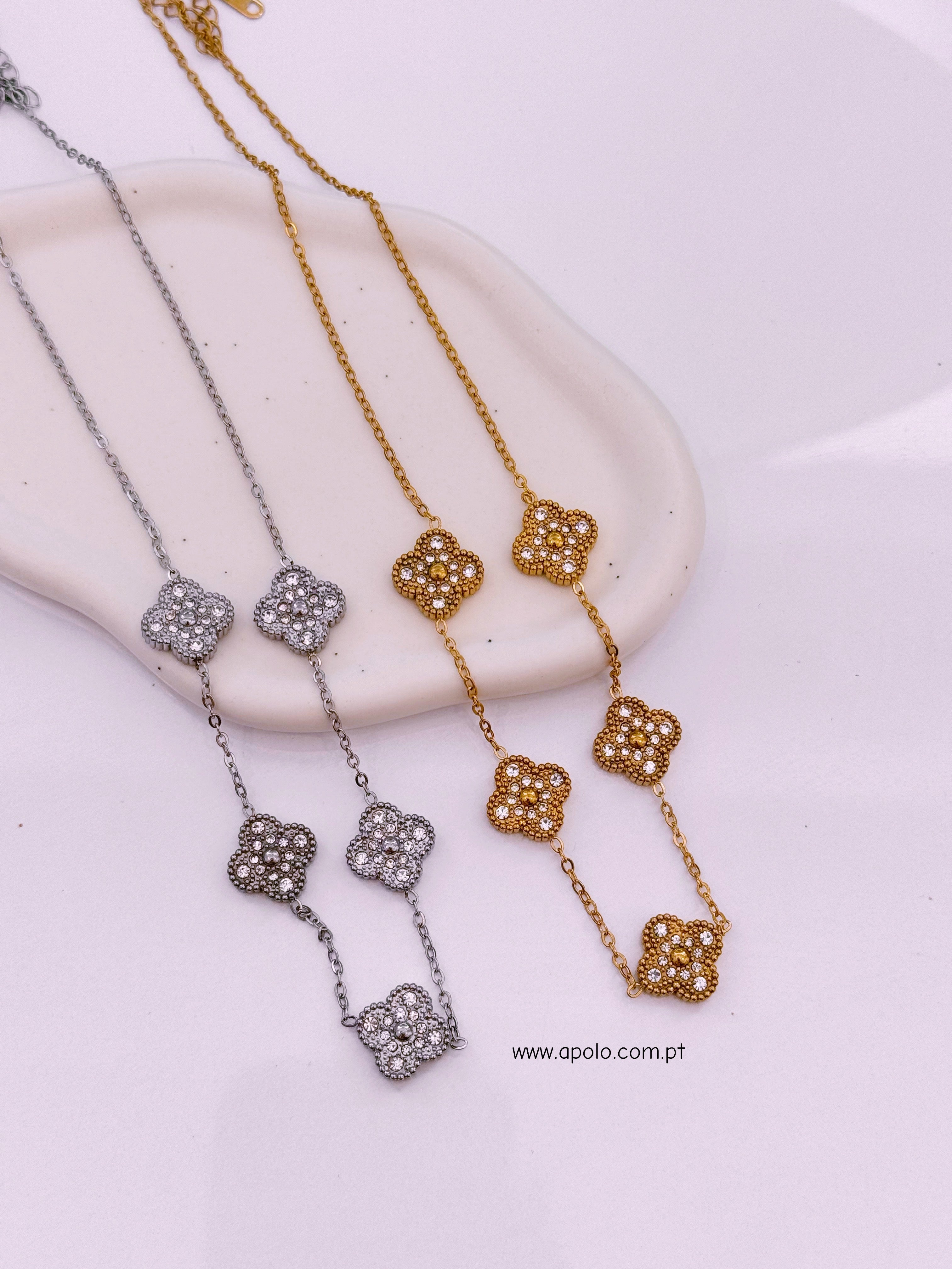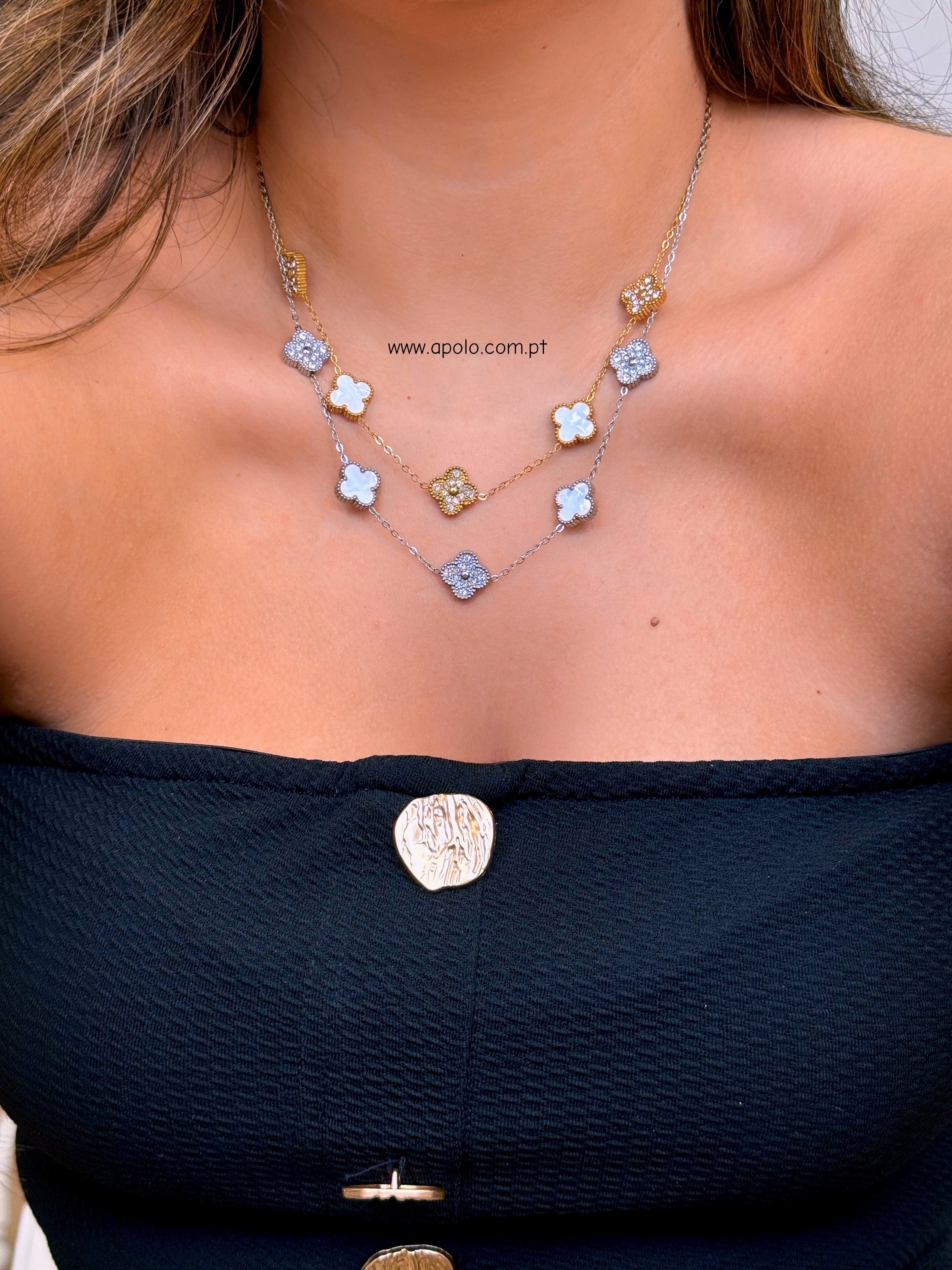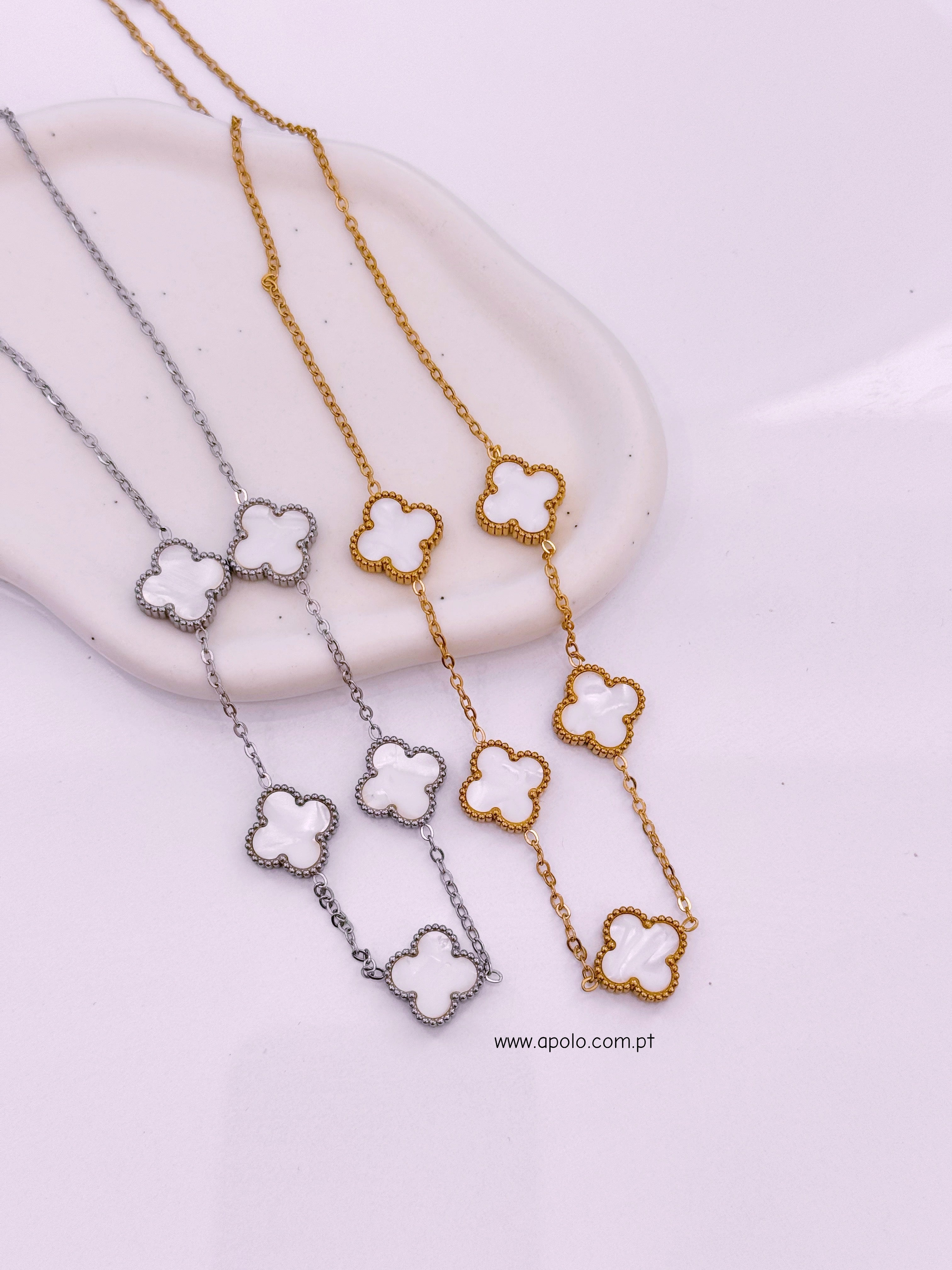 Colar 5 trevos reversíveis com brilhantes e madre pérola | 2 Cores