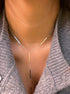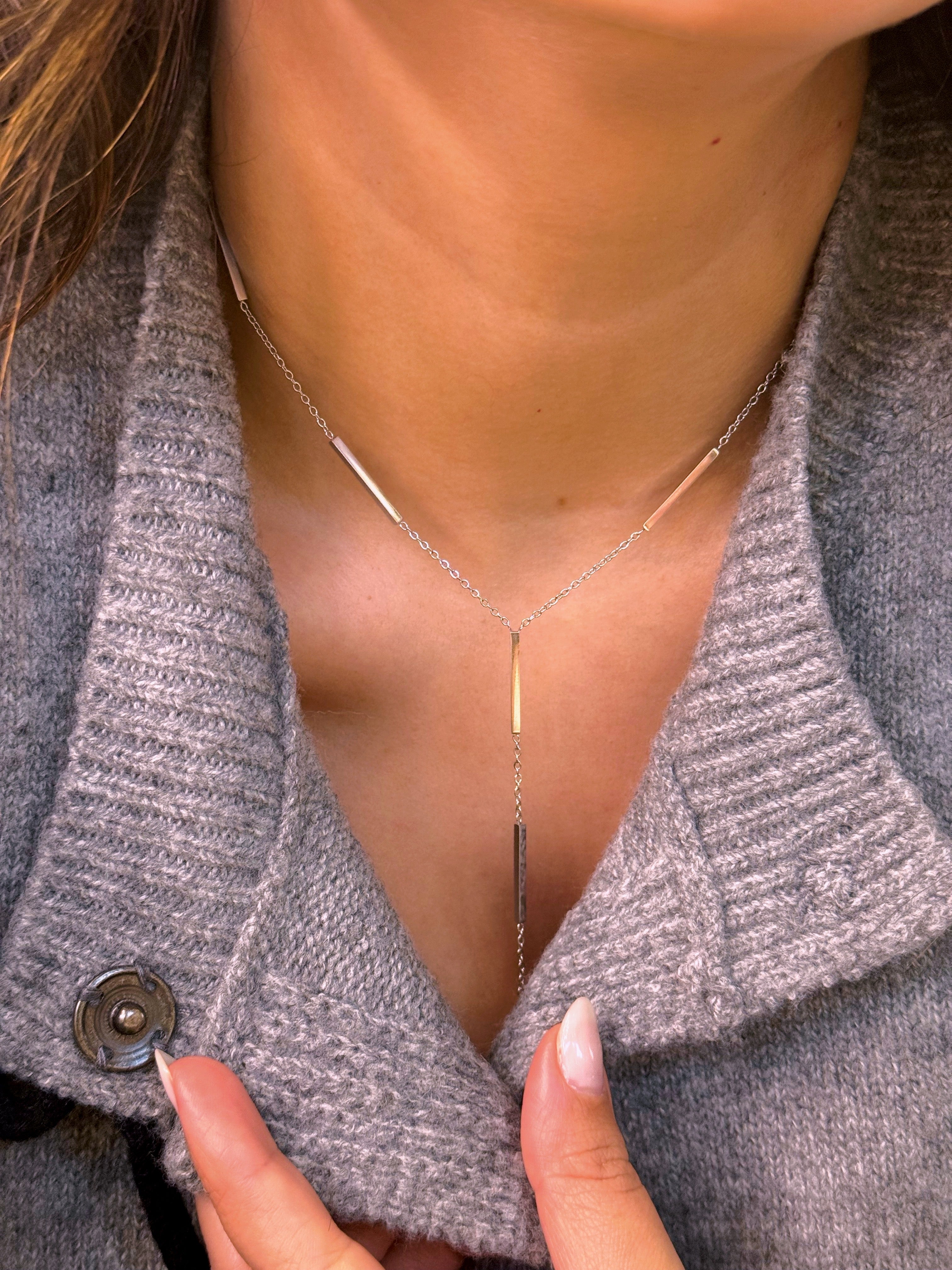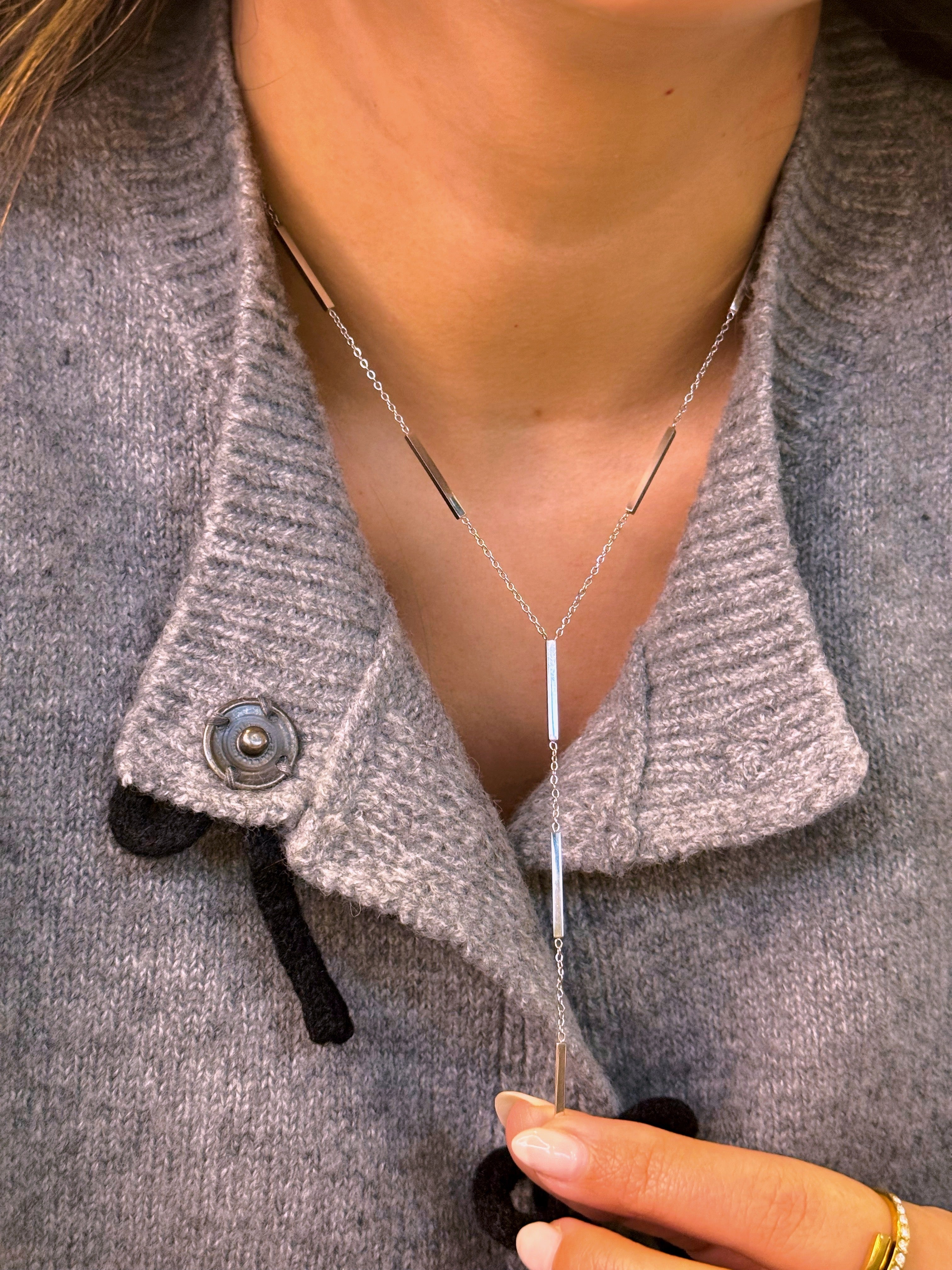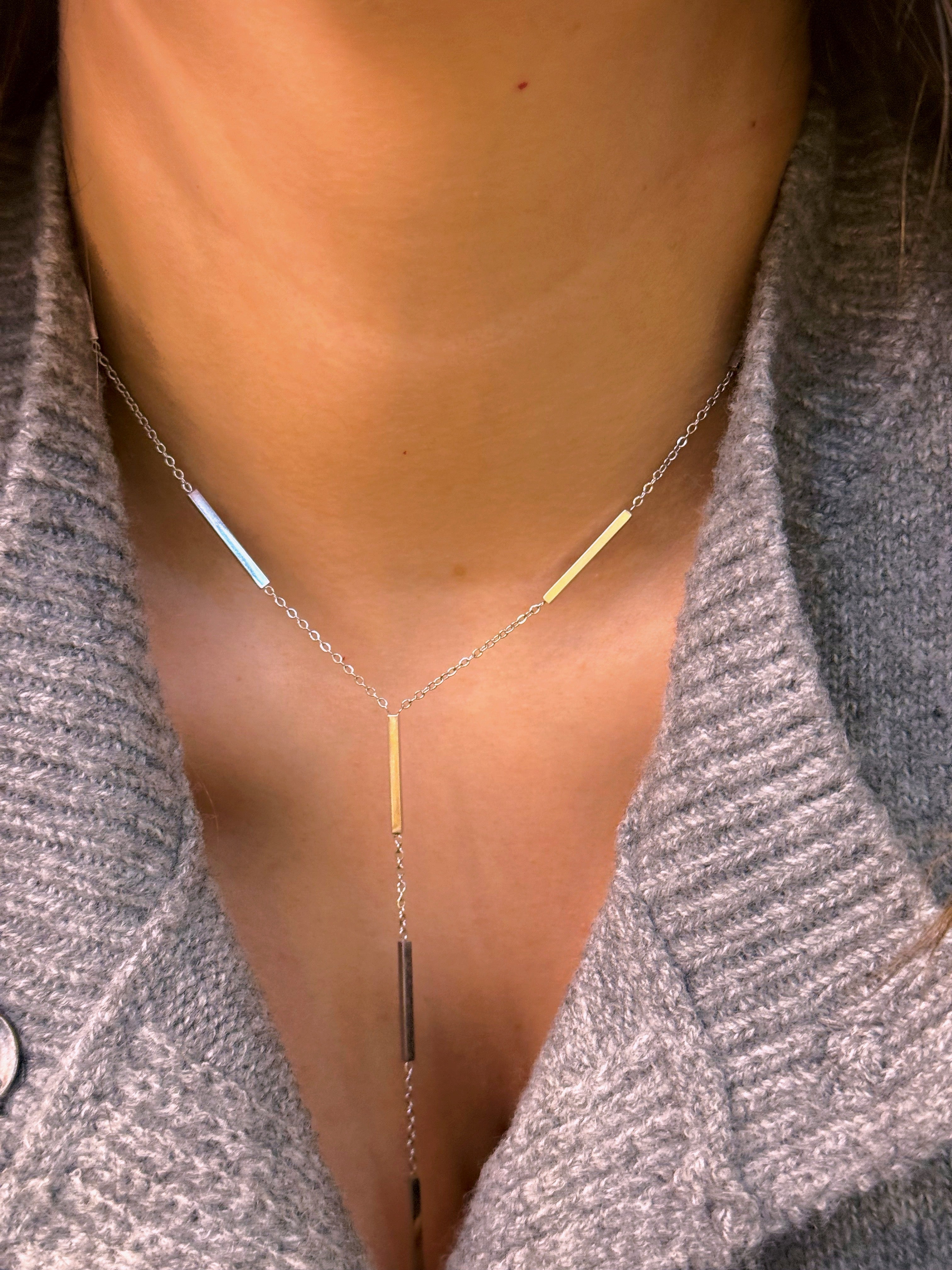 Colar ajustável, com extensão, comprimento máximo de 47,5 cm.