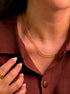 Conjunto de colar dourado com missangas rosa e corrente de bolinhas.