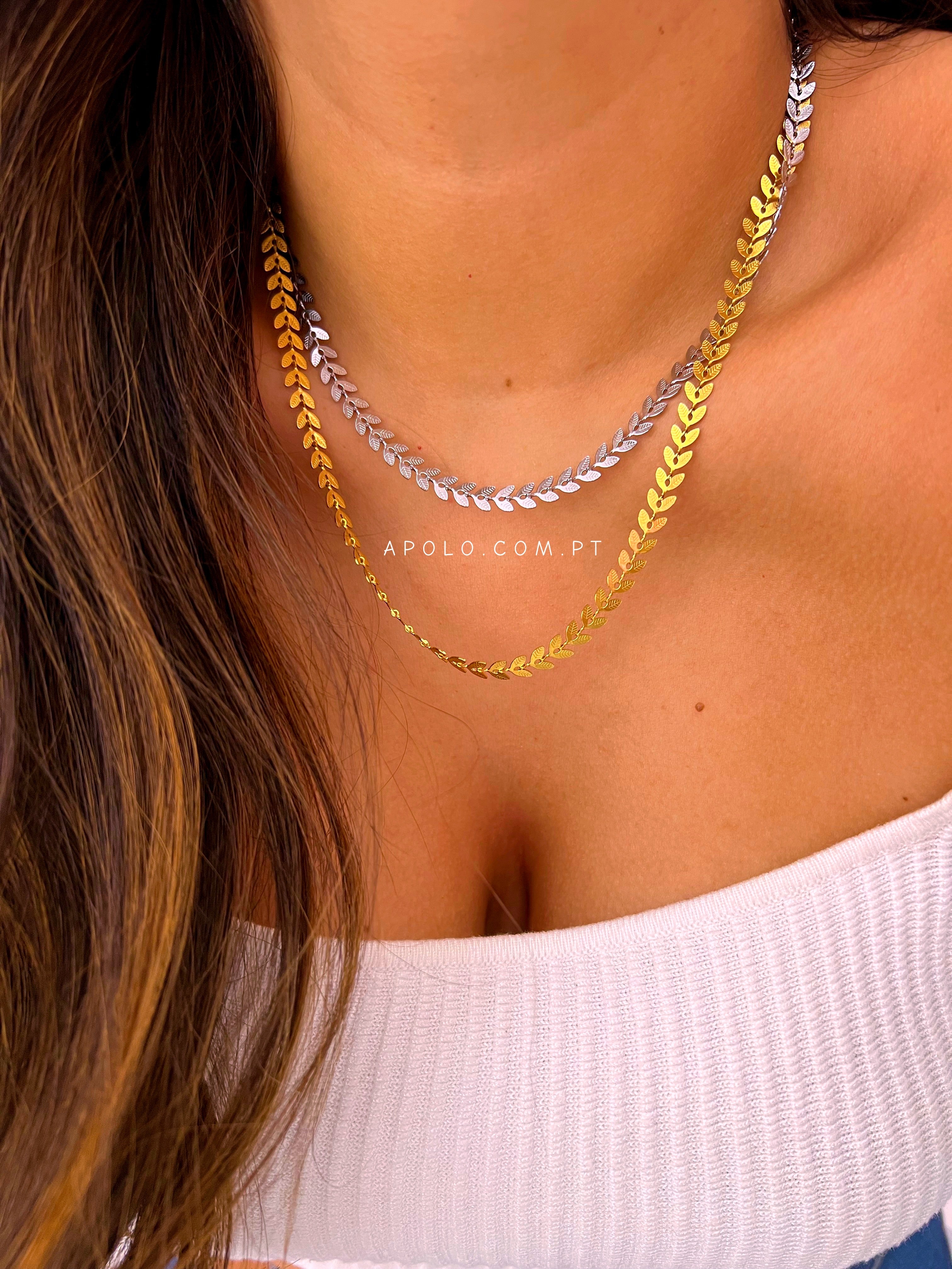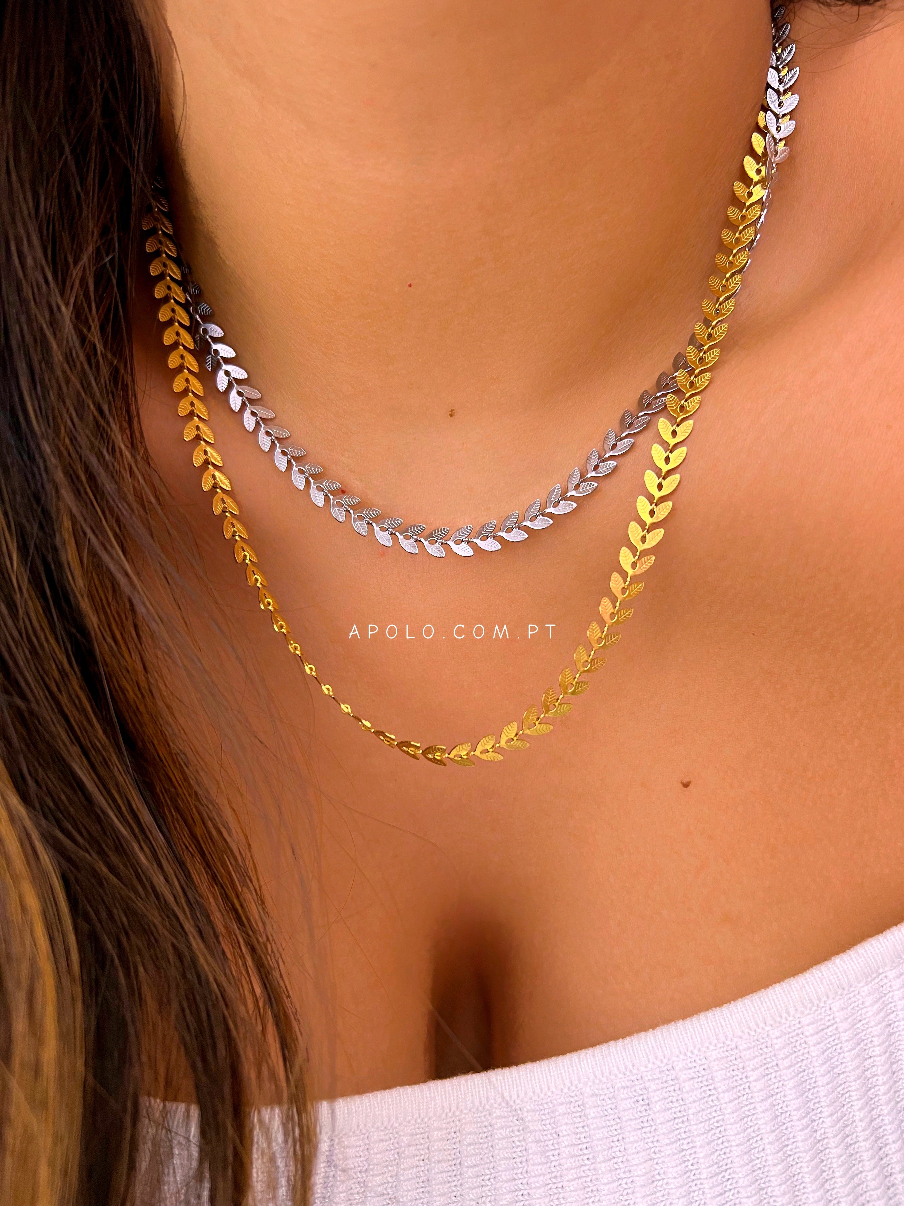 Colar com extensão de 5 cm, comprimento máximo 51 cm e mínimo de 46 cm. 0,5 mm de espessura.