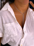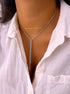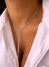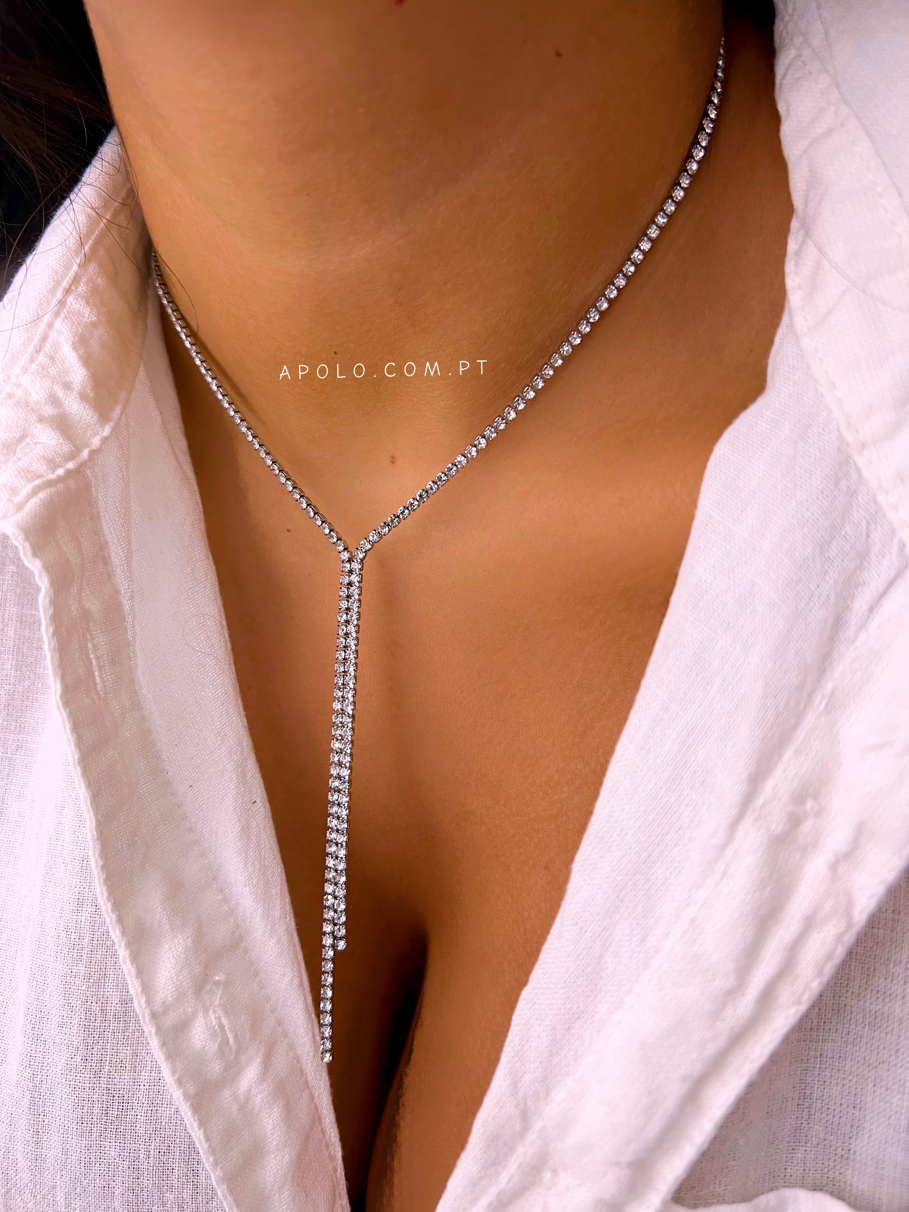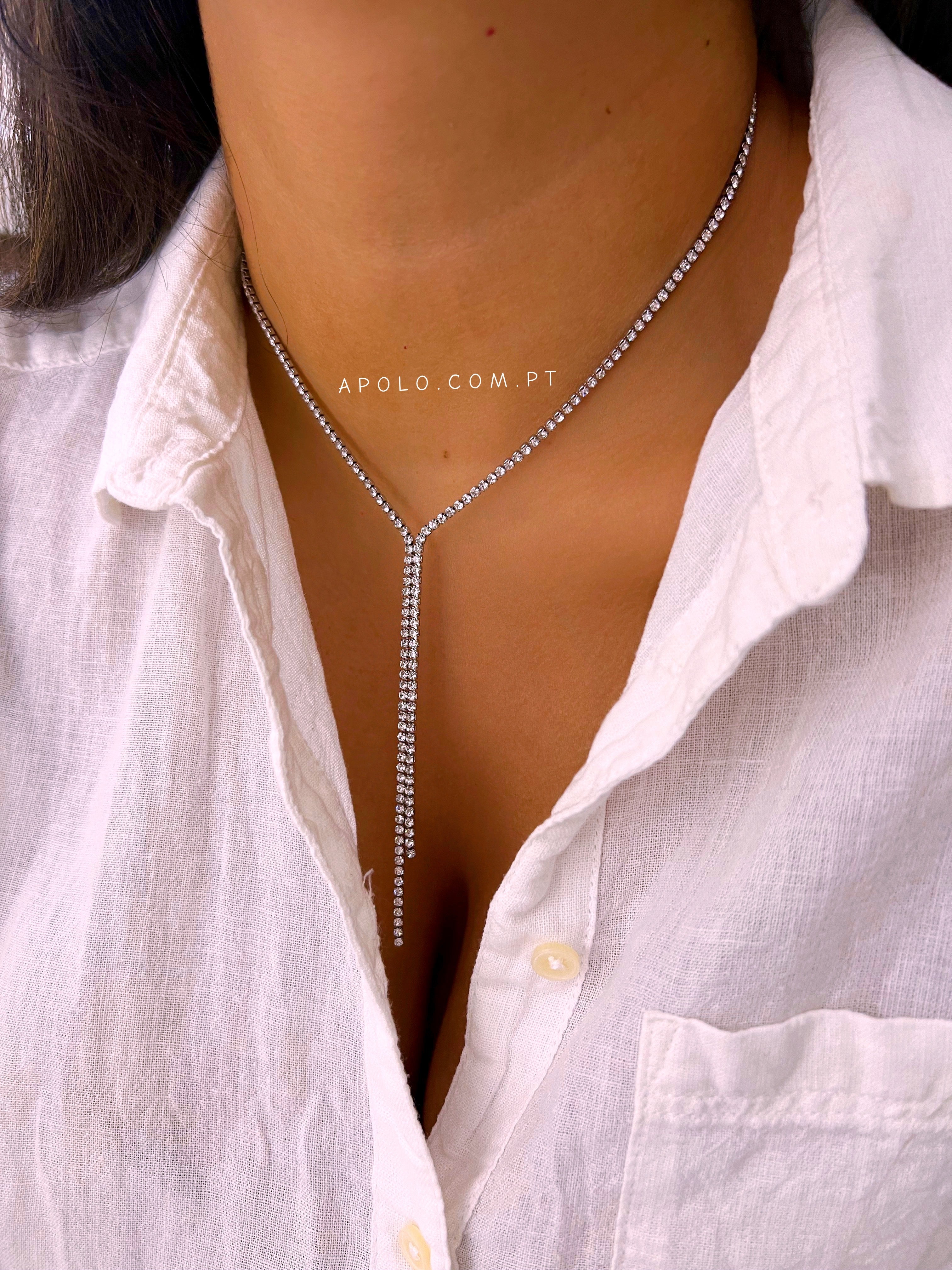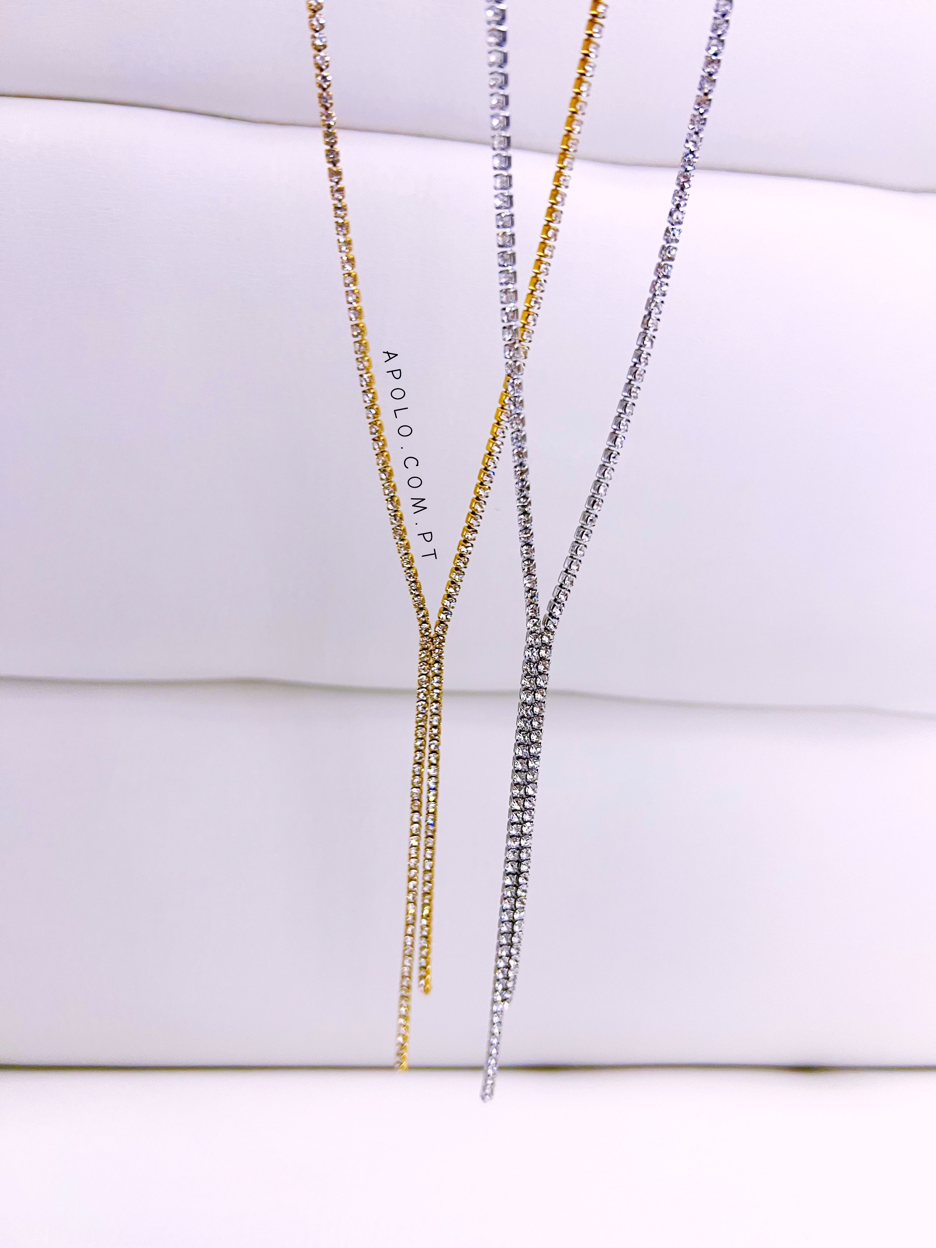 Colar delicado em corrente riviera, todo preenchido com brilhantes, e com efeito de pendente na parte da frente.