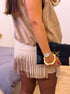 Com efeito de bolsos falsos à frente. Com fecho zip. Com elástico atrás para dar aquele efeito abalonado.