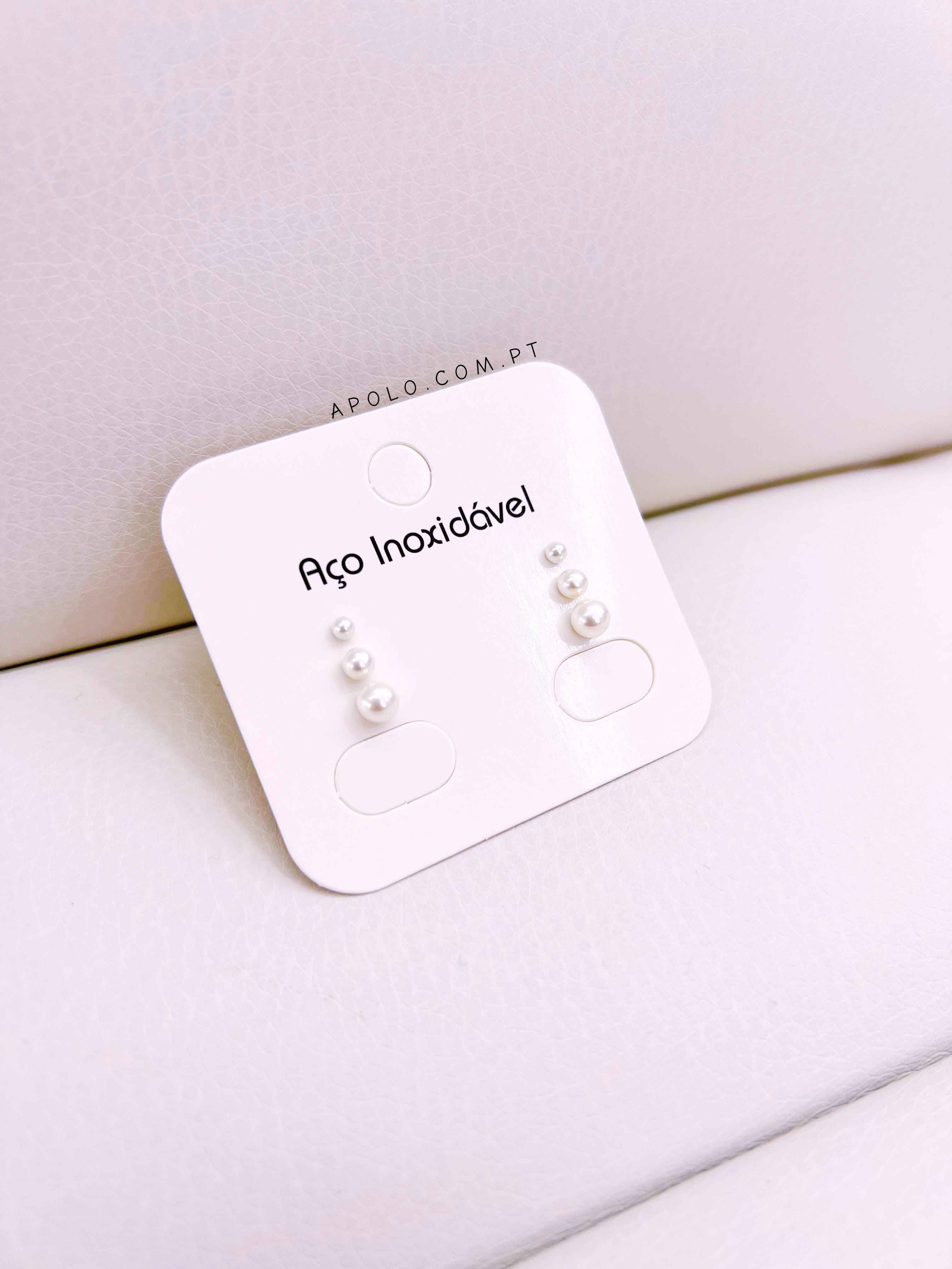 Conjunto de 6 pérolas  (3 pares de brincos) com base em aço inoxidável.