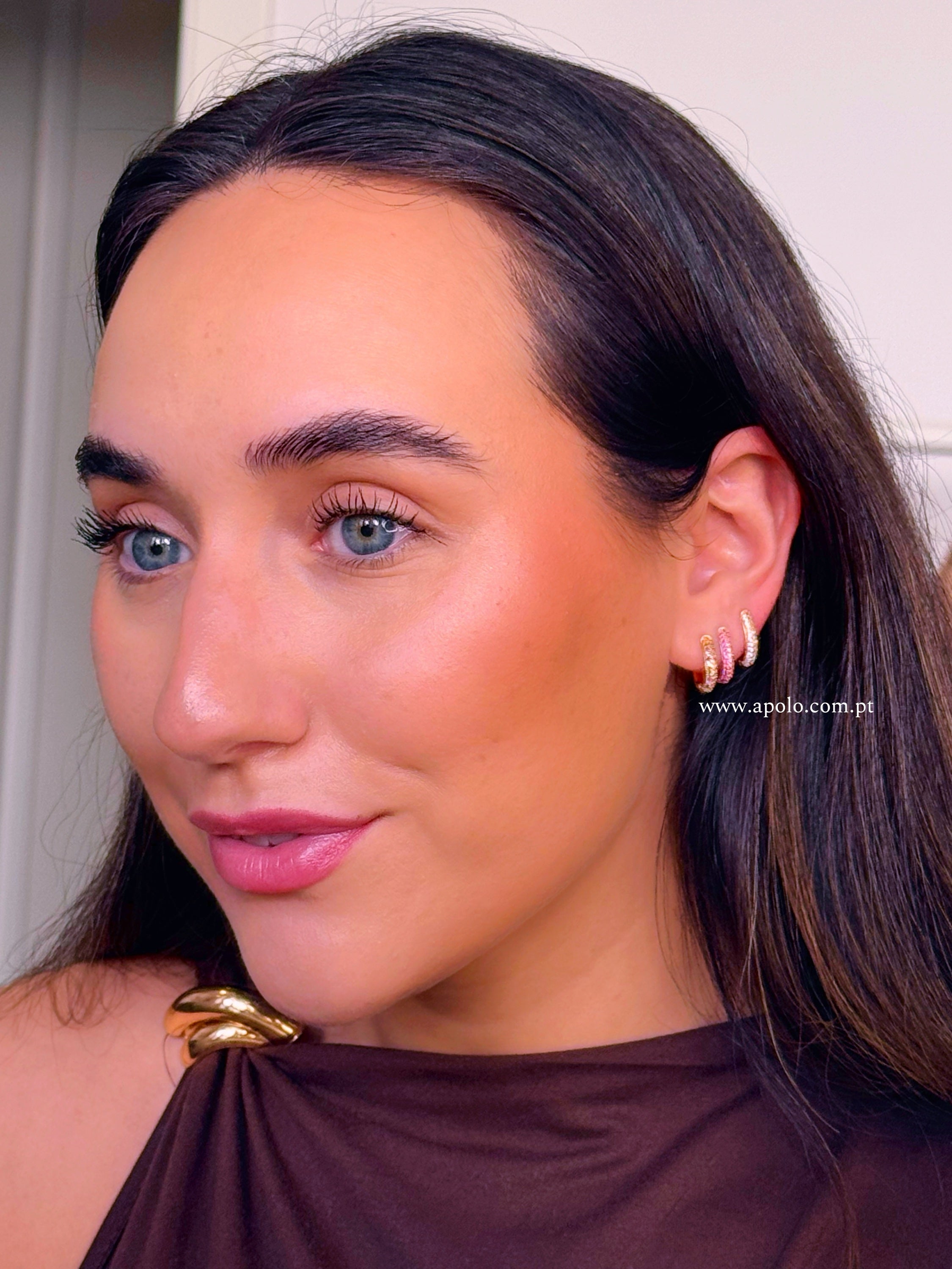 Material: Ródio com banho de ouro: são artigos que levam um banho de forma a os tornar mais resistentes e duradouros. No entanto, este banho pode ser degradado com o tempo, e por isso requer alguma atenção e cuidados: Evitar tomar banho com eles, evitar água do mar e piscina, evitar produtos com químicos, álcool, perfumes, cremes, etc. Se evitares estes fatores, a durabilidade deles vai ser ótima! Quanto mais os usares mediante as condições que não aconselhamos, mais degradado o banho vai ficar, e pode acabar então por perder a qualidade inicial.