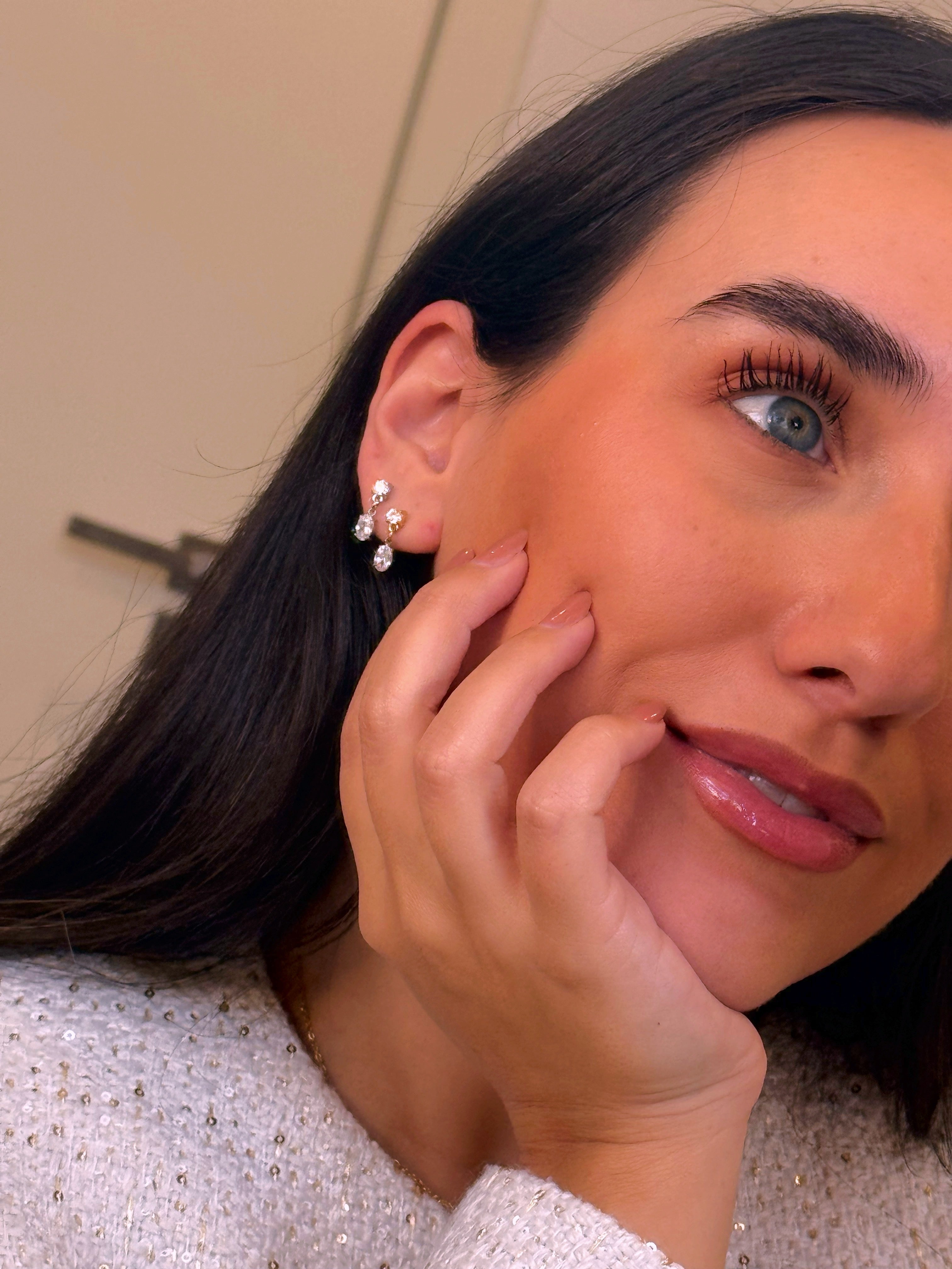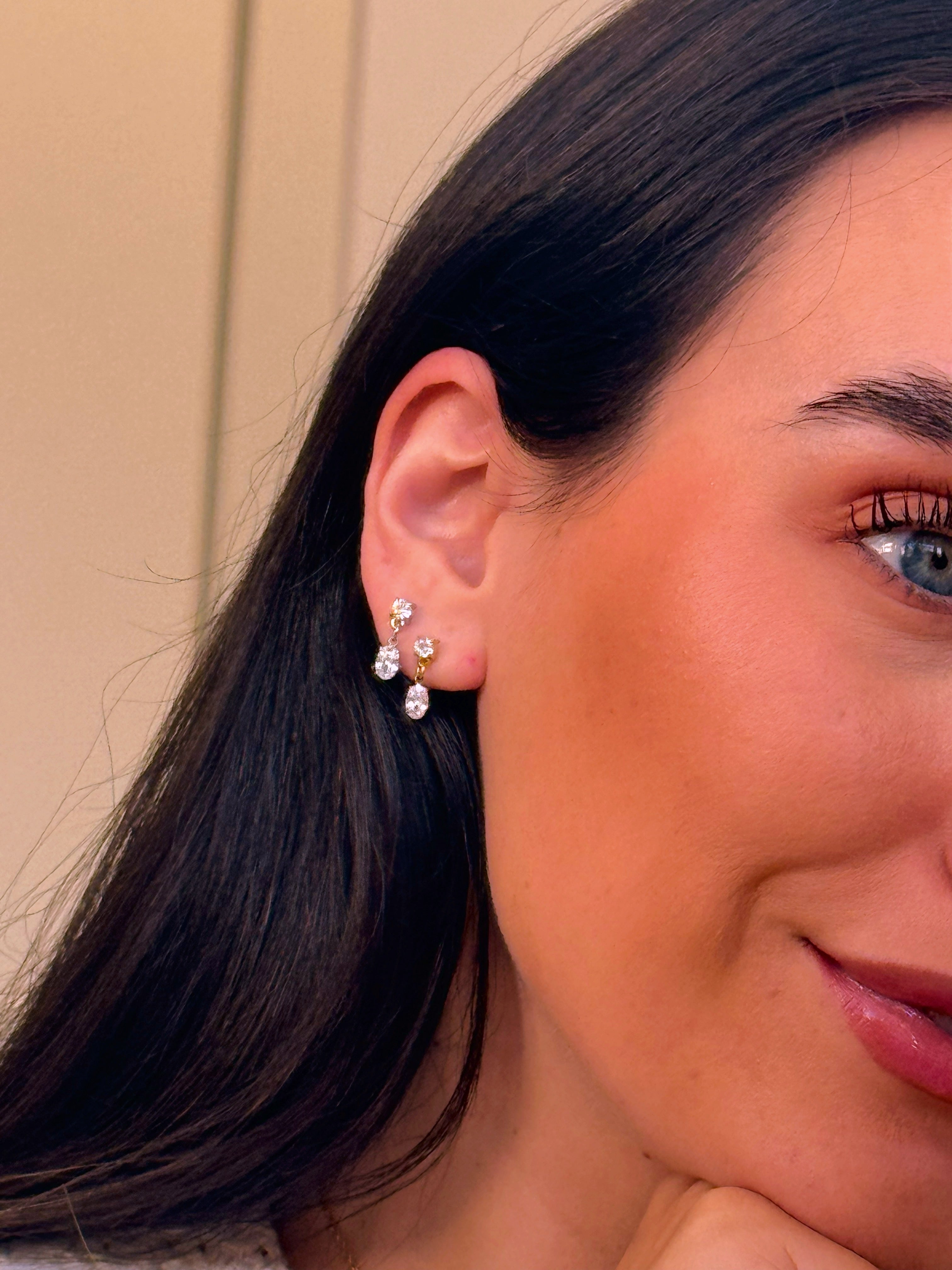 Mini brincos pontos de luz com pendente de brilhante oval | 2 Cores