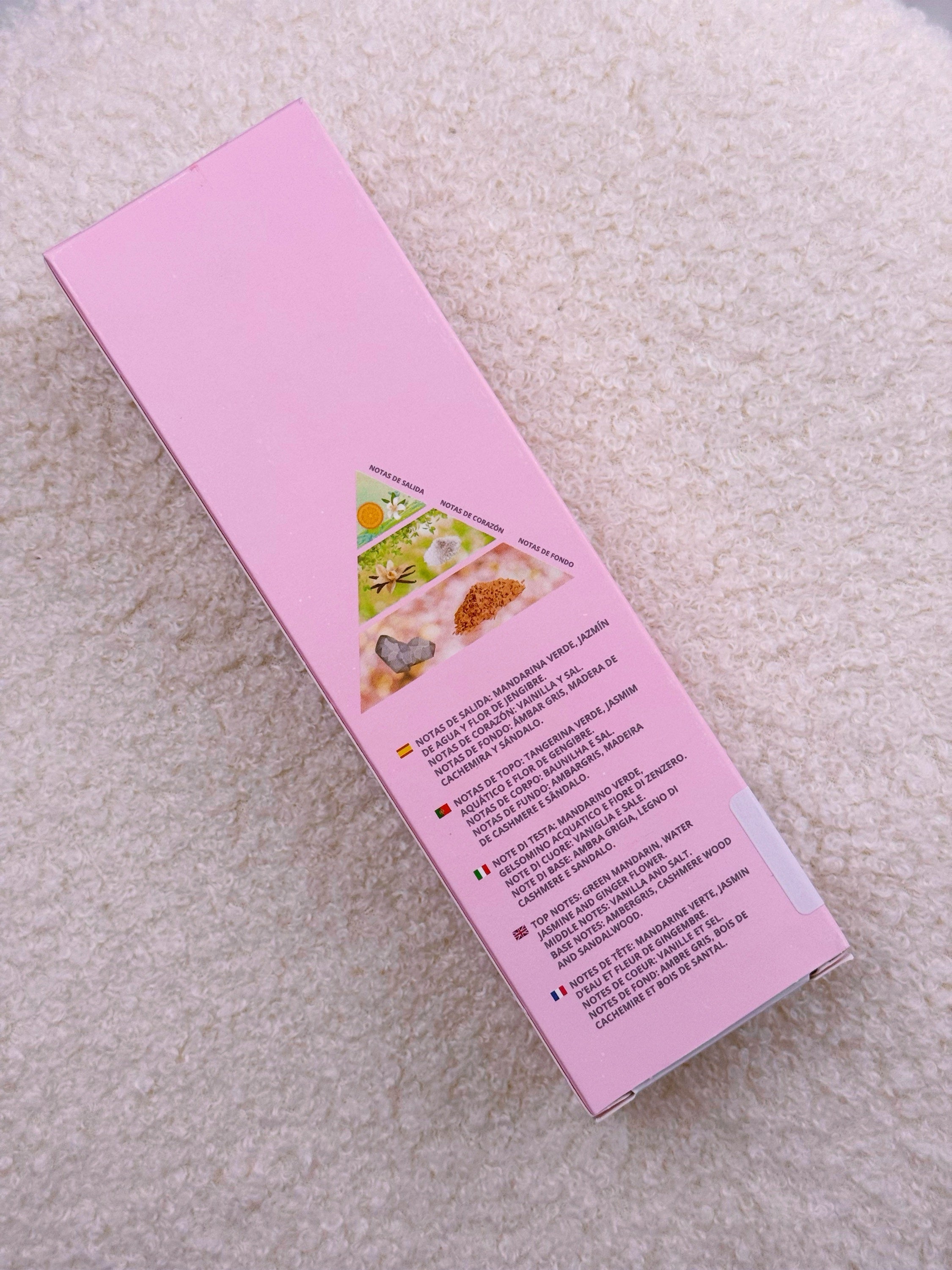 As notas de topo são tangerina verde, jasmim de água e flor de gengibre.