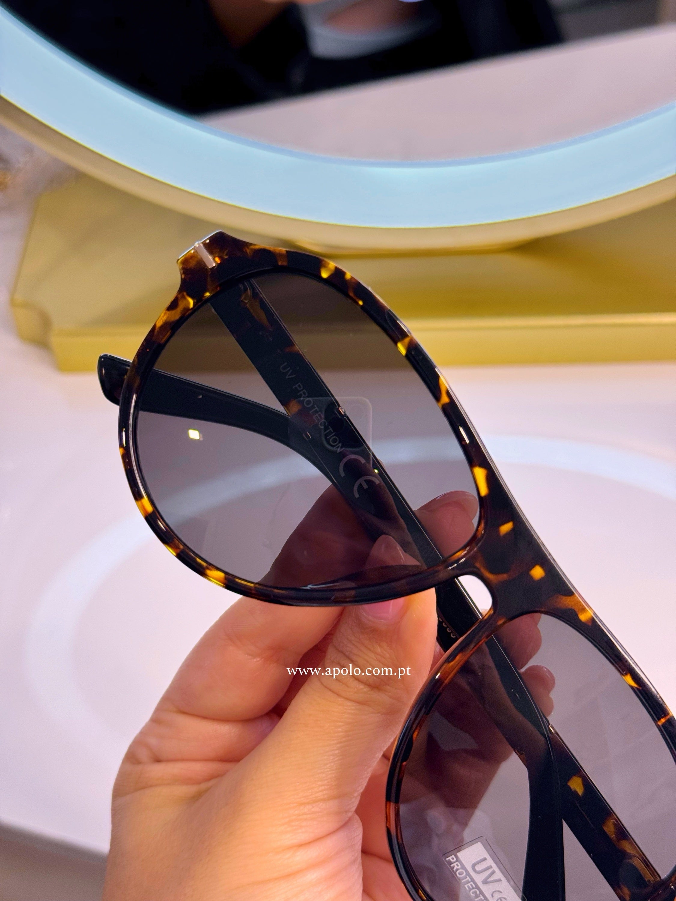 Óculos de massa com padrão super tendência tartaruga em castanho.