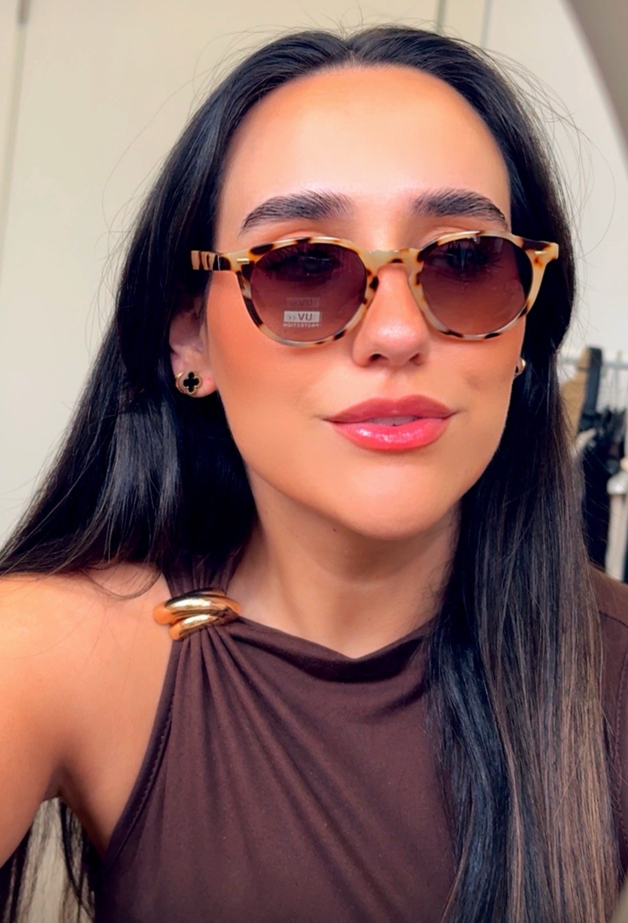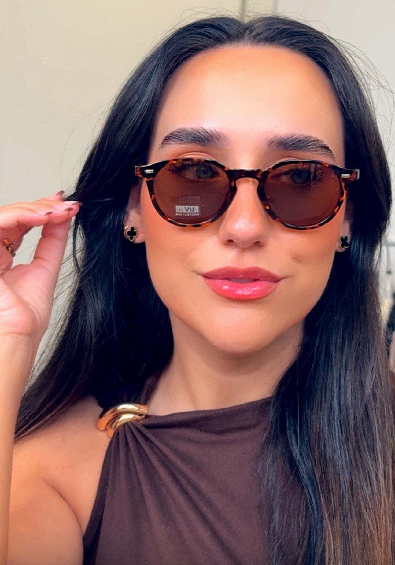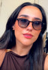 Óculos de massa com pormenor metálico dourado na haste.
