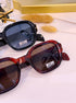 Óculos de massa com pormenor metálico, os pretos com lente azul os castanhos têm um ligeiro padrão trabalhado na armação como visível nas imagens.