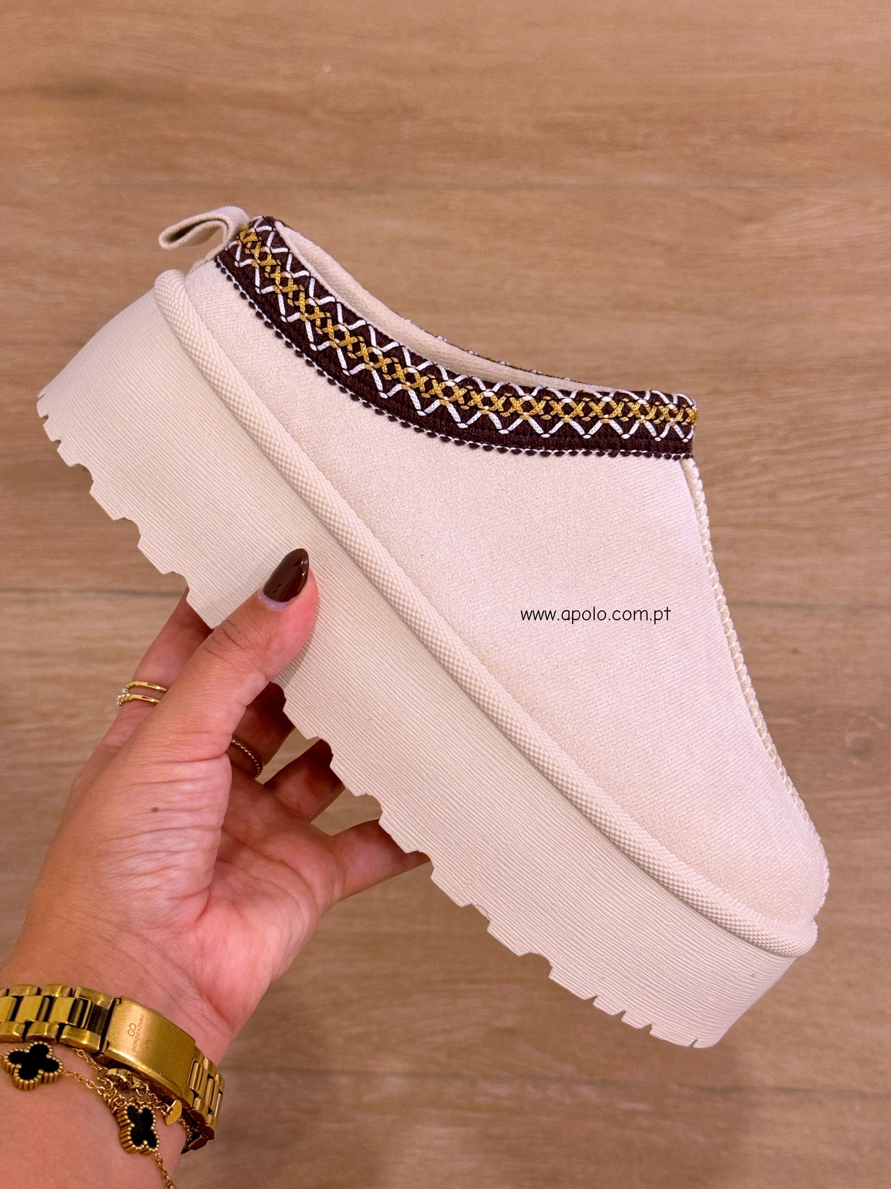 Pantufa/soca/chinelo, com plataforma de ~4cm, perfeita para aliar o conforto às tendências do momento.