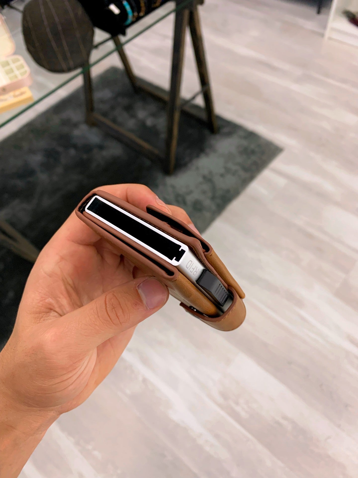 Porta cartões básico em formato de caixa de metal para cartões com capa.
