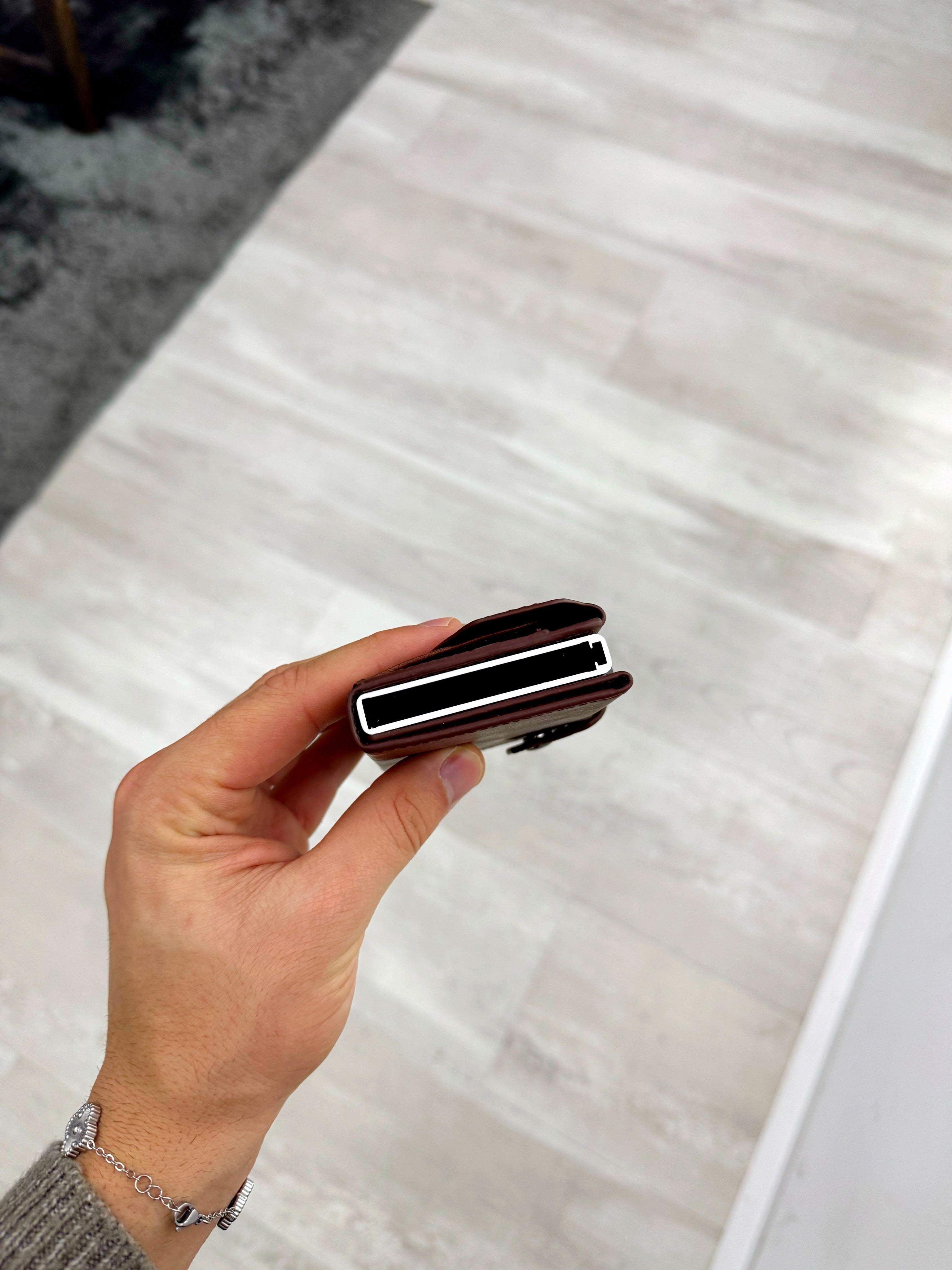 Com arrumação interior também para notas, cartões e bolsa exterior para moedas.