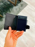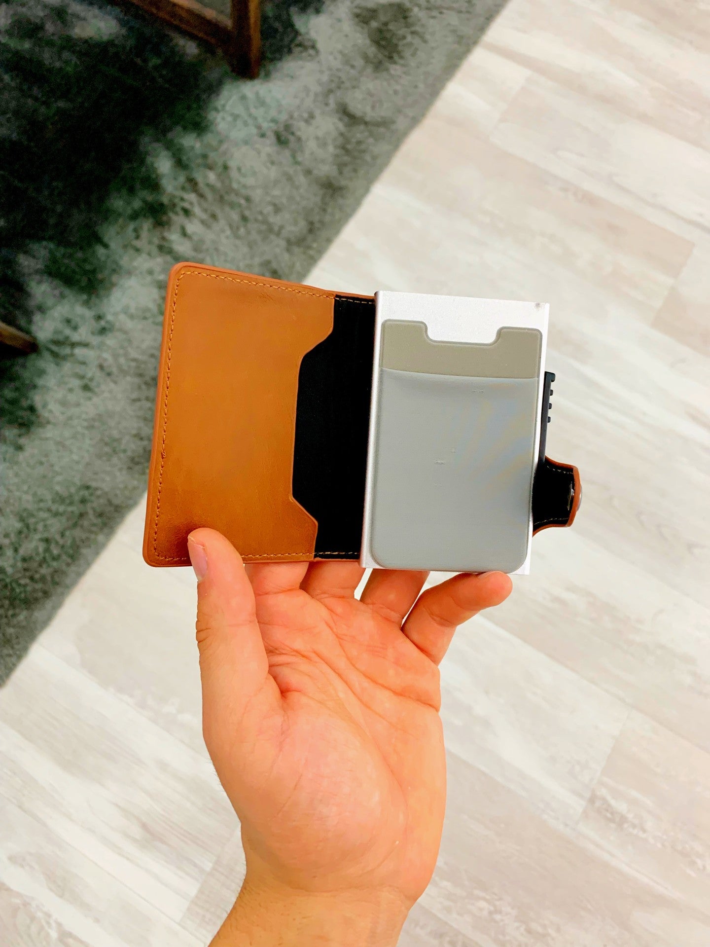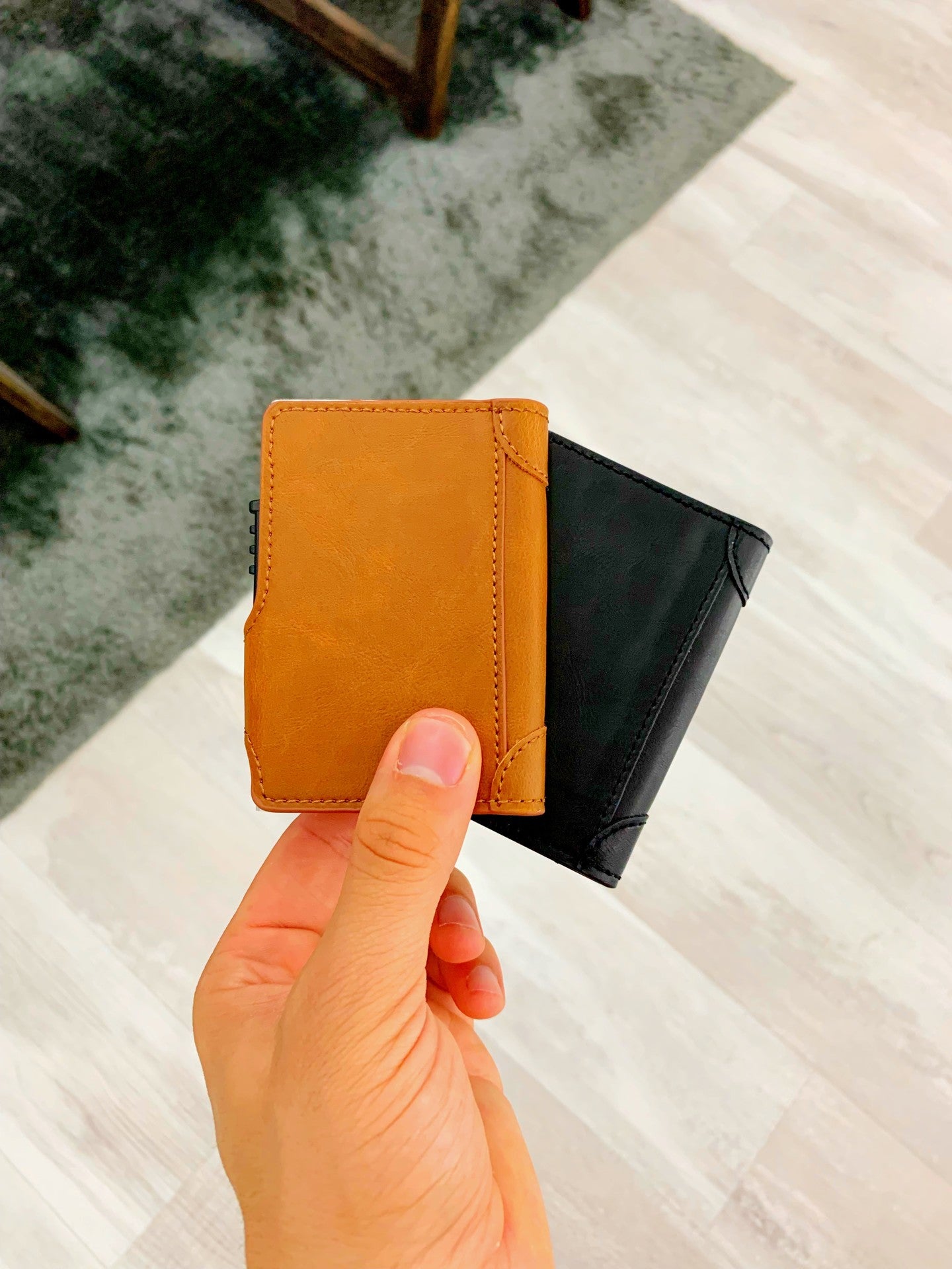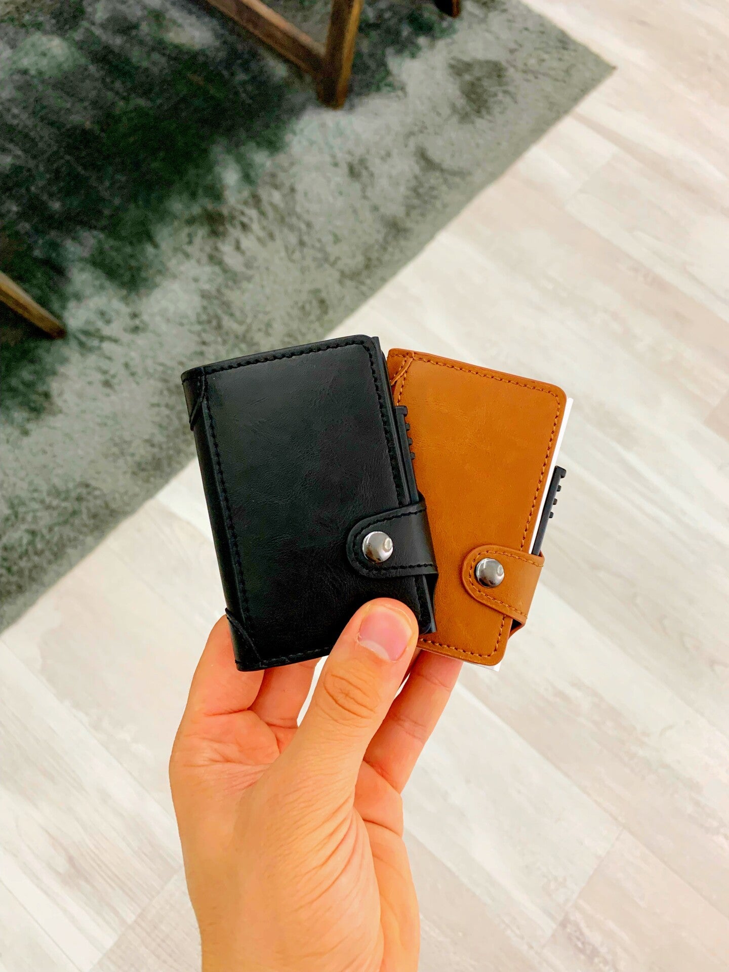 Porta cartões básico em formato de caixa de metal para cartões com capa.