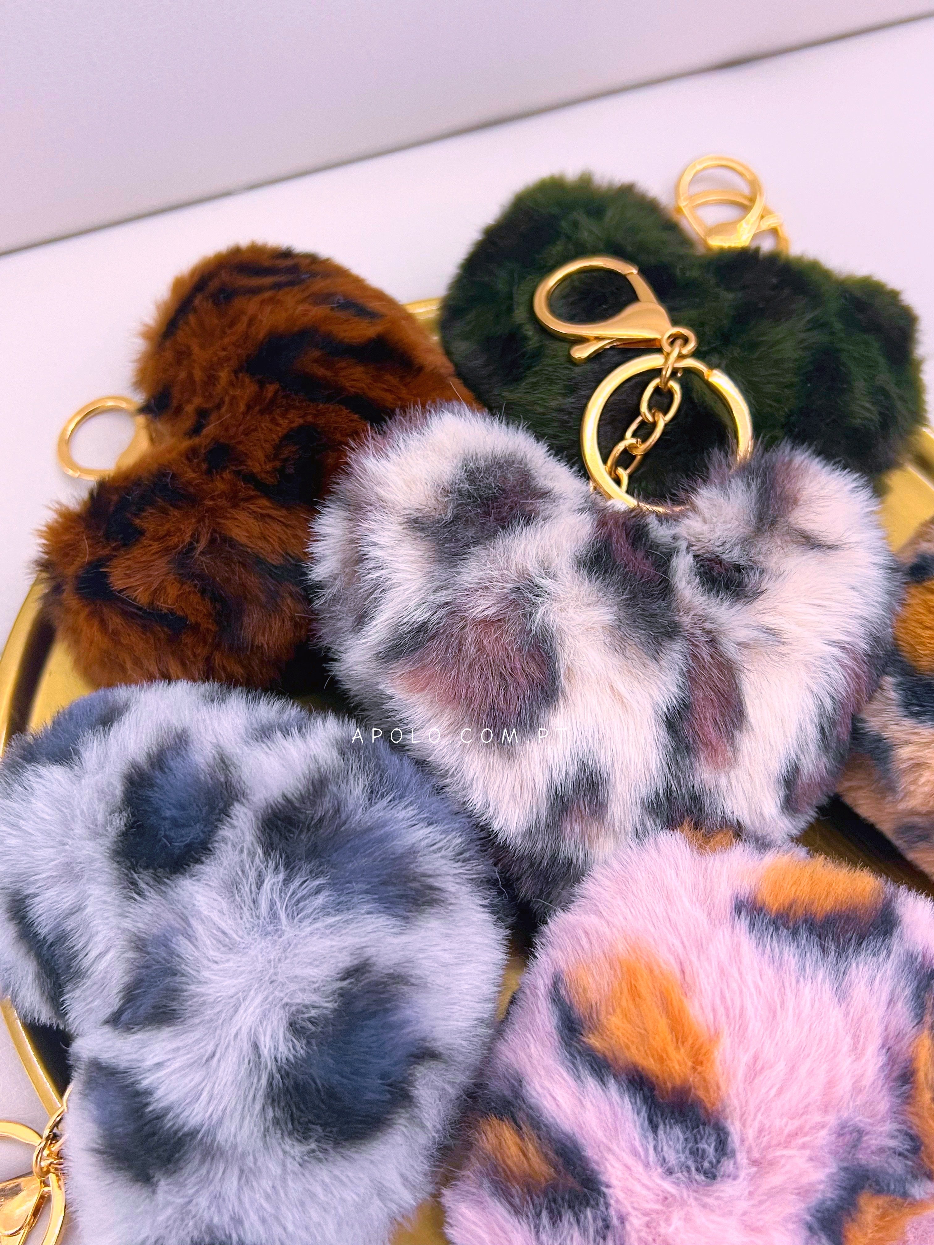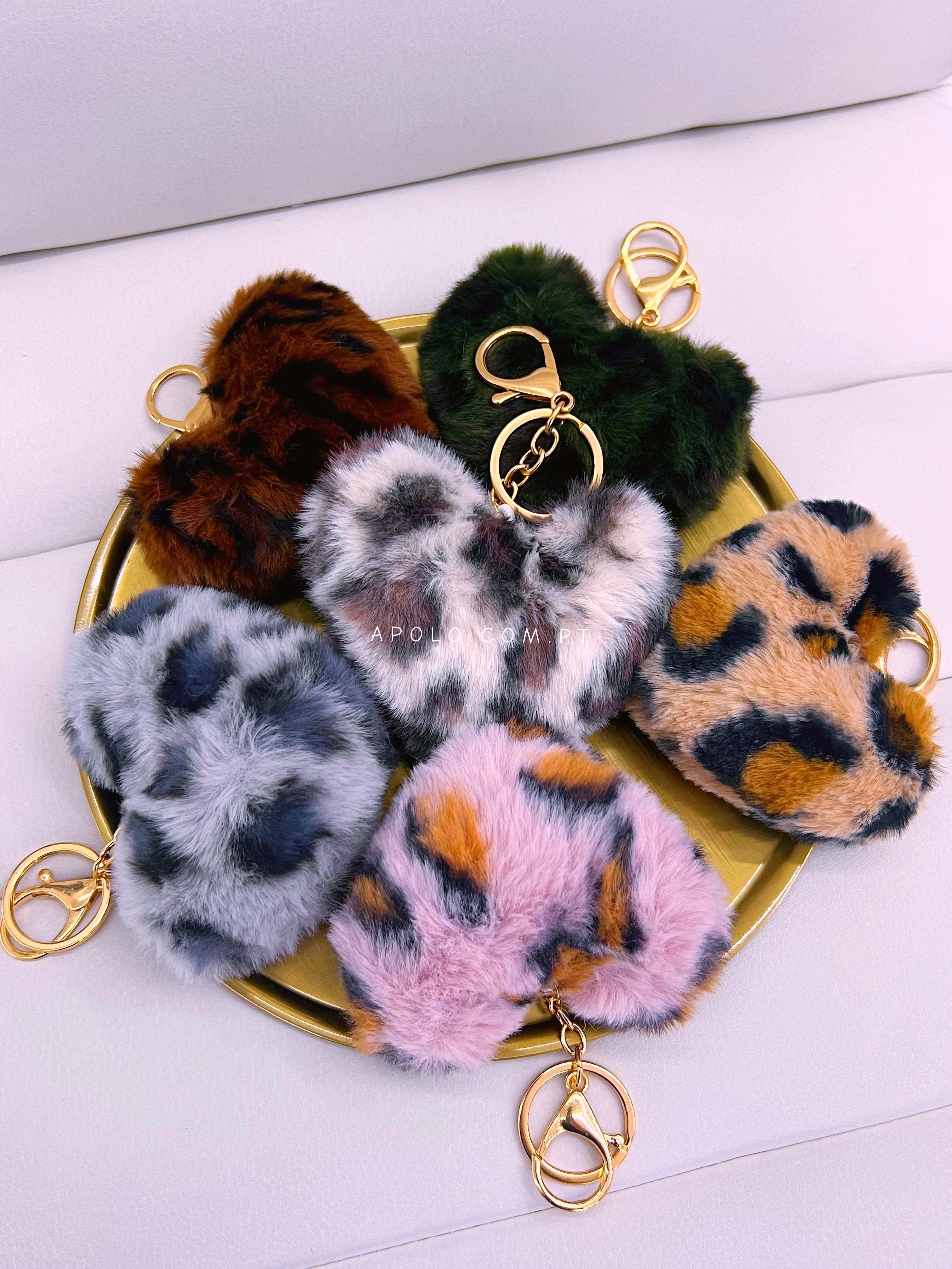 Porta chaves com padrão tigresa em formato coração todo preenchido com pelinho muito macio.
