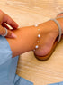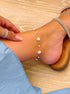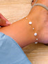 Pulseira de pé corrente fininha com conchinhas e bolinhas em madre pérola.