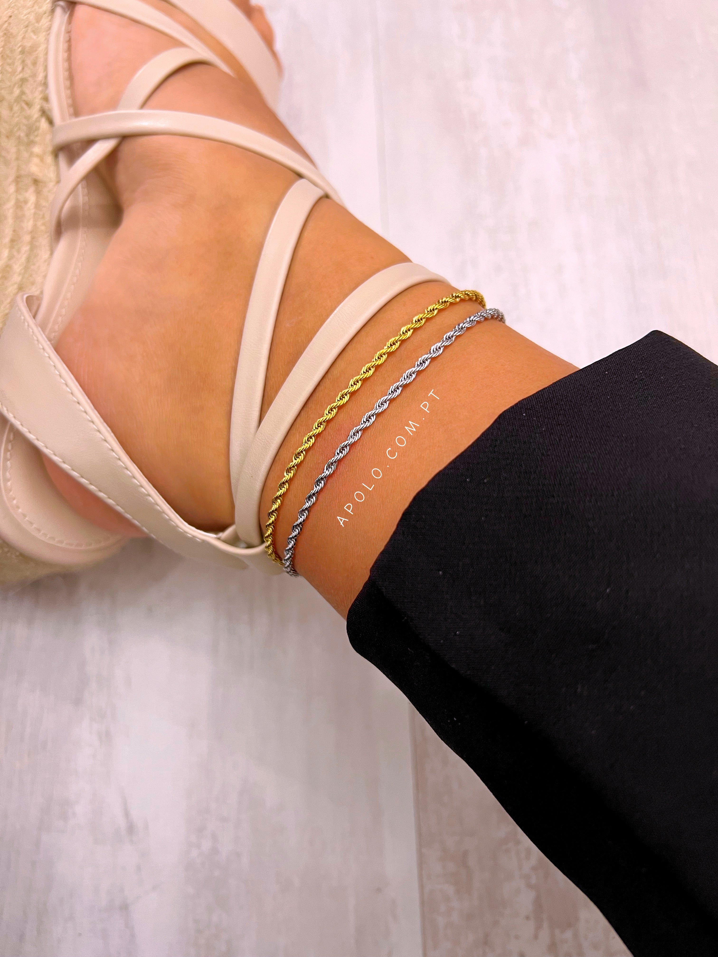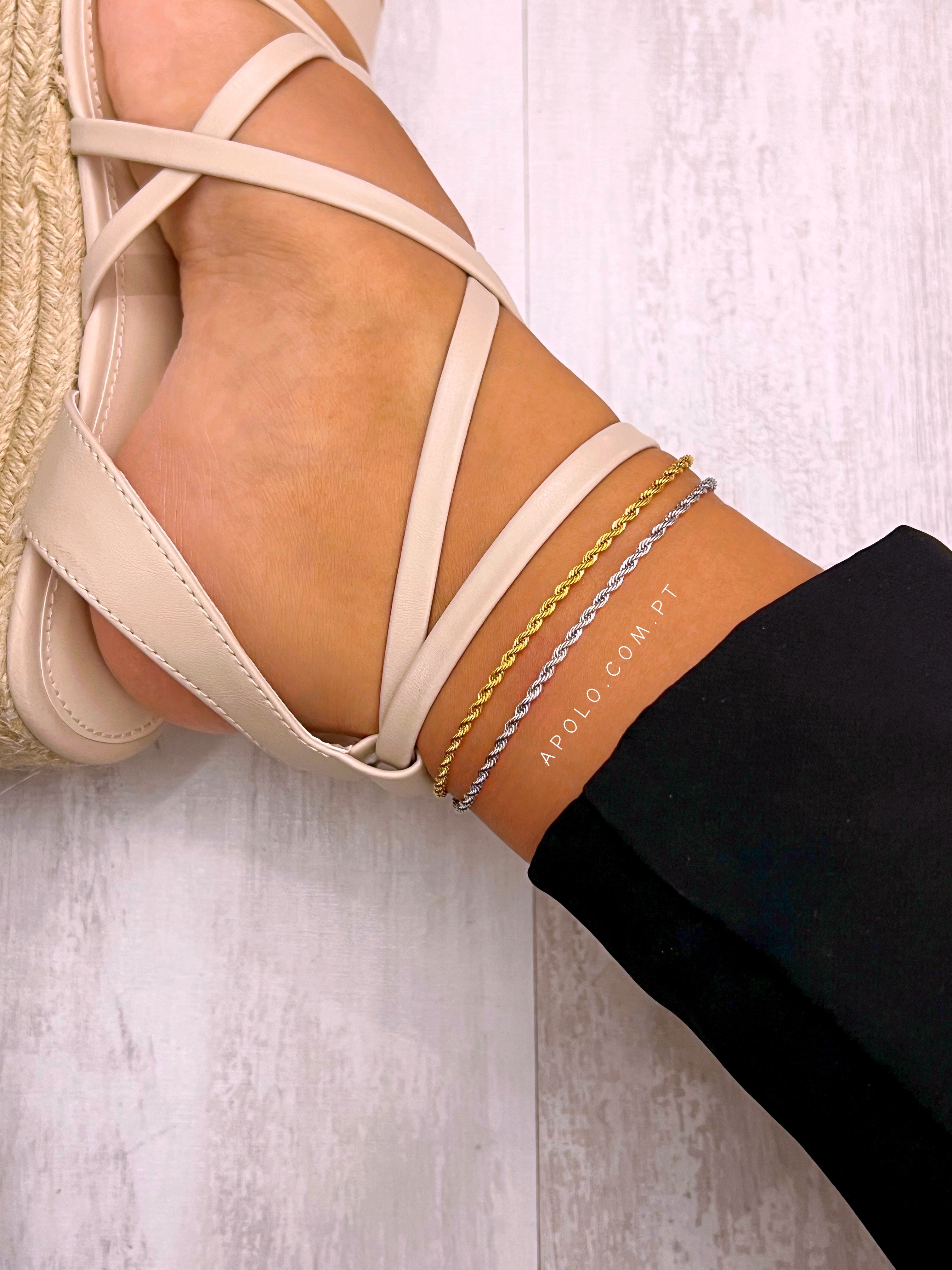 Pulseira de pé em malha com efeito torcido. - 0,2 mm de espessura.