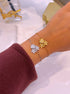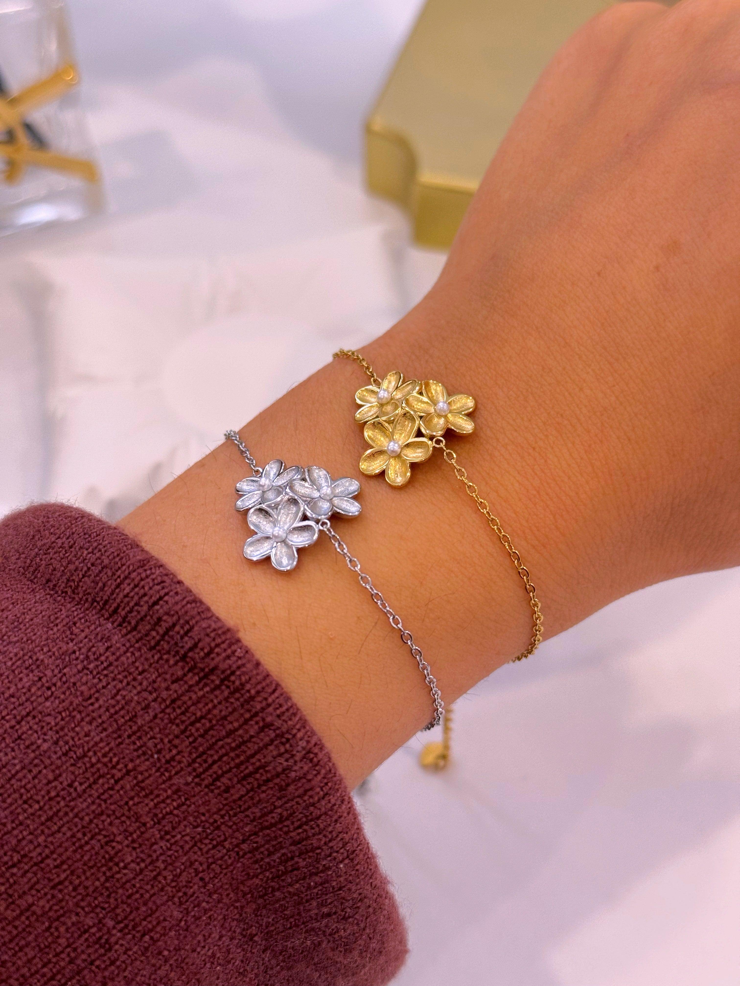 Pulseira delicada com três flores e pérolas | 2 Cores