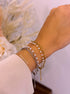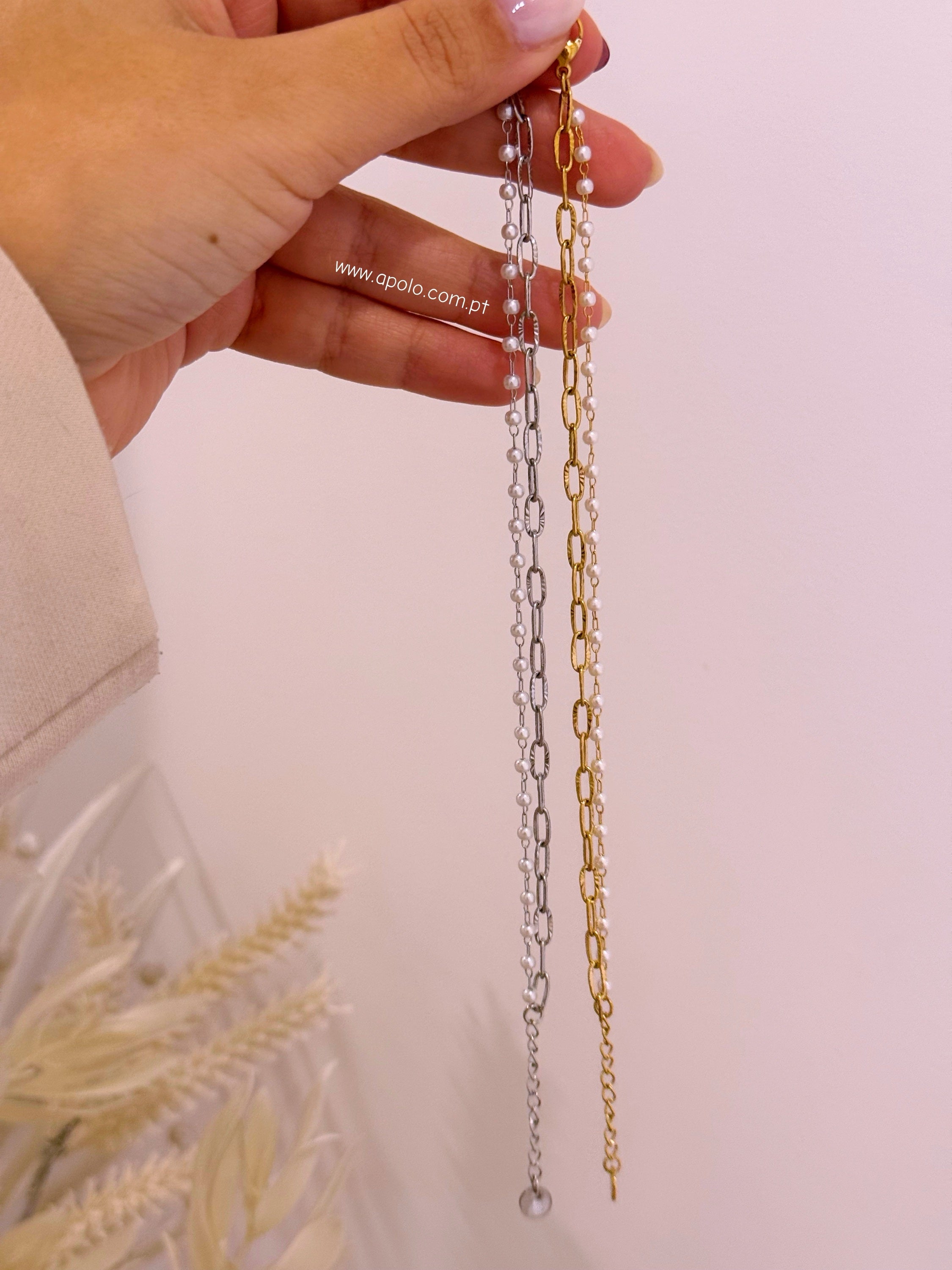 Pulseira efeito duplo com malha corrente simples e corrente de pérolas | 2 Cores