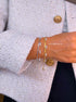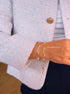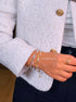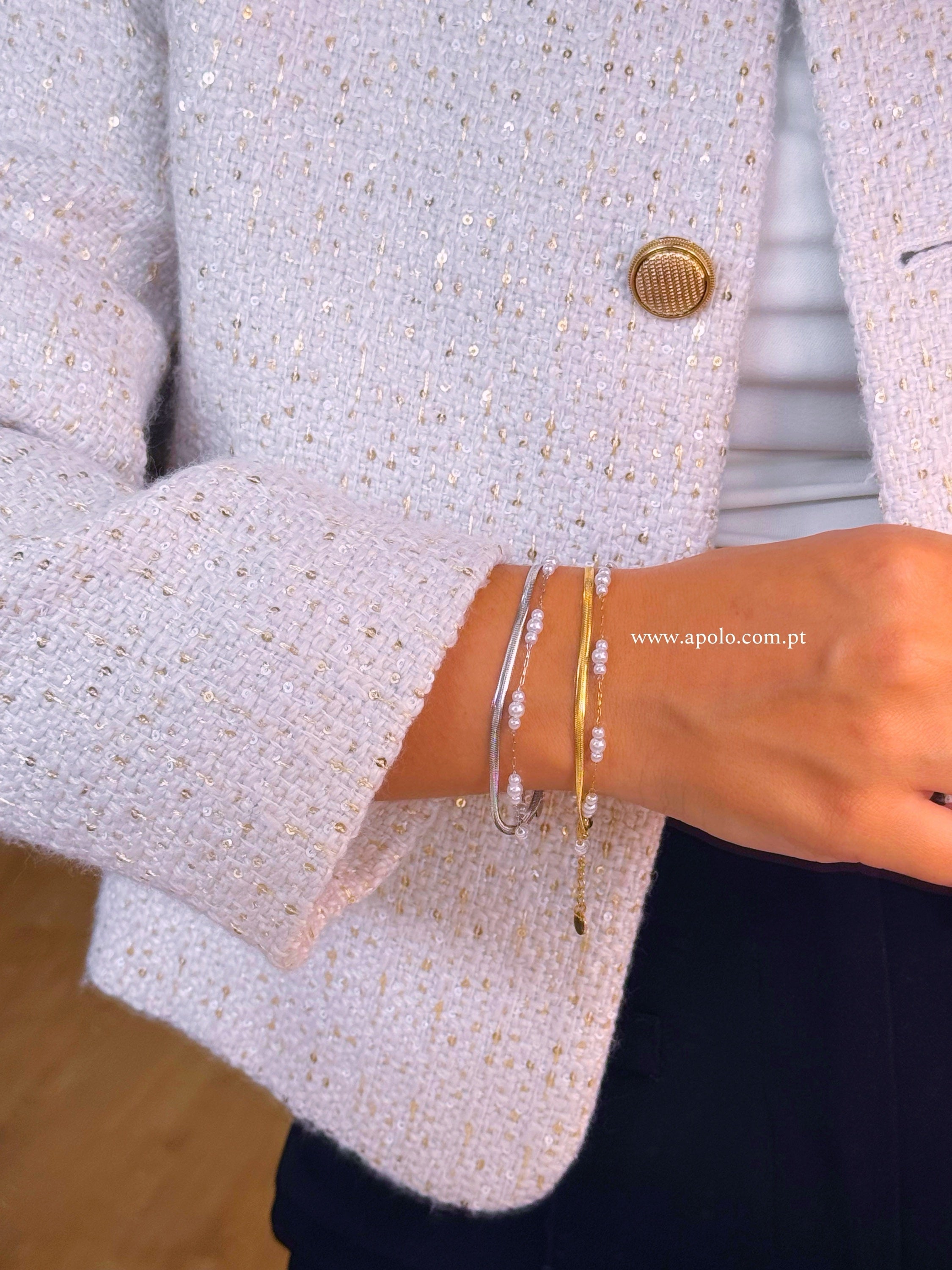 Pulseira elegante com efeito duplo de malha achatada muito fininha e malha com pérolas.