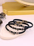 Pulseira de pele efeito entrançado com pormenores prateados.