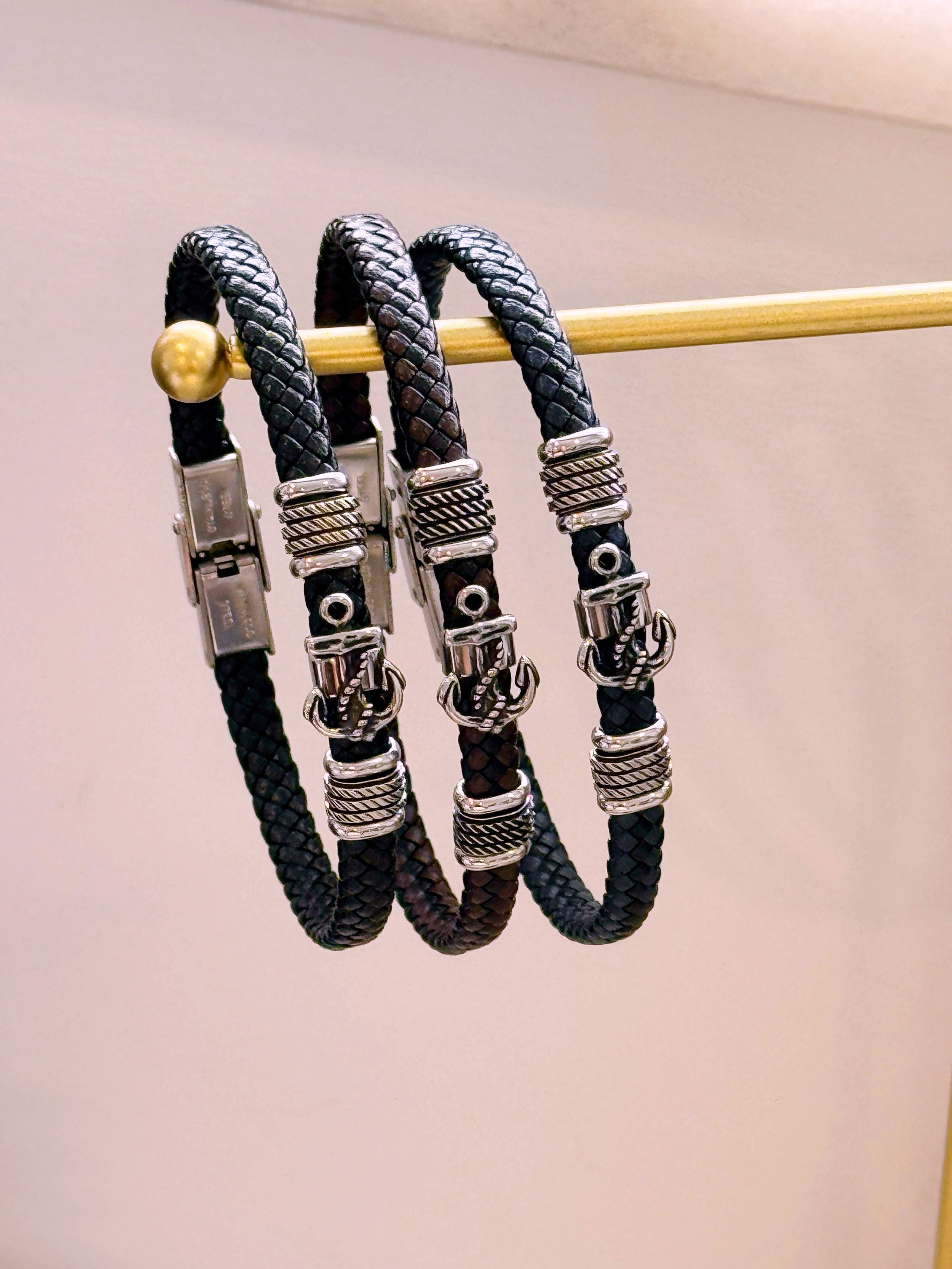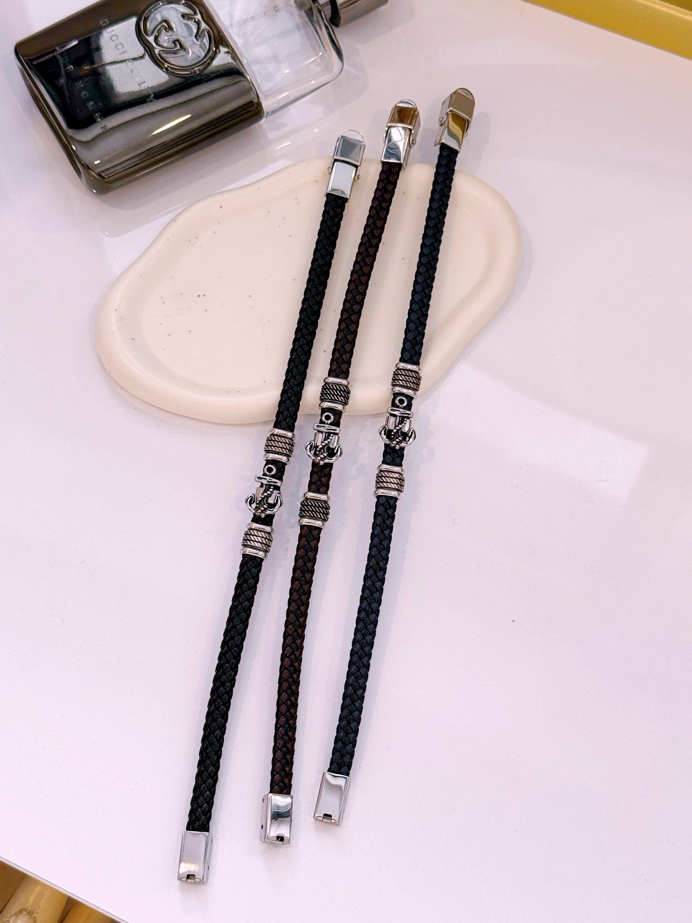 Pulseira em pele efeito entrançado em pormenores metálicos e âncora | 3 Cores