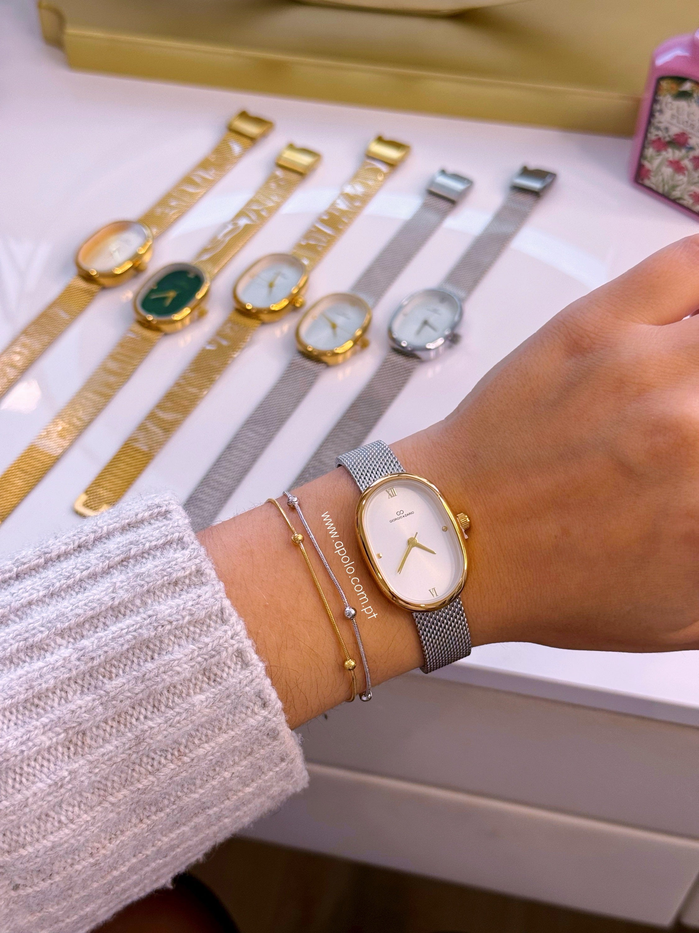 Pulseira malha redonda fininha com bolinhas | 2 Cores