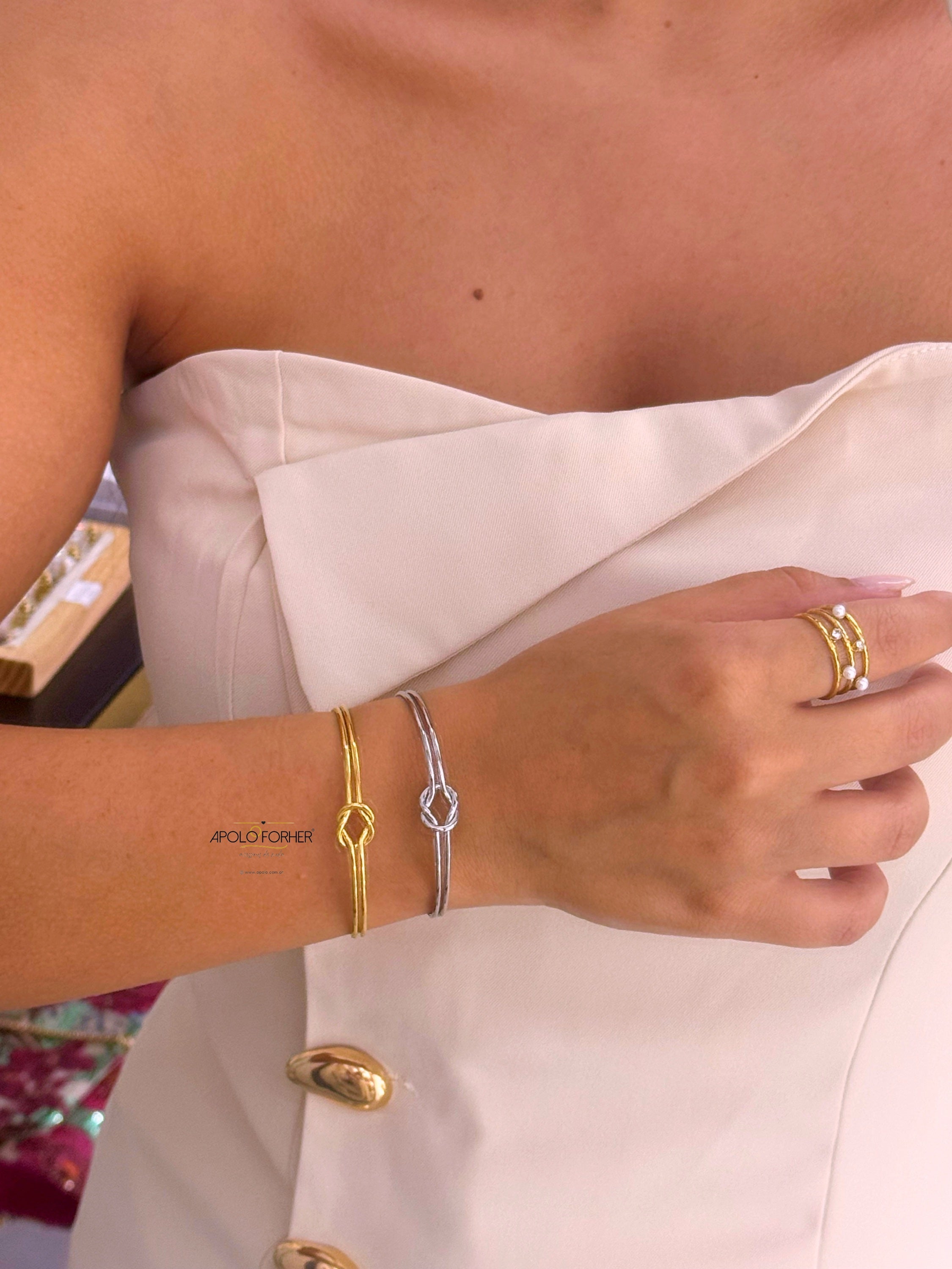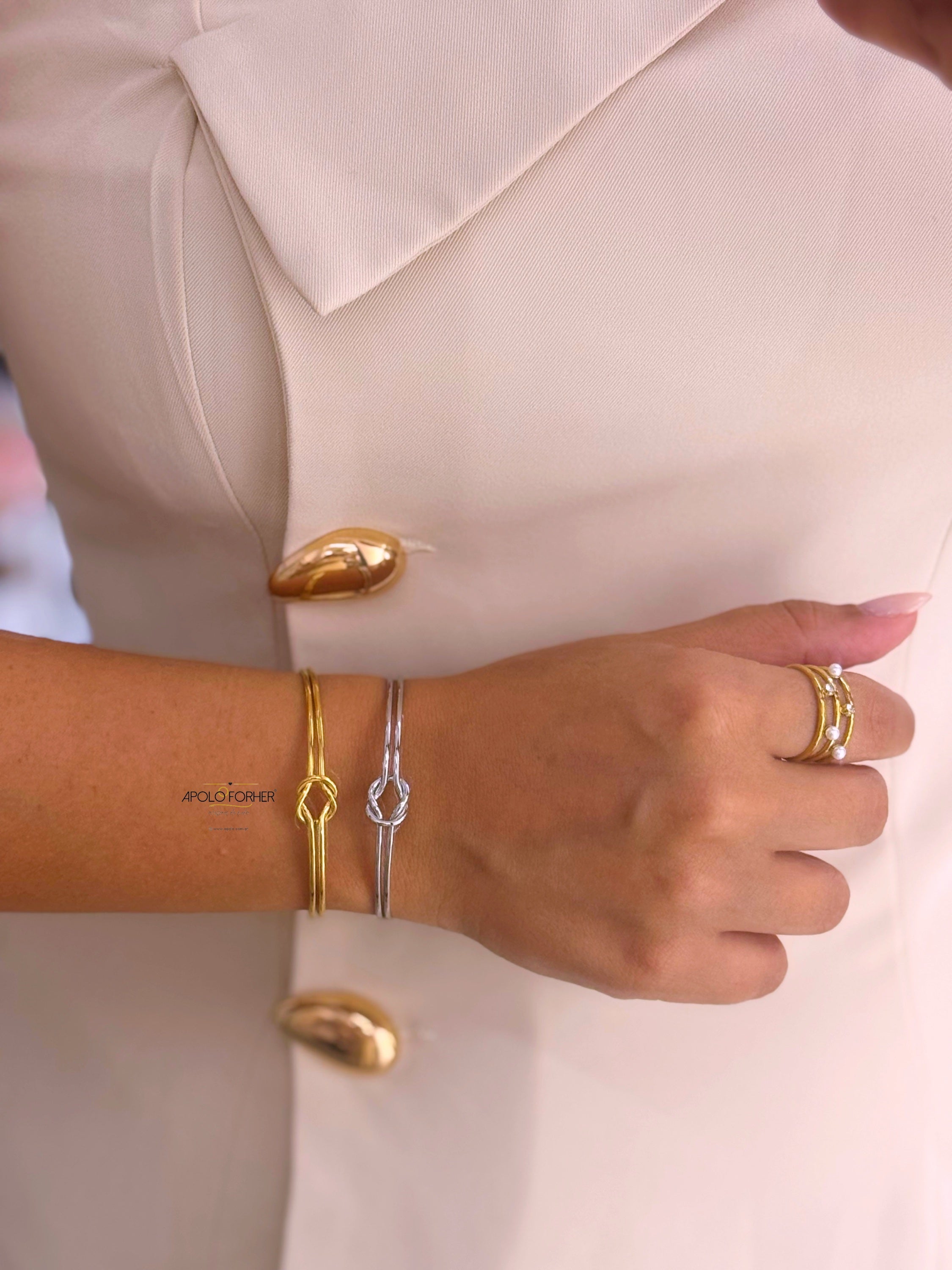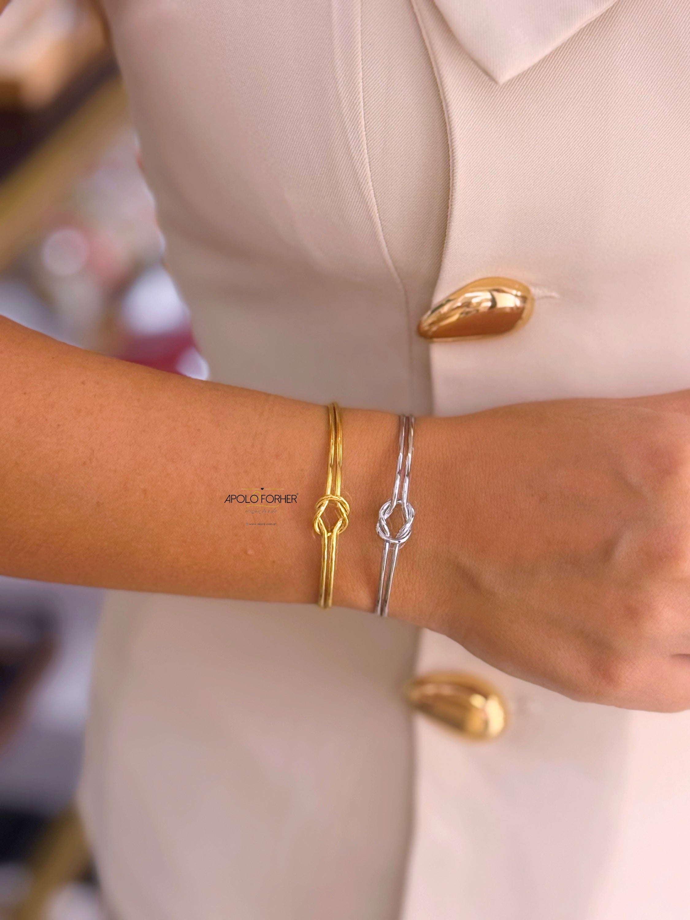 Pulseira rígida com efeito duplo aro e com efeito de nó ao centro.